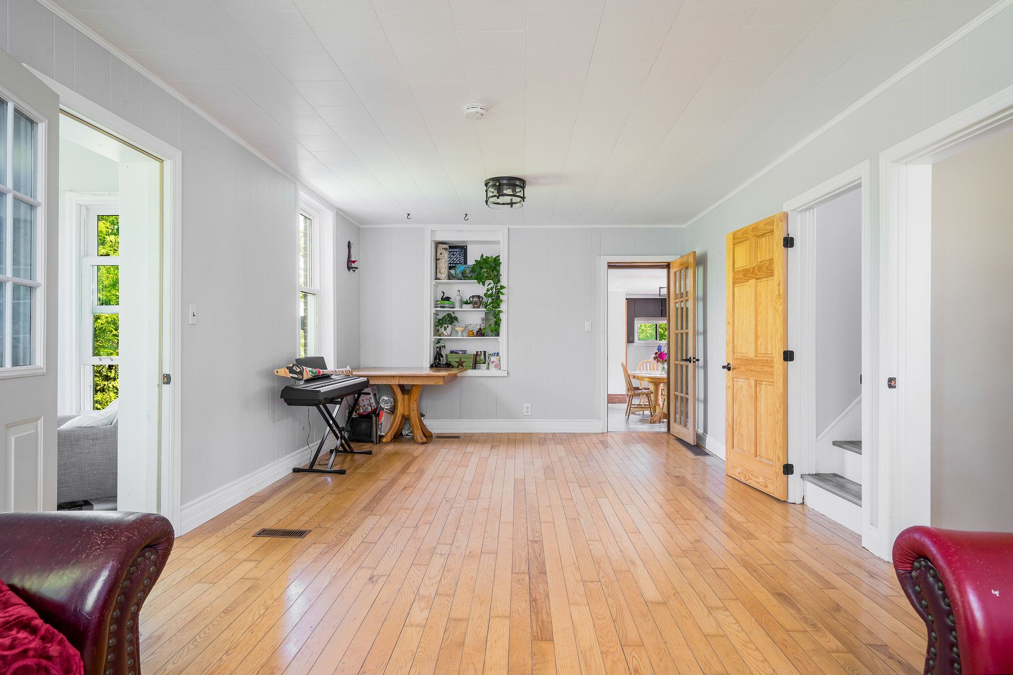 • Spacious farmhouse featuring high ceilings and large windows for natural light.