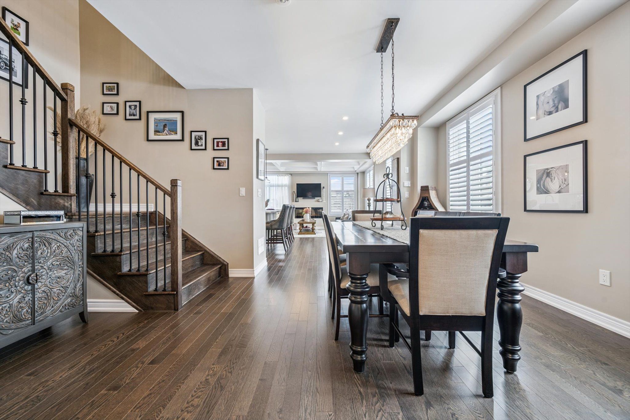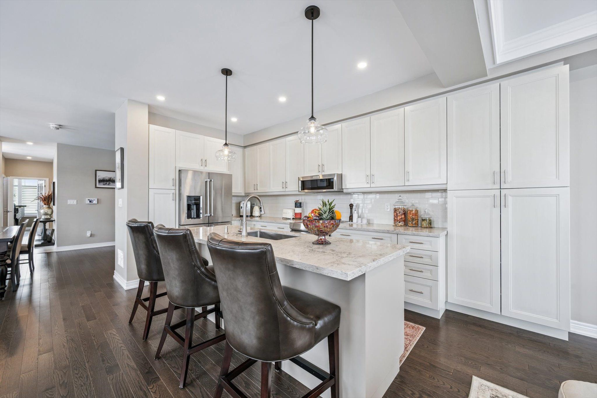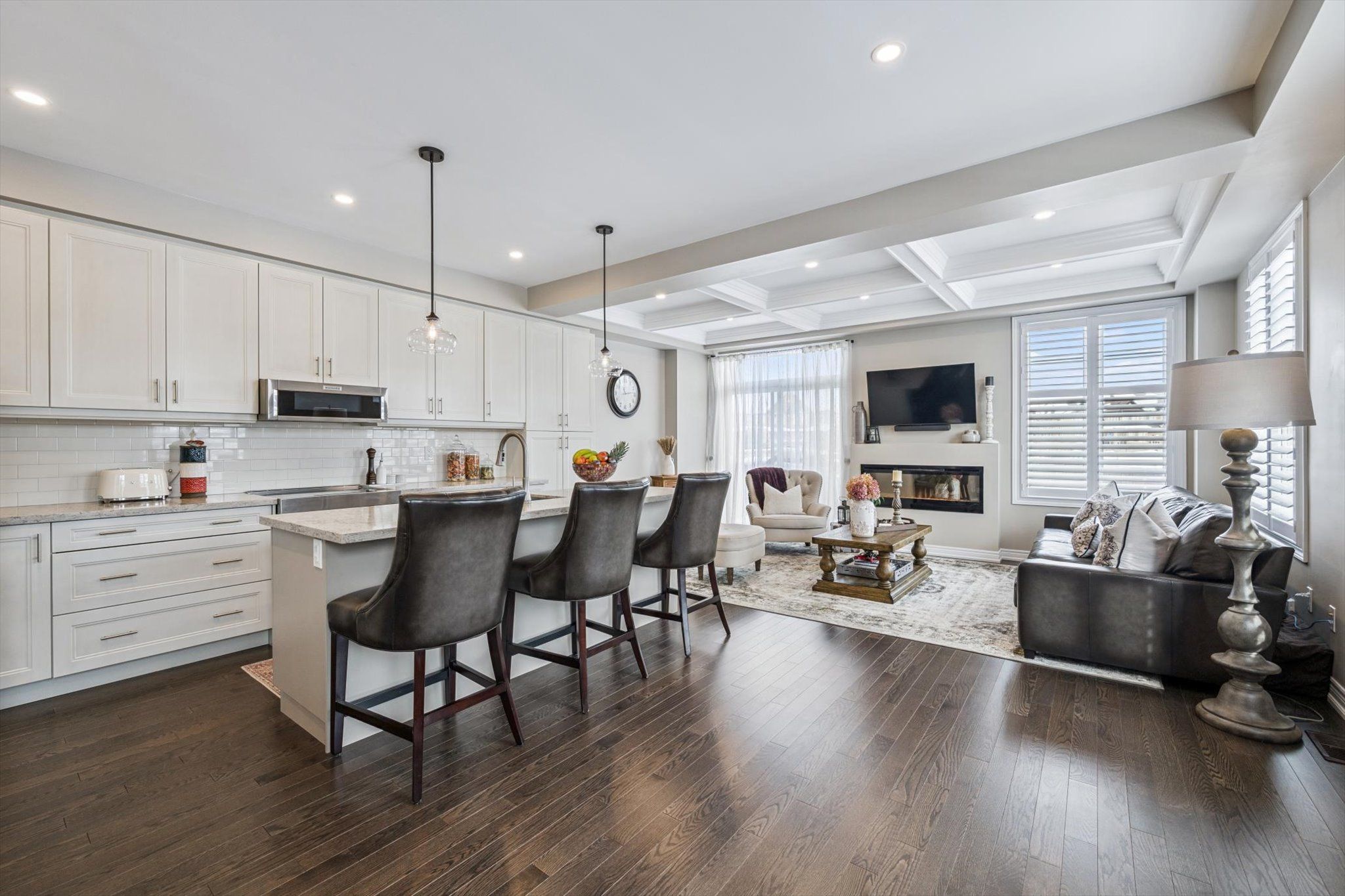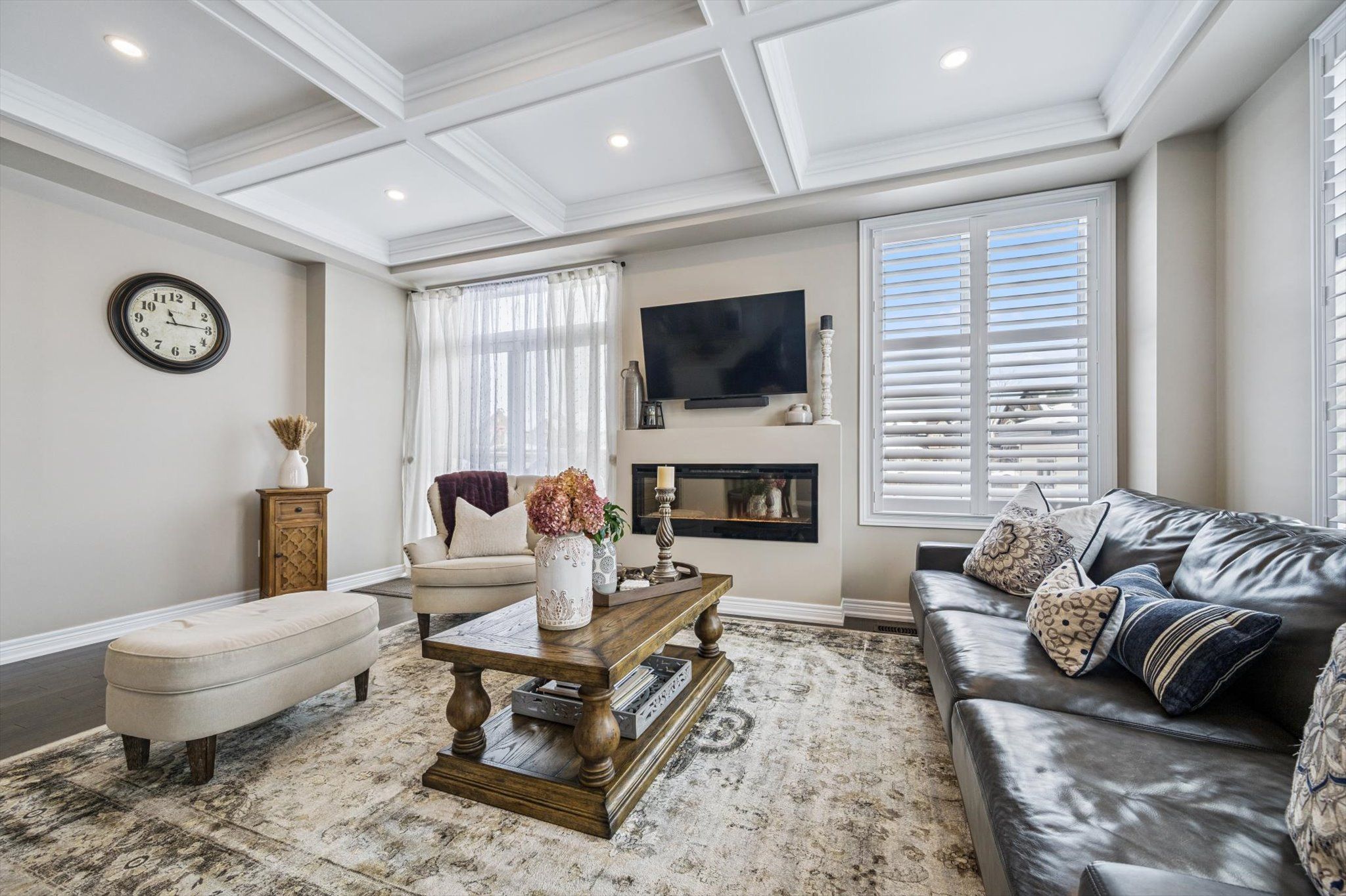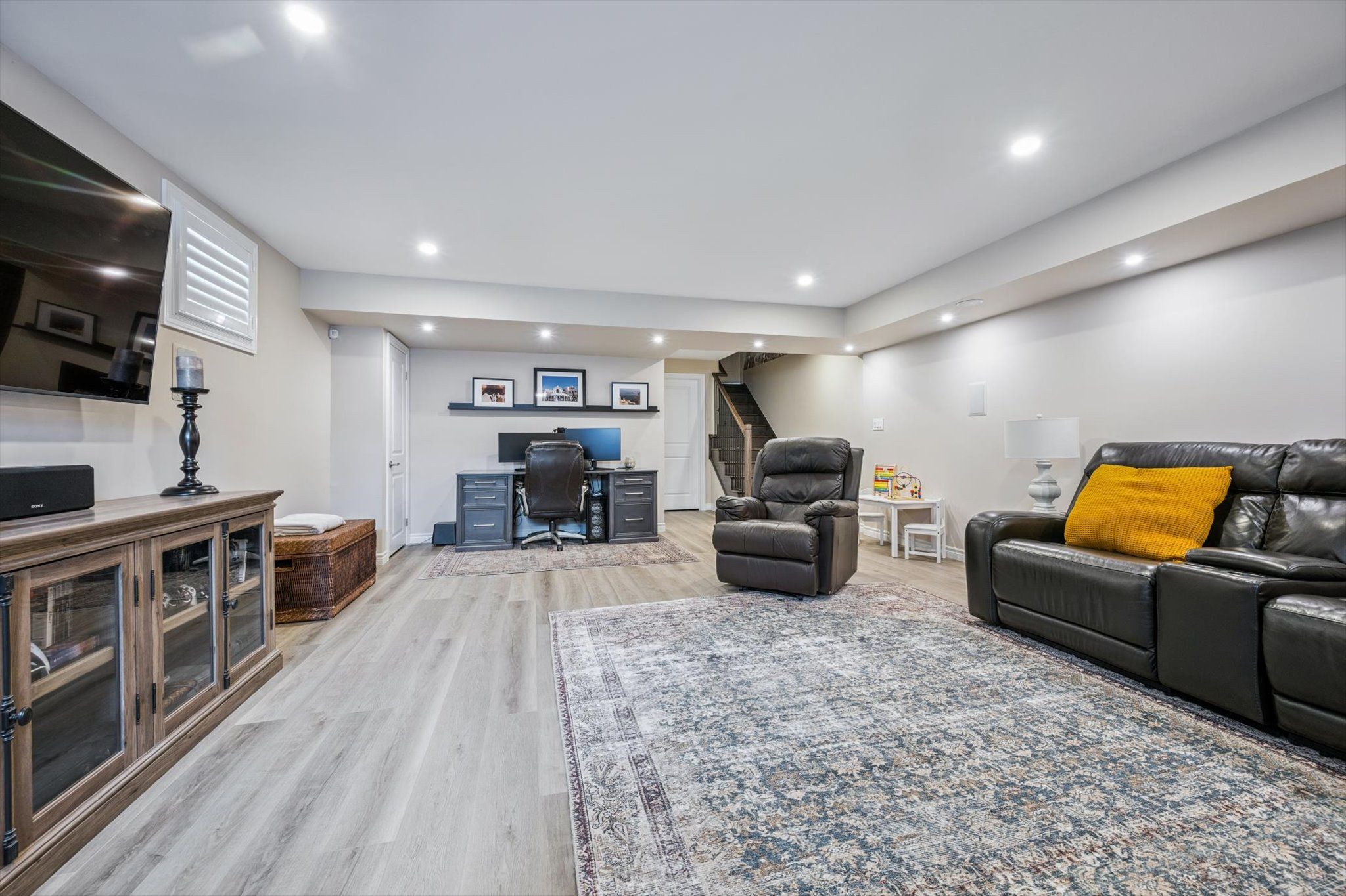 Refined design, elevated comfort, and exceptional craftsmanship define this beautifully curated residence at 1383 farmstead - a fully carpet-free home where every finish has been thoughtfully selected to create a timeless and sophisticated living experience. The stunning open-concept main floor showcases rich hardwood flooring, elegant coffered ceilings, california shutters throughout, and an abundance of natural light. A striking wood staircase with wrought-iron spindles adds architectural interest, while upscale light fixtures and pot lights create a warm, refined ambiance. The designer kitchen is both functional and impressive, featuring granite countertops, under-cabinet lighting, a coordinated backsplash, and impeccable craftsmanship. A discreet powder room, versatile office or piano room, and an elegant electric fireplace complete this inviting and beautifully balanced level. Upstairs, three spacious bedrooms and two full bathrooms provide exceptional comfort. The second bedroom offers convenient ensuite privilege access, while the luxurious primary retreat features two walk-in closets and a spa-inspired ensuite with a 6-jet rainfall shower tower. Hardwood flooring continues throughout the upper level, complemented by ceramic tile in the bathrooms. A well-appointed laundry room and rare walk-in linen closet add everyday practicality. The bright lower level extends the living space with a stylish open-concept great room finished in luxury vinyl plank flooring, california shutters, a four-piece bathroom with upscale finishes, wall-mounted speaker system, and generous storage. Furnace and a/c are nearly new, providing efficiency and peace of mind. Outdoors, enjoy a fully fenced yard with irrigation system, custom shed, and professionally landscaped gardens showcasing hydrangeas, hostas, and three japanese maples. An exceptional, meticulously maintained home where quality, design, and comfort come together seamlessly.