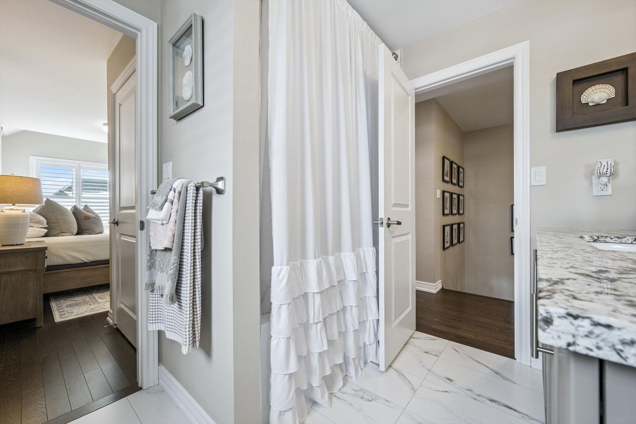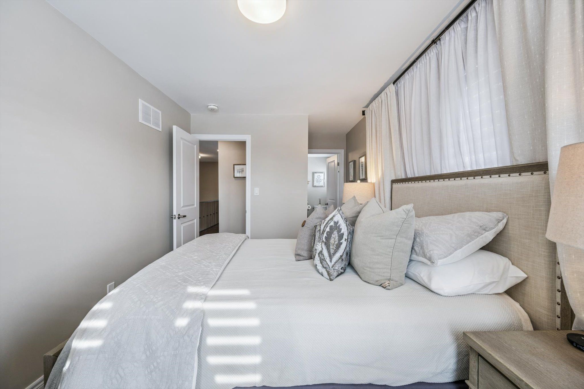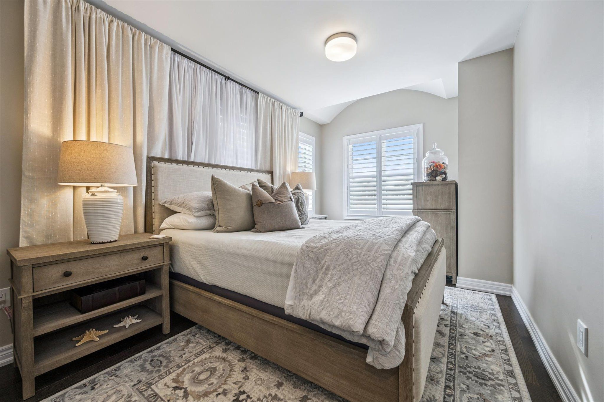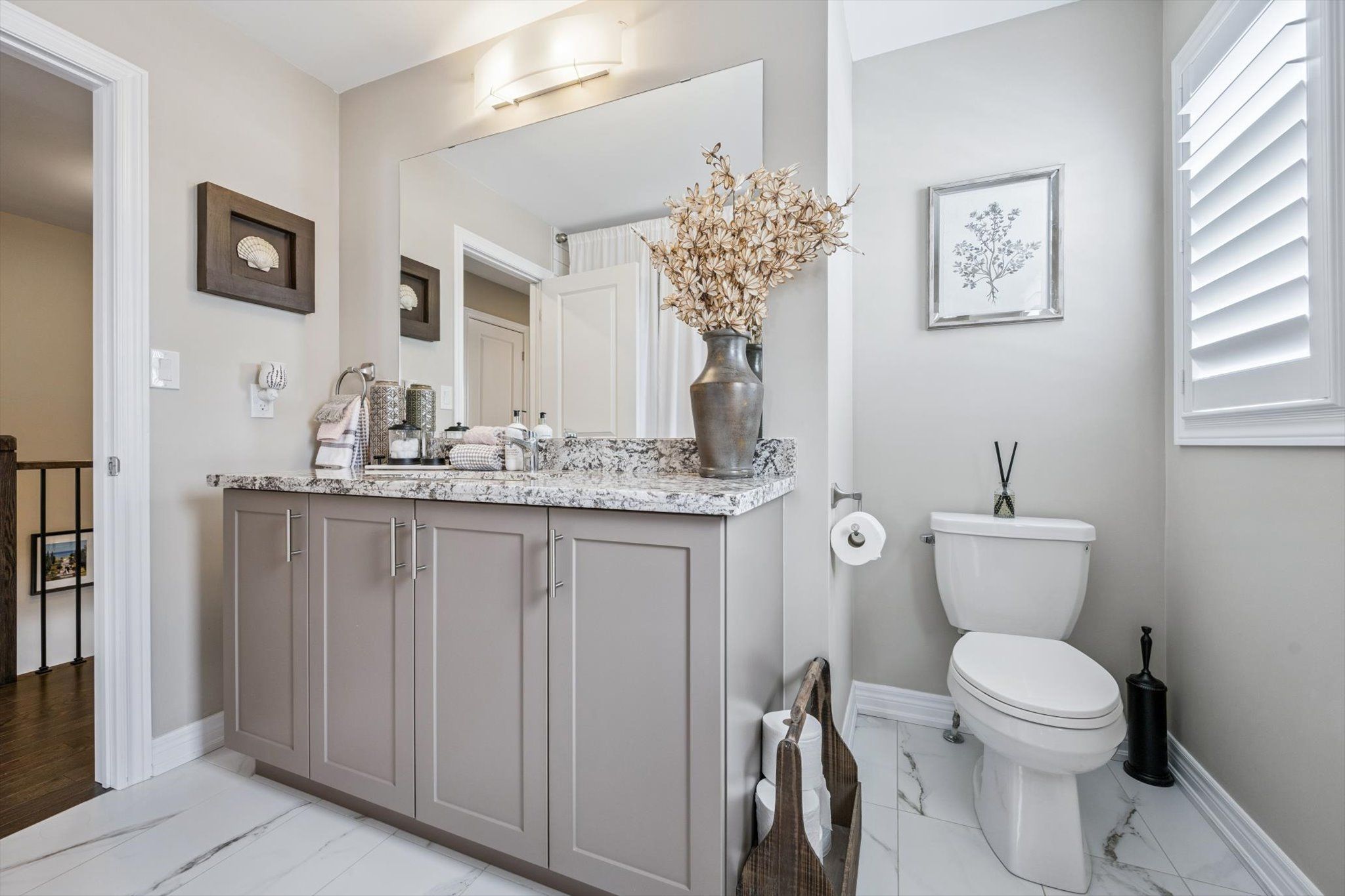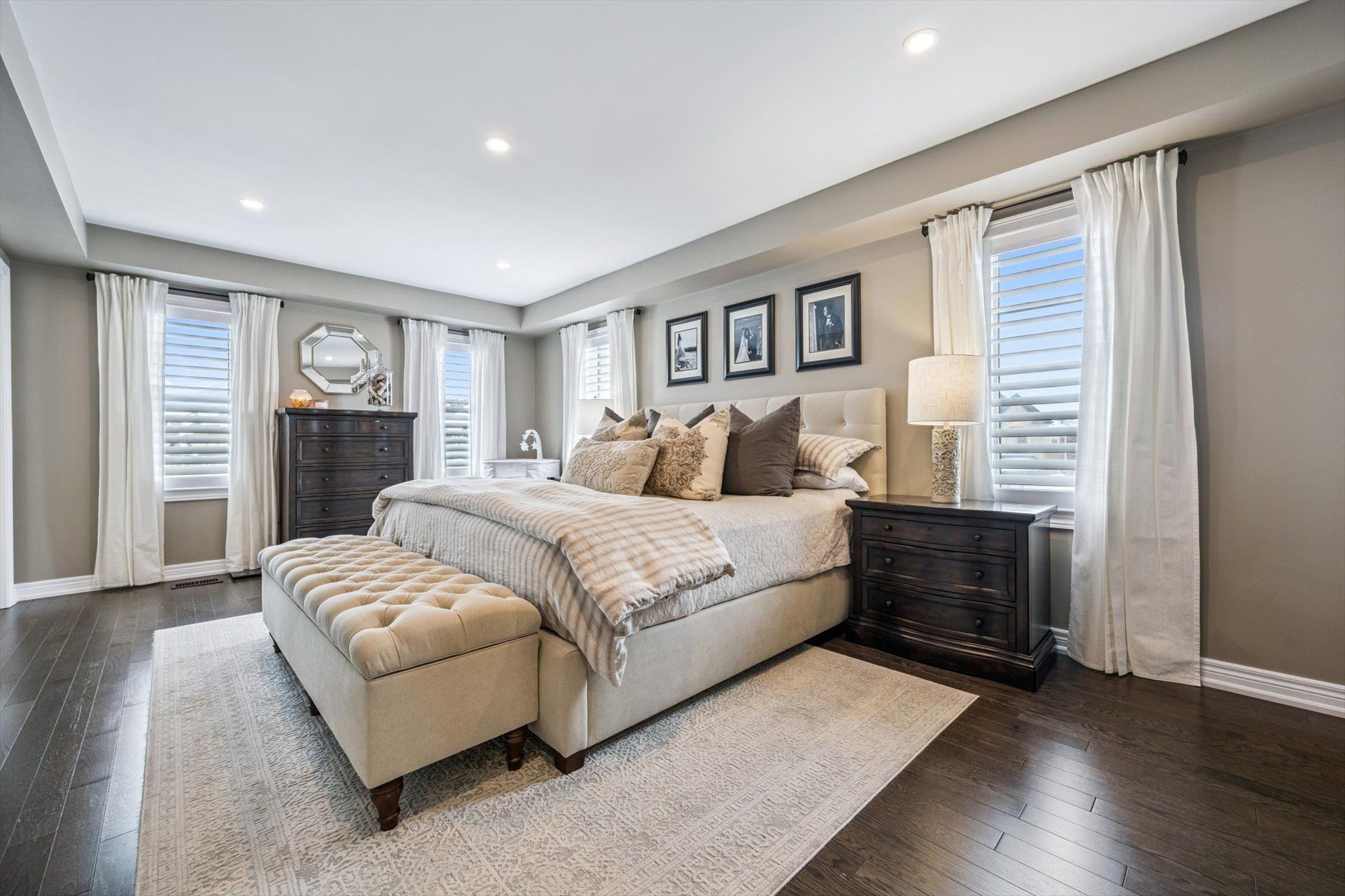 Refined design, elevated comfort, and exceptional craftsmanship define this beautifully curated residence at 1383 farmstead - a fully carpet-free home where every finish has been thoughtfully selected to create a timeless and sophisticated living experience. The stunning open-concept main floor showcases rich hardwood flooring, elegant coffered ceilings, california shutters throughout, and an abundance of natural light. A striking wood staircase with wrought-iron spindles adds architectural interest, while upscale light fixtures and pot lights create a warm, refined ambiance. The designer kitchen is both functional and impressive, featuring granite countertops, under-cabinet lighting, a coordinated backsplash, and impeccable craftsmanship. A discreet powder room, versatile office or piano room, and an elegant electric fireplace complete this inviting and beautifully balanced level. Upstairs, three spacious bedrooms and two full bathrooms provide exceptional comfort. The second bedroom offers convenient ensuite privilege access, while the luxurious primary retreat features two walk-in closets and a spa-inspired ensuite with a 6-jet rainfall shower tower. Hardwood flooring continues throughout the upper level, complemented by ceramic tile in the bathrooms. A well-appointed laundry room and rare walk-in linen closet add everyday practicality. The bright lower level extends the living space with a stylish open-concept great room finished in luxury vinyl plank flooring, california shutters, a four-piece bathroom with upscale finishes, wall-mounted speaker system, and generous storage. Furnace and a/c are nearly new, providing efficiency and peace of mind. Outdoors, enjoy a fully fenced yard with irrigation system, custom shed, and professionally landscaped gardens showcasing hydrangeas, hostas, and three japanese maples. An exceptional, meticulously maintained home where quality, design, and comfort come together seamlessly.