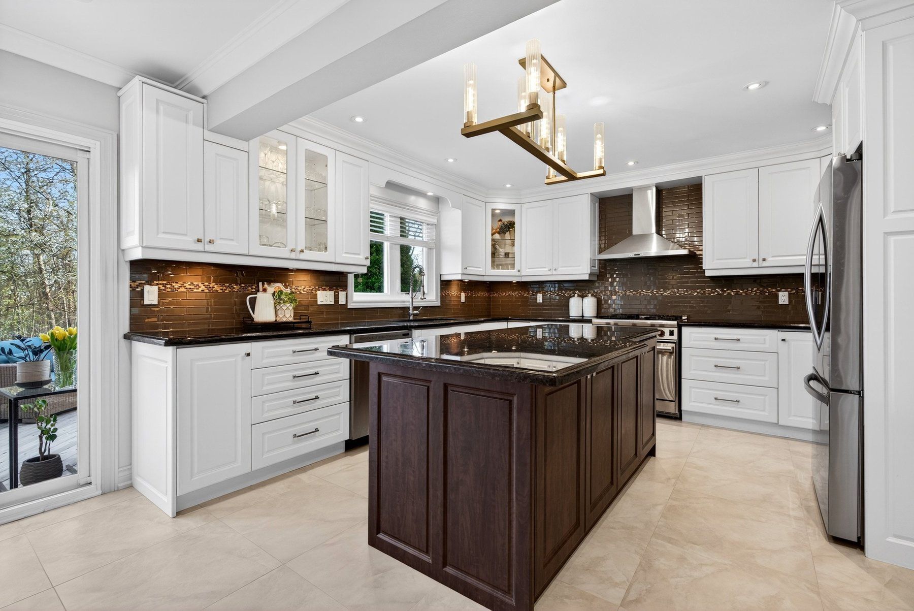 • Gourmet kitchen with premium appliances and a large island for cooking.