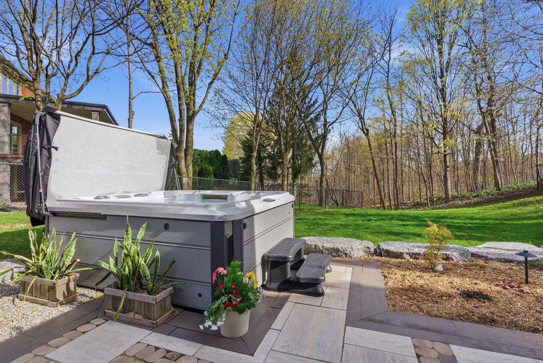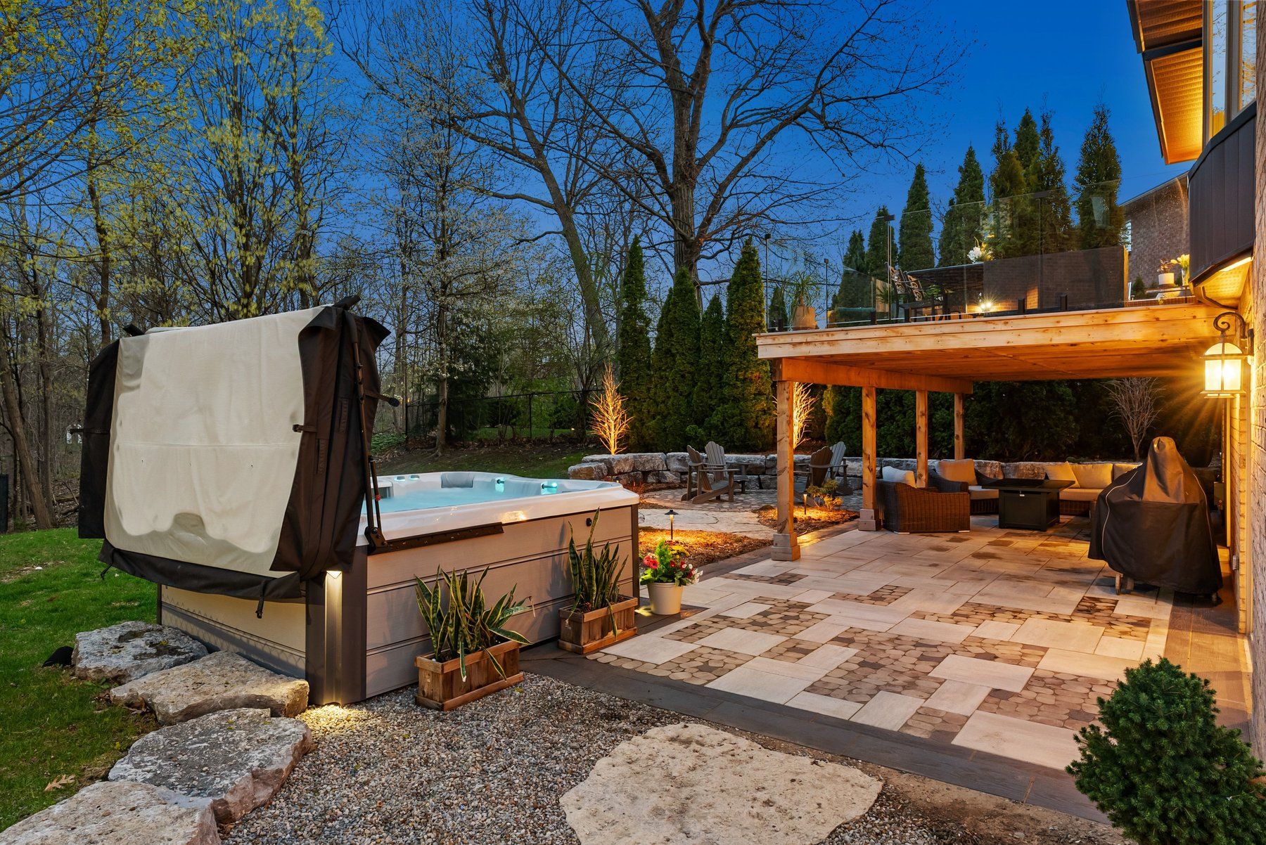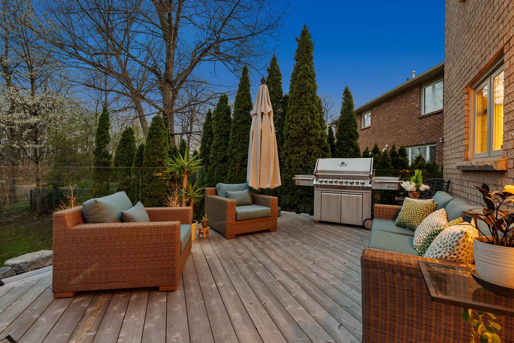 • Large ravine lot with private landscaping and multiple outdoor living areas.