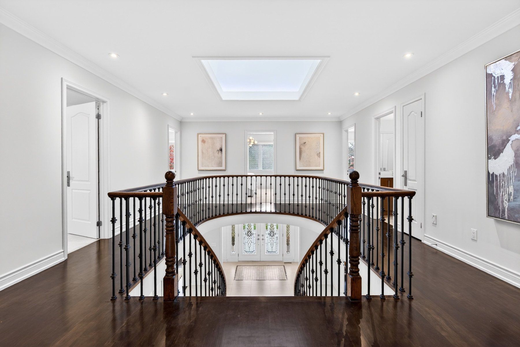Executive lancaster model in sought-after tyandaga set on a premium ravine lot with private, professionally landscaped grounds. Offers 5 bedrooms above grade and a rare 3 full bathrooms on the second level, including 2 private ensuites-ideal for families seeking space and functionality. Impressive centre hall layout featuring a scarlet o'hara staircase as a striking focal point, enhanced by a raised skylight above. Extensive updates throughout including in-situ dark maple hardwood flooring, crown moulding, and beautifully renovated bathrooms. Chef's kitchen with custom cabinetry, granite countertops, large island, and premium appliances including wolf gas range, with walk-out to deck overlooking the ravine. Family room with stone-faced gas fireplace and backyard views. Main floor office. Fully finished walkout basement with wet bar, custom cabinetry, temperature-controlled wine cellar, media area, and 3-piece bath-ideal for entertaining or extended family living. Rare 3-car garage and circular drive-through driveway. Professionally landscaped lot with irrigation, lighting, and multiple outdoor living areas backing onto ravine. Prime location close to golf, trails, schools, and major highways.