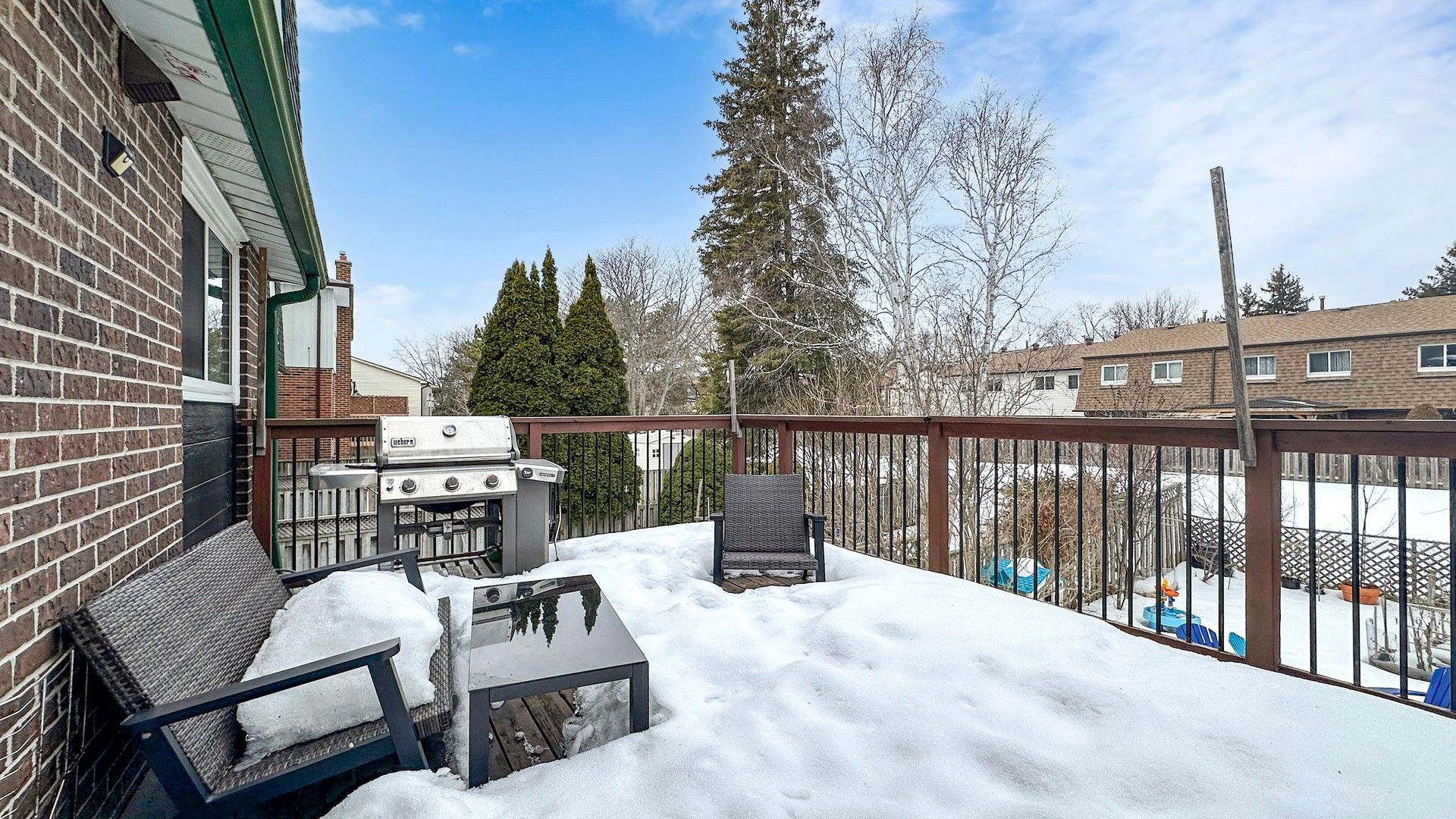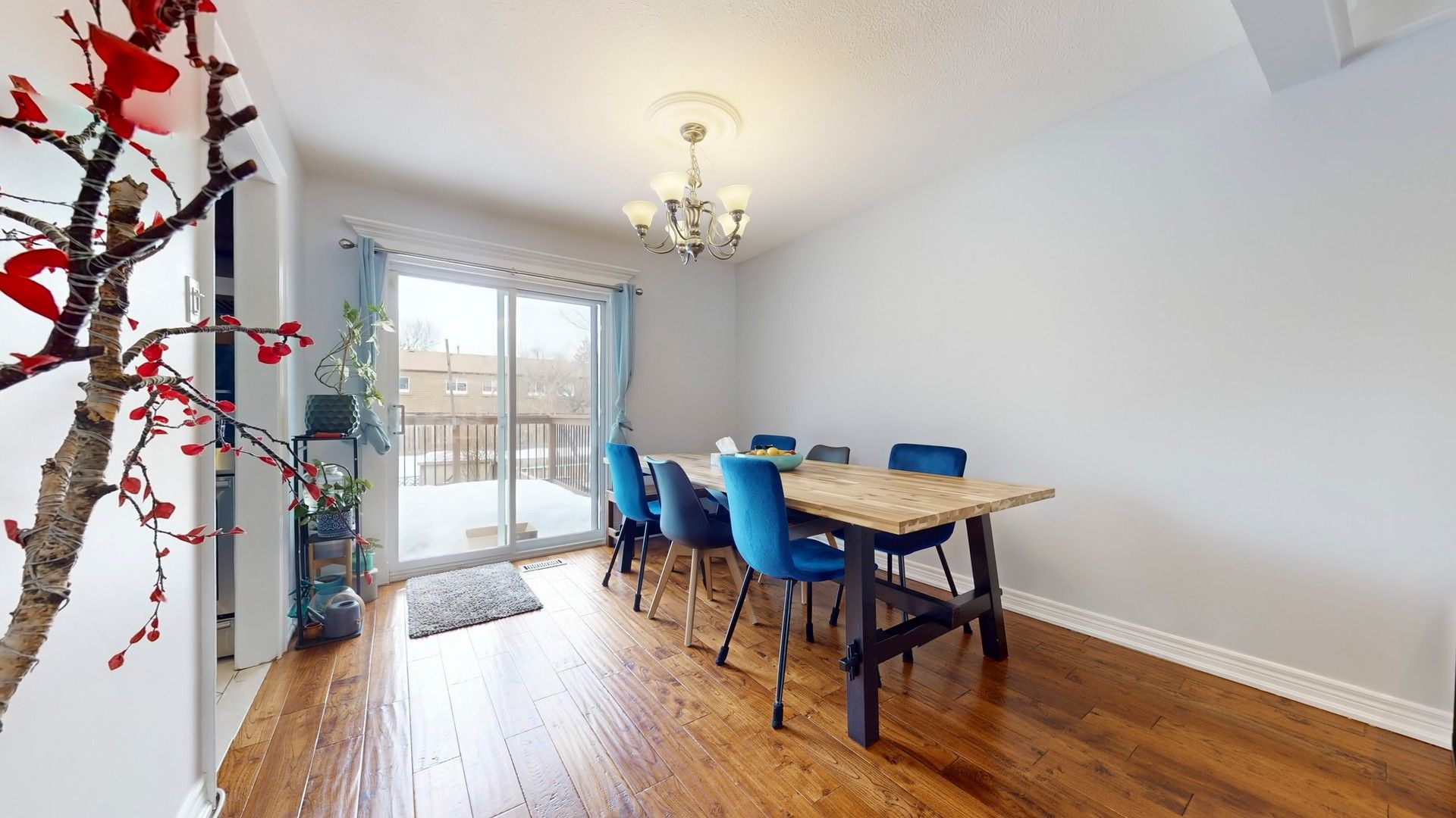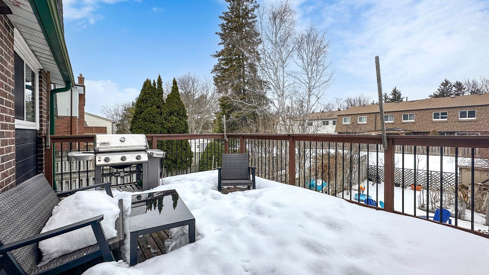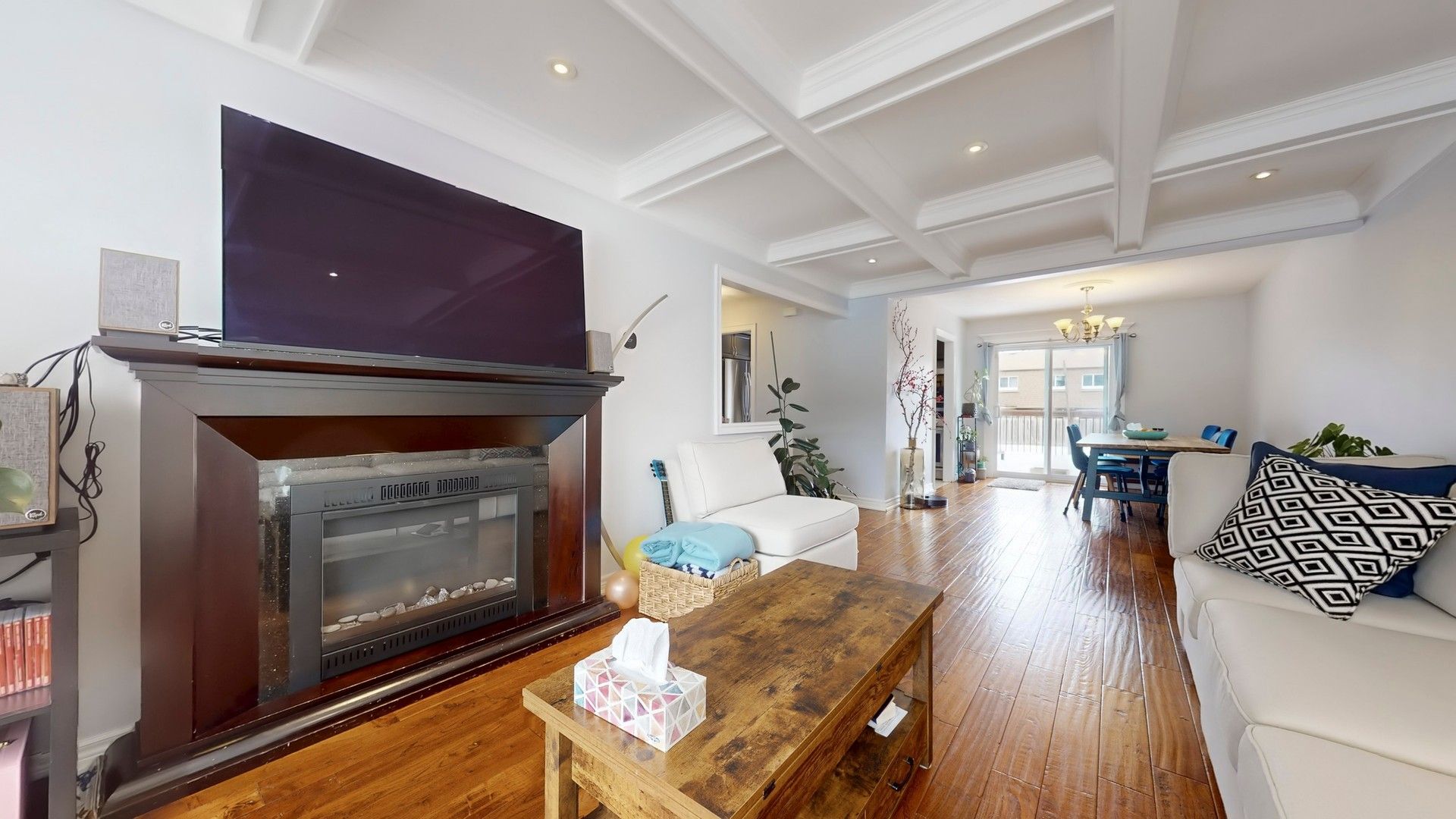 Welcome to this lovely 3 bed, 3 bath town home in a peaceful but central area of pickering. Stunning coffered ceiling, pot lights, electric fireplace & hardwood flooring in the living and dining area to enjoy your evenings or lazy weekend afternoons. Enjoy a walkout to a large deck from the dining room, complete with natural gas hookup for those summer evening barbeques. Updated kitchen w/ ceramic floors, back splash, & stainless steel appliances. Walk upstairs to three oversized bedrooms, each with a large closet (two of them walk-ins!). The primary bedroom is complete with an ensuite bath. Both upstairs bathrooms have granite countertops! Create your perfect entertainment space by utilizing the basement, with a gas fireplace, and a walkout to a beautifully manicured backyard. Take advantage of all the updates done to show pride of ownership: ac/heat pump and furnace 2023, roof 2022, freshly painted, and ready to be yours!