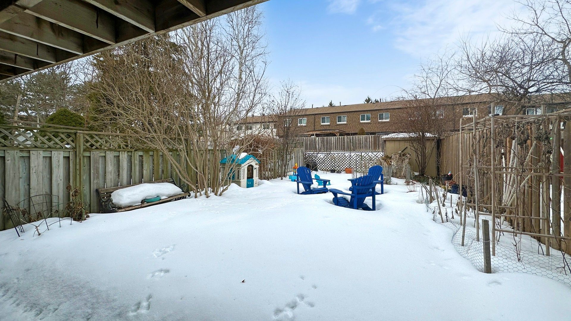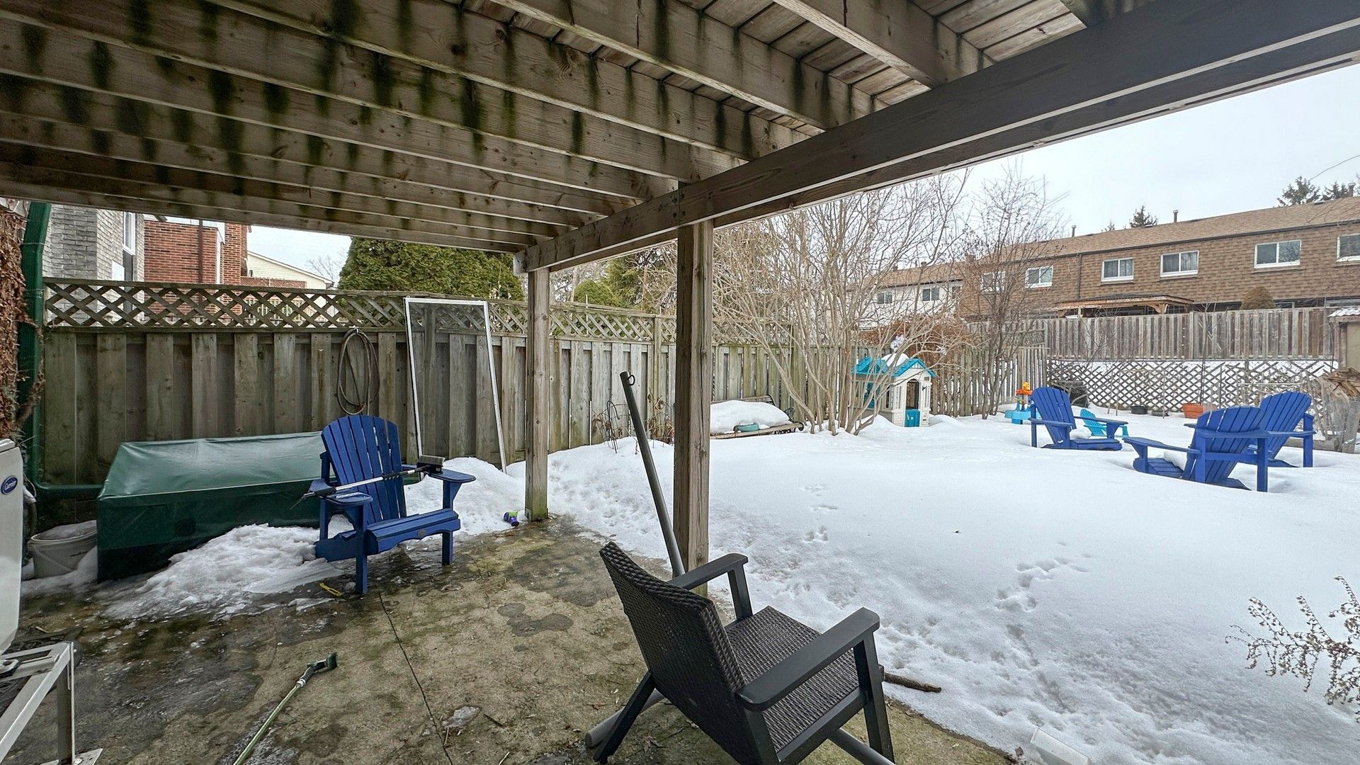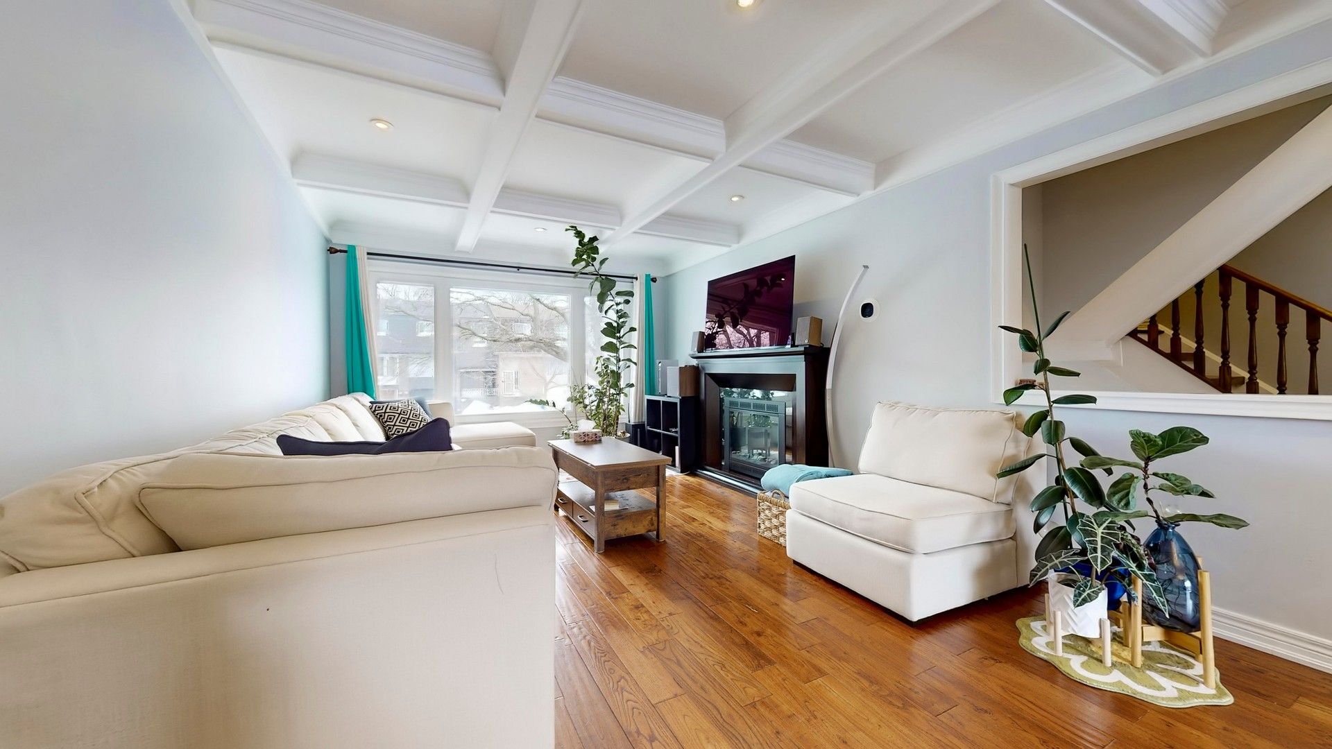 Welcome to this lovely 3 bed, 3 bath town home in a peaceful but central area of pickering. Stunning coffered ceiling, pot lights, electric fireplace & hardwood flooring in the living and dining area to enjoy your evenings or lazy weekend afternoons. Enjoy a walkout to a large deck from the dining room, complete with natural gas hookup for those summer evening barbeques. Updated kitchen w/ ceramic floors, back splash, & stainless steel appliances. Walk upstairs to three oversized bedrooms, each with a large closet (two of them walk-ins!). The primary bedroom is complete with an ensuite bath. Both upstairs bathrooms have granite countertops! Create your perfect entertainment space by utilizing the basement, with a gas fireplace, and a walkout to a beautifully manicured backyard. Take advantage of all the updates done to show pride of ownership: ac/heat pump and furnace 2023, roof 2022, freshly painted, and ready to be yours!