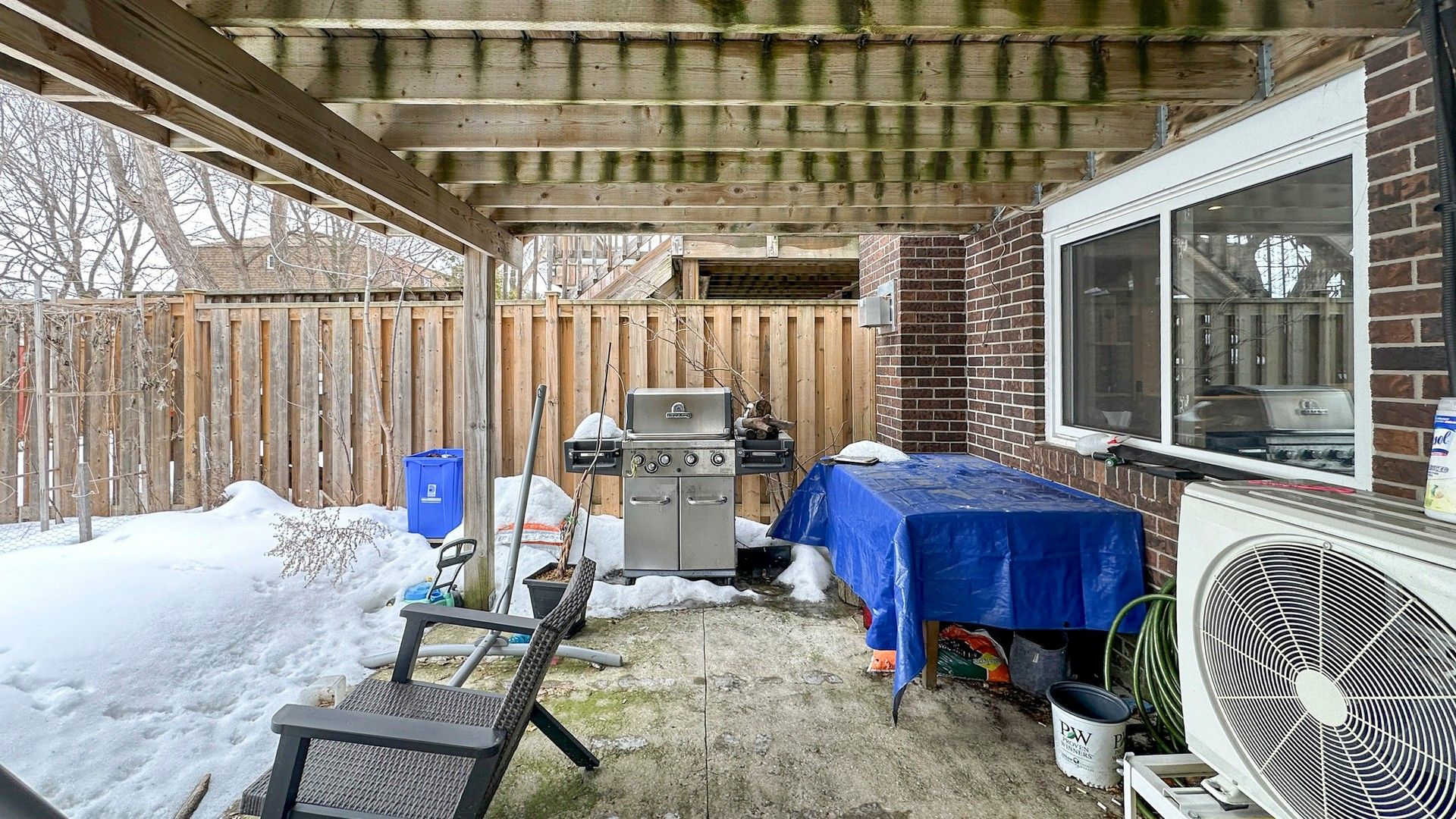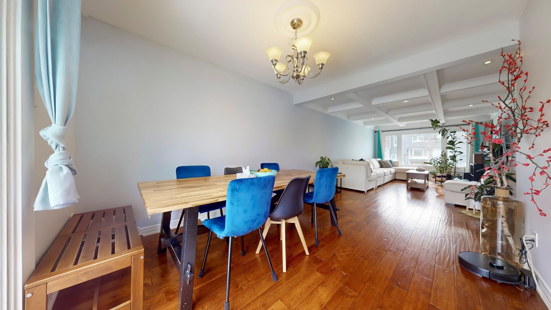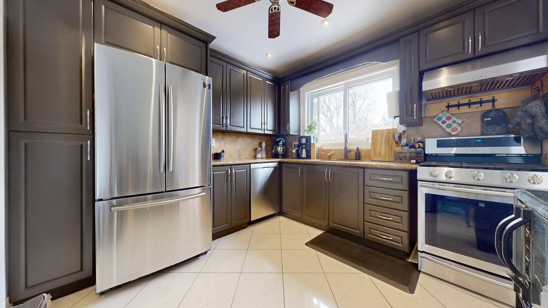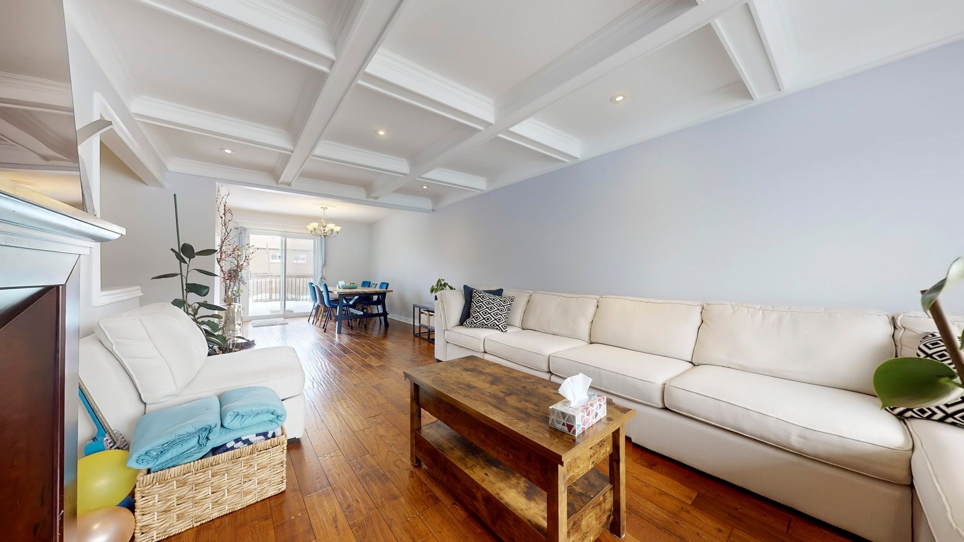Welcome to this lovely 3 bed, 3 bath town home in a peaceful but central area of pickering. Stunning coffered ceiling, pot lights, electric fireplace & hardwood flooring in the living and dining area to enjoy your evenings or lazy weekend afternoons. Enjoy a walkout to a large deck from the dining room, complete with natural gas hookup for those summer evening barbeques. Updated kitchen w/ ceramic floors, back splash, & stainless steel appliances. Walk upstairs to three oversized bedrooms, each with a large closet (two of them walk-ins!). The primary bedroom is complete with an ensuite bath. Both upstairs bathrooms have granite countertops! Create your perfect entertainment space by utilizing the basement, with a gas fireplace, and a walkout to a beautifully manicured backyard. Take advantage of all the updates done to show pride of ownership: ac/heat pump and furnace 2023, roof 2022, freshly painted, and ready to be yours!
