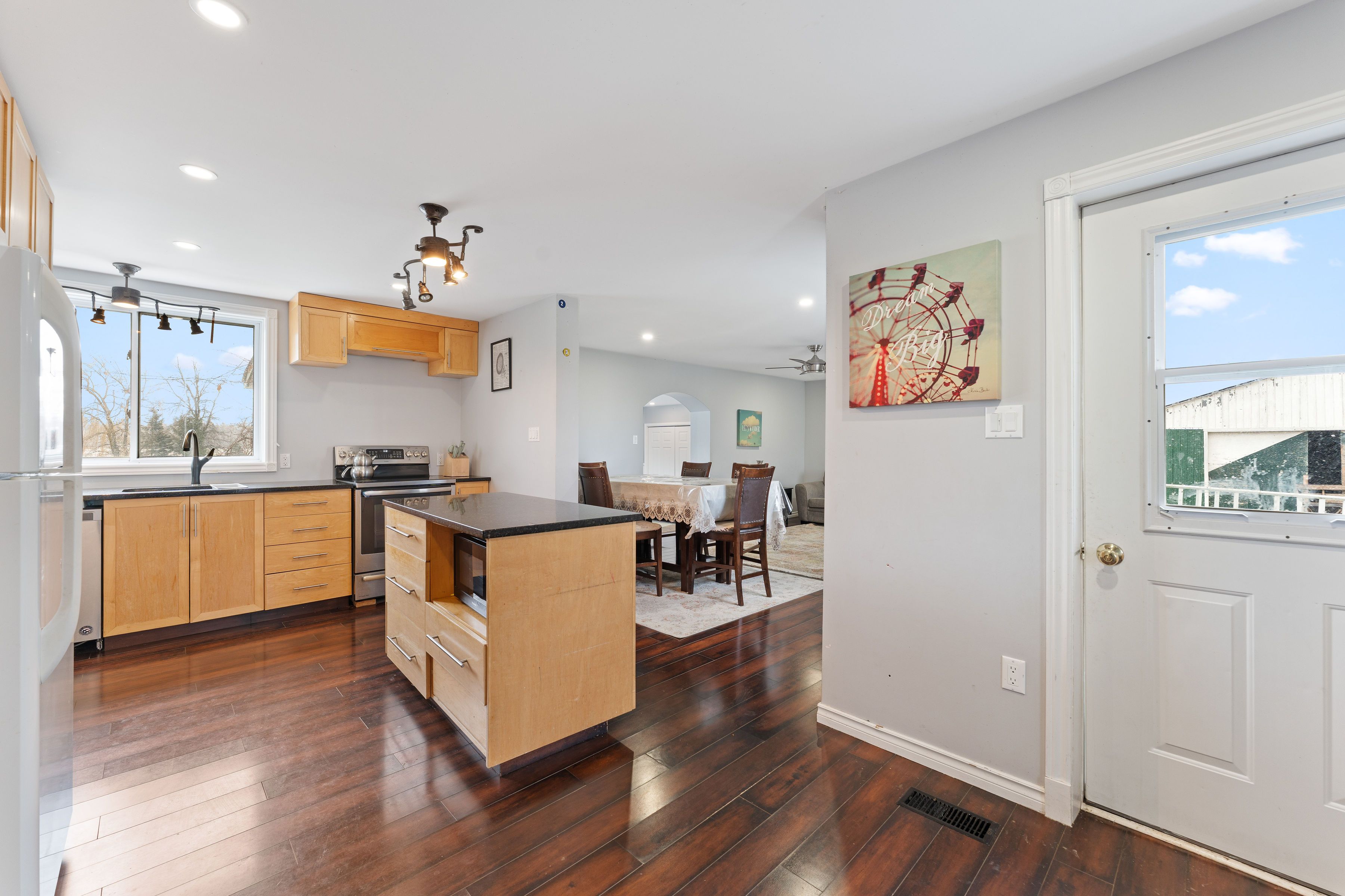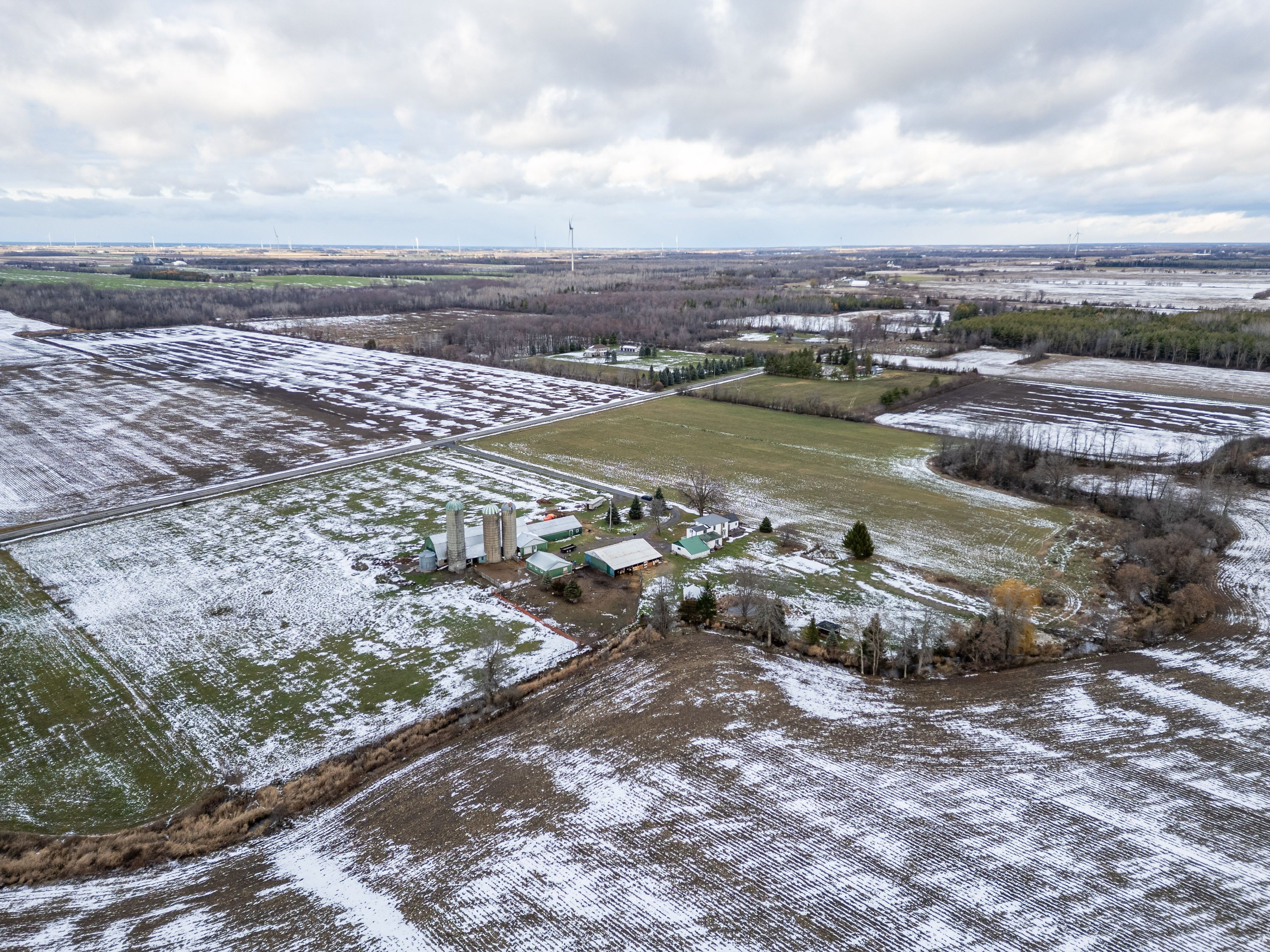 Welcome to 13840 grantley rd-a private 20-acre property featuring 17 acres of organic hay and 1 acre of licensed hemp and vegetable production. All fields are tile-drained and have been maintained with organic compost only for the past seven years, with no herbicides, pesticides, or commercial fertilizers used. Portions of the land are already divided into paddocks, ideal for livestock or horses. A wood boiler efficiently heats both the entire home and a large insulated section of the barn, suitable for hobbies, heated storage, or housing animals. The original section of the barn is a two-storey, hip-roof structure that can accommodate livestock on the main level and hay storage above. Two additional outbuildings offer ample space-one for hay, wood, or equipment storage, and the other originally built as a calf barn. The property also includes three stave silos and a 30-ton metal grain tank. The beautiful home showcases an open-concept living room and kitchen, complete with solid maple cabinetry, a large island, granite countertops, and new high-end stainless steel appliances. Recent updates include high-speed wi-fi throughout the home and barn, updated electrical wiring with a 200-amp breaker panel, improved plumbing, a propane furnace, new flooring, windows, and more.