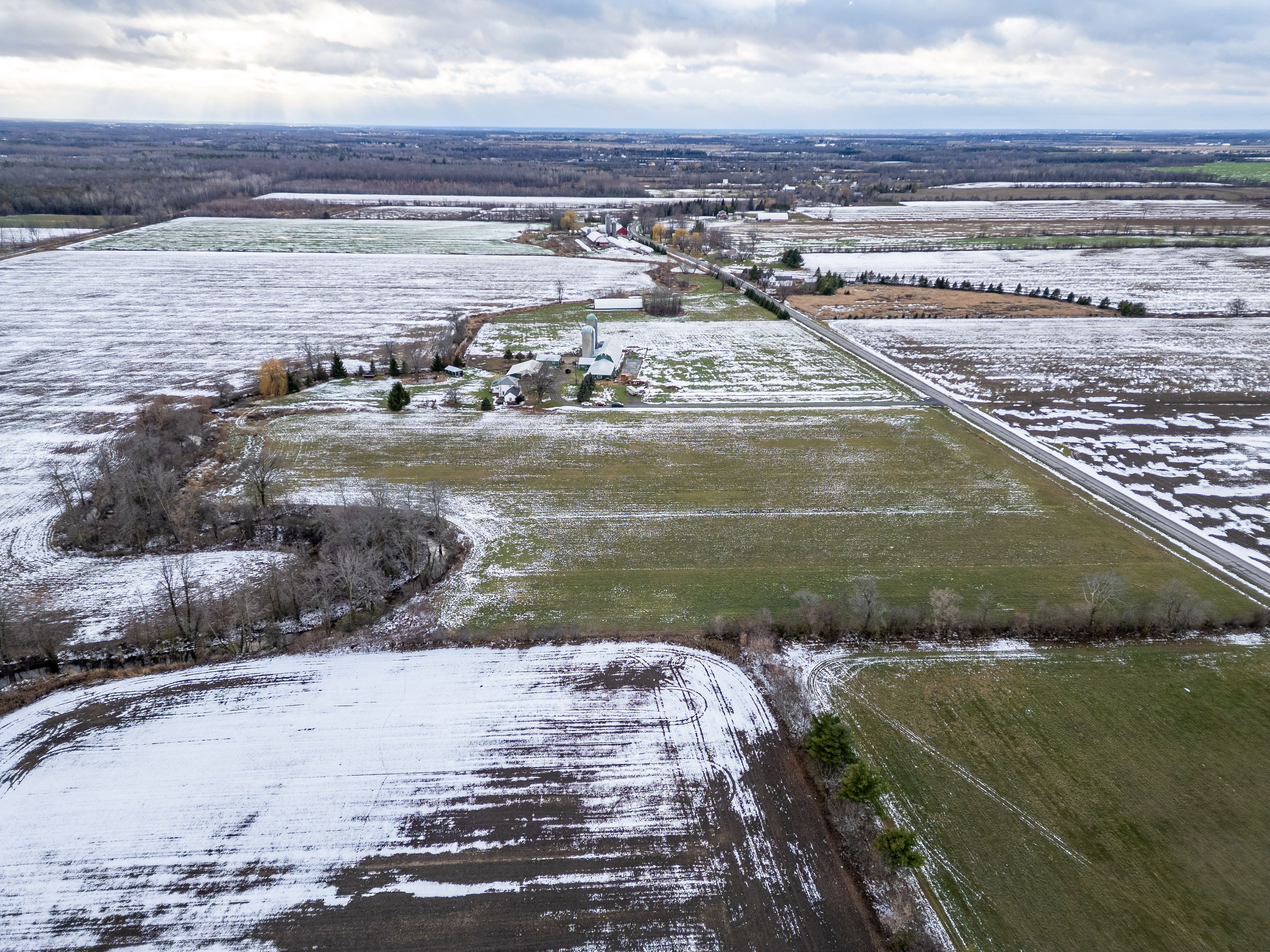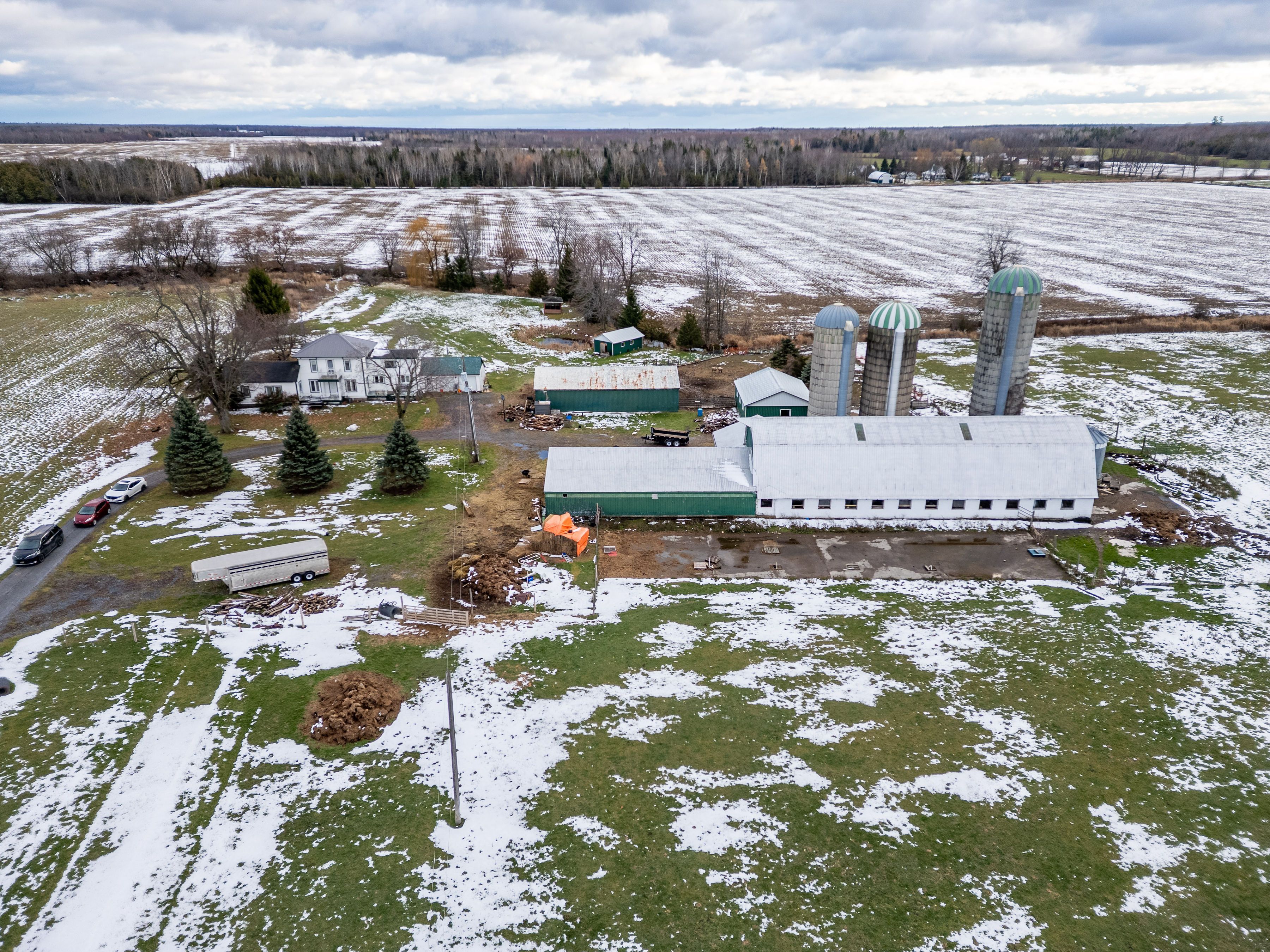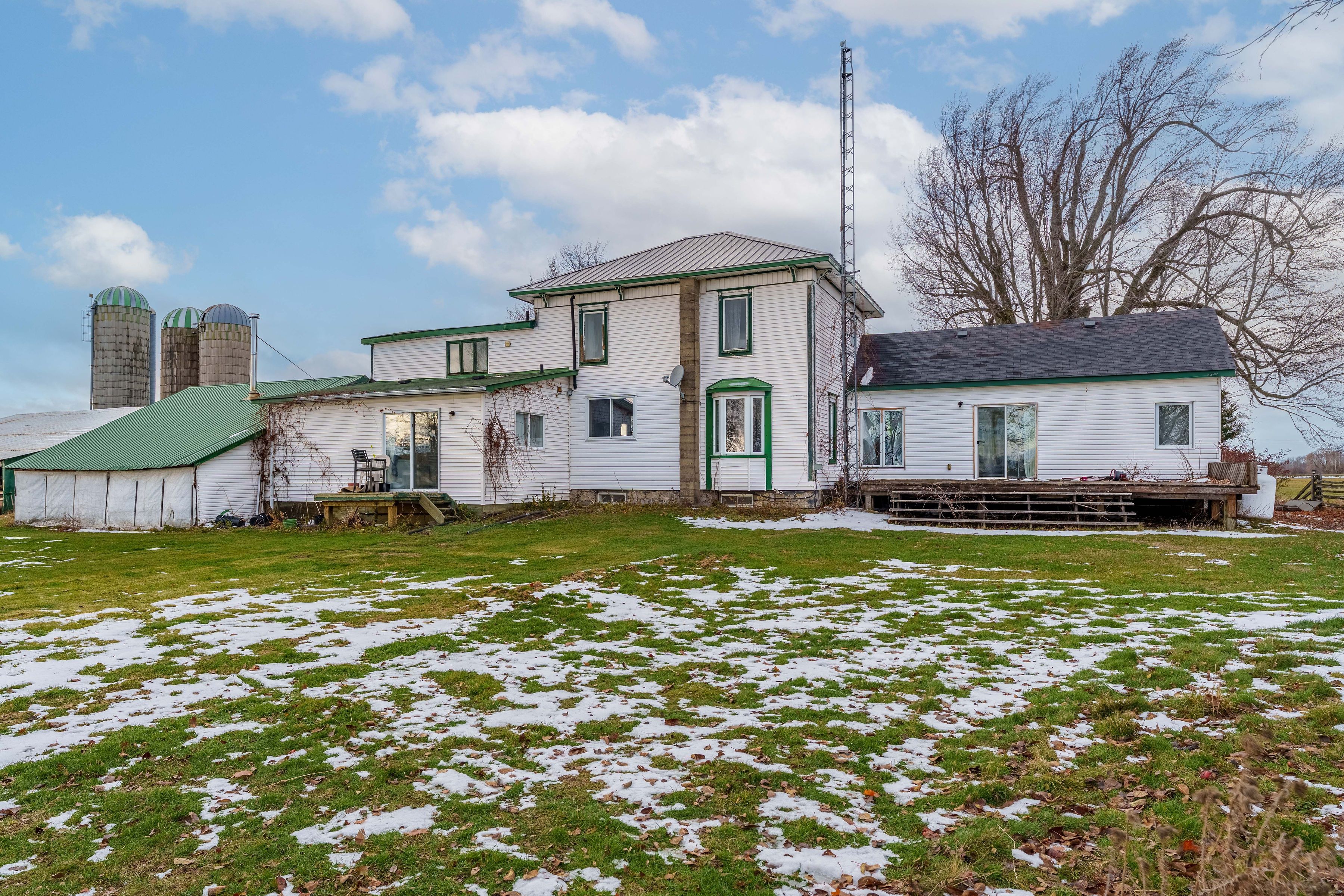 Welcome to 13840 grantley rd-a private 20-acre property featuring 17 acres of organic hay and 1 acre of licensed hemp and vegetable production. All fields are tile-drained and have been maintained with organic compost only for the past seven years, with no herbicides, pesticides, or commercial fertilizers used. Portions of the land are already divided into paddocks, ideal for livestock or horses. A wood boiler efficiently heats both the entire home and a large insulated section of the barn, suitable for hobbies, heated storage, or housing animals. The original section of the barn is a two-storey, hip-roof structure that can accommodate livestock on the main level and hay storage above. Two additional outbuildings offer ample space-one for hay, wood, or equipment storage, and the other originally built as a calf barn. The property also includes three stave silos and a 30-ton metal grain tank. The beautiful home showcases an open-concept living room and kitchen, complete with solid maple cabinetry, a large island, granite countertops, and new high-end stainless steel appliances. Recent updates include high-speed wi-fi throughout the home and barn, updated electrical wiring with a 200-amp breaker panel, improved plumbing, a propane furnace, new flooring, windows, and more.