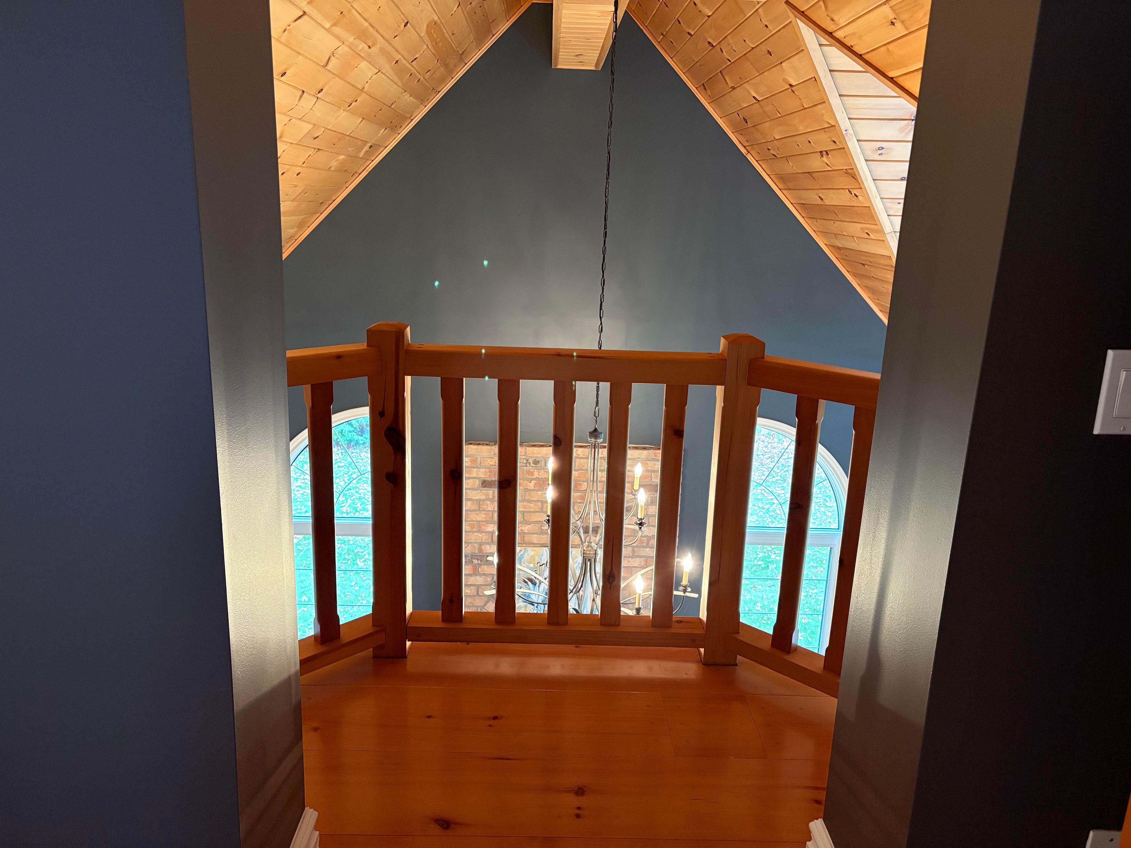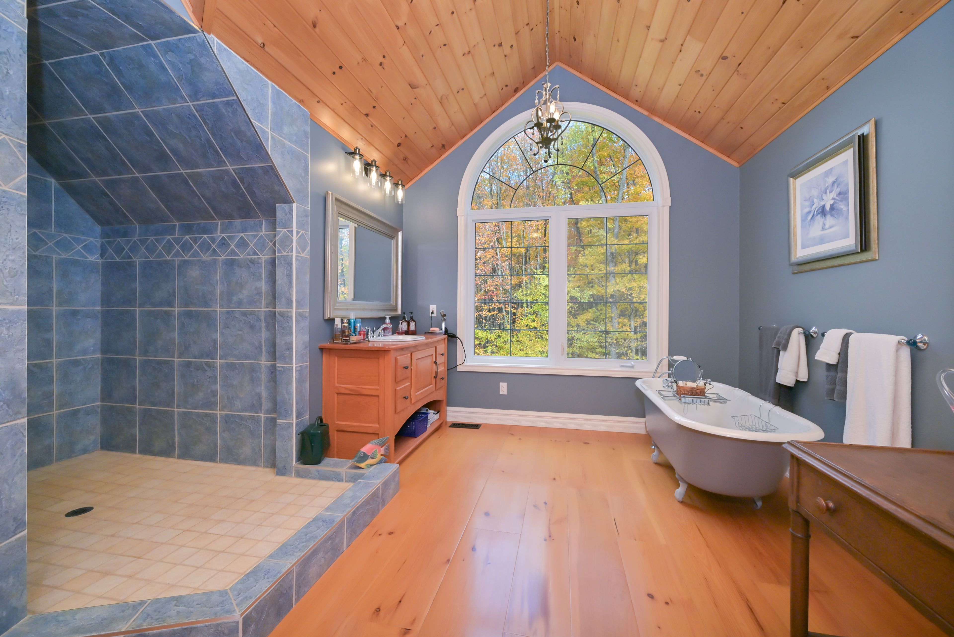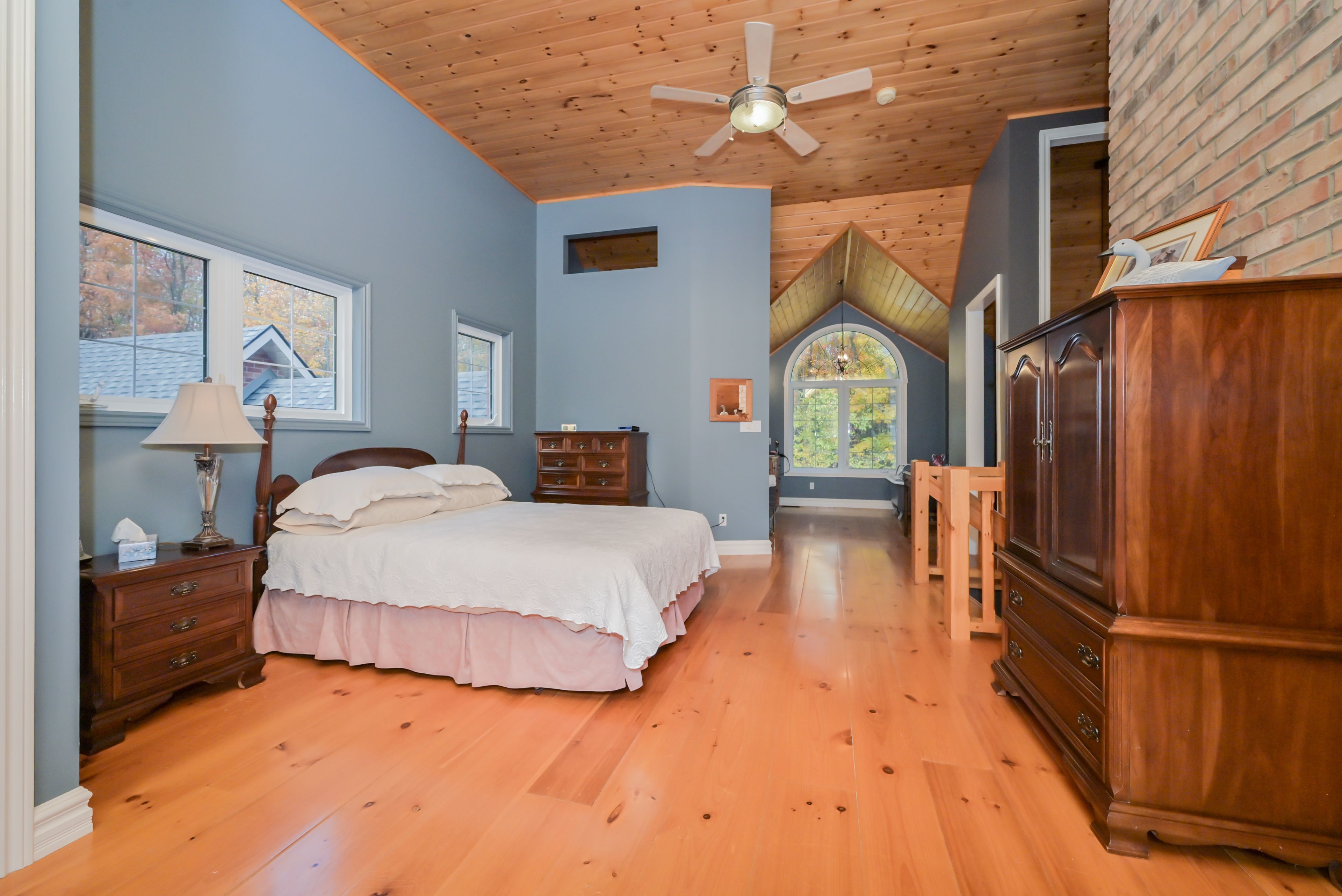 Absolute privacy & seclusion in a wooded 11 acre setting. Beautifully laid out for a couple or small family. Terrific getaway but also provides a spacious setting to entertain family & friends in the great room with soaring 18' vaulted ceiling, w/os to deck or covered porch for bbqs or private party in the yard. Chef's kitchen has centre island w stove & bar sink, tons of cabinets & counterspace, double pantries. Gorgeous crafted & milled woodwork of maple & pine throughout-cabinets, floors, ceilings. Grand vaulted foyer welcomes with access to mudroom & garage, w/o to 2 fenced areas, 2nd stairscase to basement. Main floor bedroom & bathroom for guests or family. Upstairs, via the open wide plank pine staircase to the true primary suite: 12 feet in height with peaked ceiling over windows at each end, vaulted balcony overlooking the 18' high 2 story great room, double closets & a ton of space for reading, sewing or enjoying video equipment. Small office space (or newborn room?) along with ensuite bathroom featuring extra large w/i shower & clawfoot tub. Basement is unfinished but very suitable to create bedrooms & a family room. There is a r/i bathroom already & potential for a separate entrance. When built, wood from the land was harvested & swapped out at a mill & new dry wood milled to fashion the cabinetry, stairs & ceilings here. Interesting items thruout, such as some brick backdrops, slate floor detail, soaring brick fp. Flanked by half moon windows. Some ideas: two large dog runs for pet owners or perhaps create a daycare with outdoor fenced area for the children. The main floor mudroom (in between the foyer & the garage) has a vanity sink but maybe a dog bath? Or change to a laundry room or main floor office. Homes in the woods can be dark inside, but with the extra large windows, many with transoms, some palladian or half moon - the light shines in. Create your own trails through the woods for hiking or snowshoeing. See feature sheet for more.