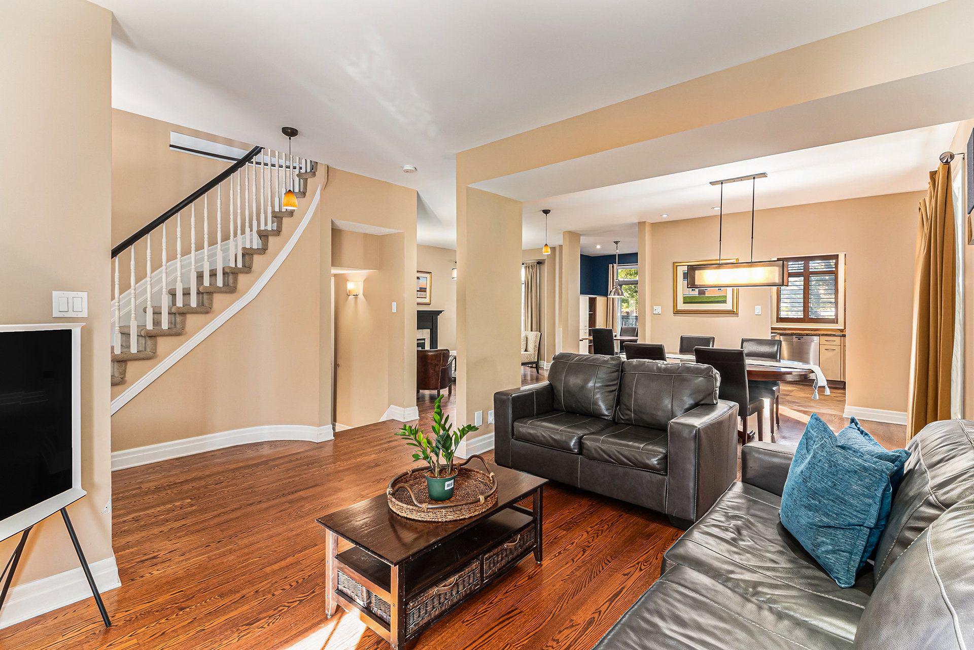 Welcome to this impressive & expansive (almost 2900sqft liv space) 4-bedroom residence perfectly situated on a sought-after premium corner lot in a desirable neighbourhood! This home offers a wonderful blend of style & functionality, complemented by a double-car garage, interlock landscaping & an inviting front porch. Step inside to a bright & inviting main floor featuring hardwood flooring & pot lighting. The open-concept design creates seamless visual sight lines across the principal living areas, including a formal living & dining room ideal for entertaining. The kitchen is designed with a vibrant & welcoming atmosphere that balances earthy warmth tones with a rich tile palette. It boasts granite countertops, a gas stove with chimney hood-fan, built-in oven & plenty of cabinetry for storage. The adjoining breakfast area opens through patio doors to a fully fenced backyard. A cozy family room w/a gas fireplace adds comfort, while a powder room, laundry area & inside access to the garage provide exceptional convenience. A curved staircase leads to the upper level featuring new hardwood flooring (22)! The generous size primary suite is a true retreat, offering a relaxing sitting area, a walk-in closet & a beautifully updated 5-piece ensuite with double sinks & a luxurious soaker tub. Three additional ample size bedrooms-one featuring its own walk-in closet-share an updated full bathroom with double sinks, ensuring plenty of space for family or guests. The finished basement expands the living space with a large recreation room accented by laminate flooring, pot lights, custom built-ins & cabinetry with a media unit. A separate office or hobby room & a spacious utility area complete this level, offering both comfort & practicality. Peace of mind updates include: roof(22), furnace(17), ac(21). Ideally located near restaurants, grocery stores & a movie theatre, this home also provides easy access to pineview golf course & major amenities! 24 hours irrev on offer.