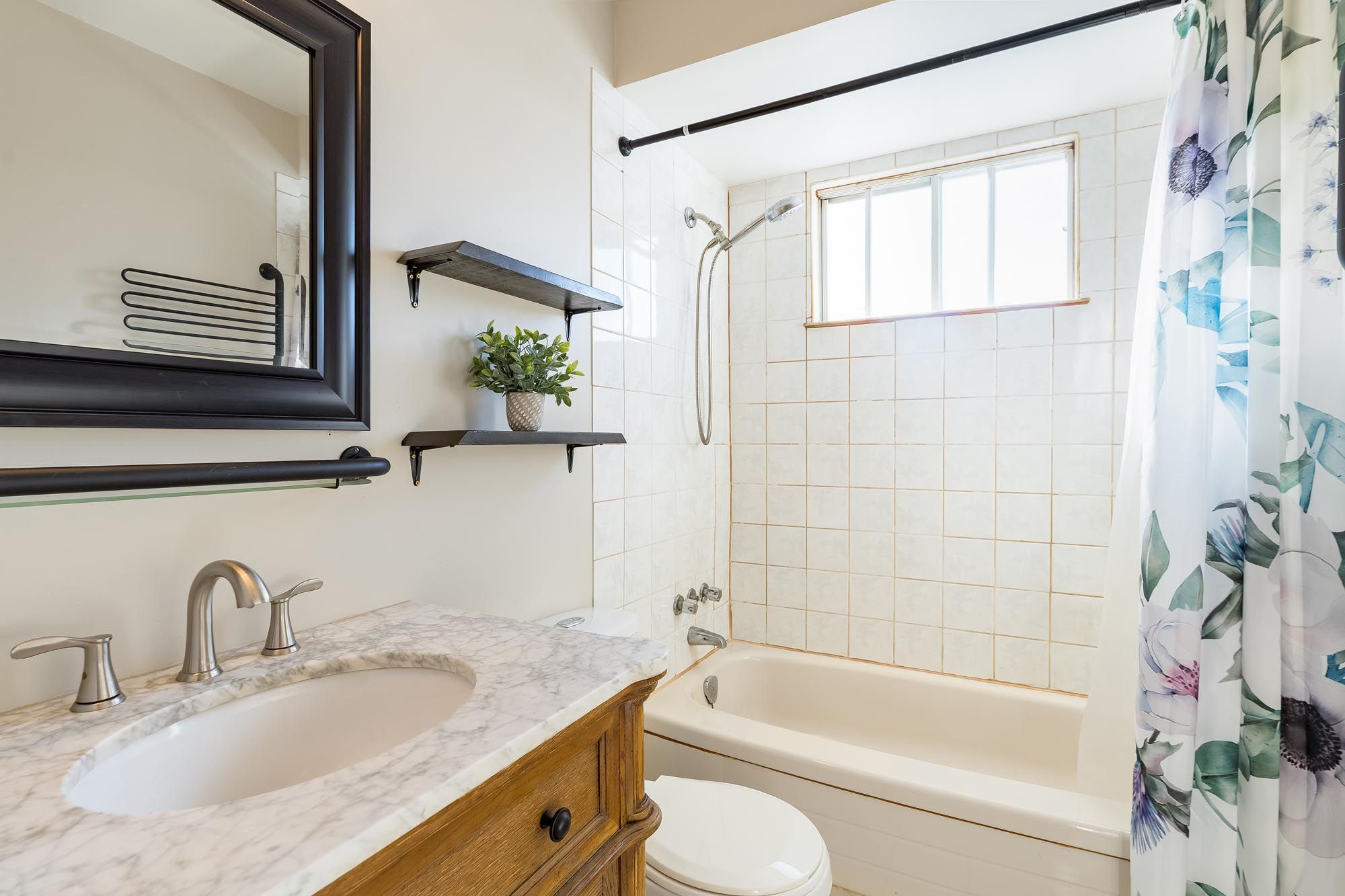 • Thoughtfully refreshed interior with laminate and tile flooring for easy maintenance.