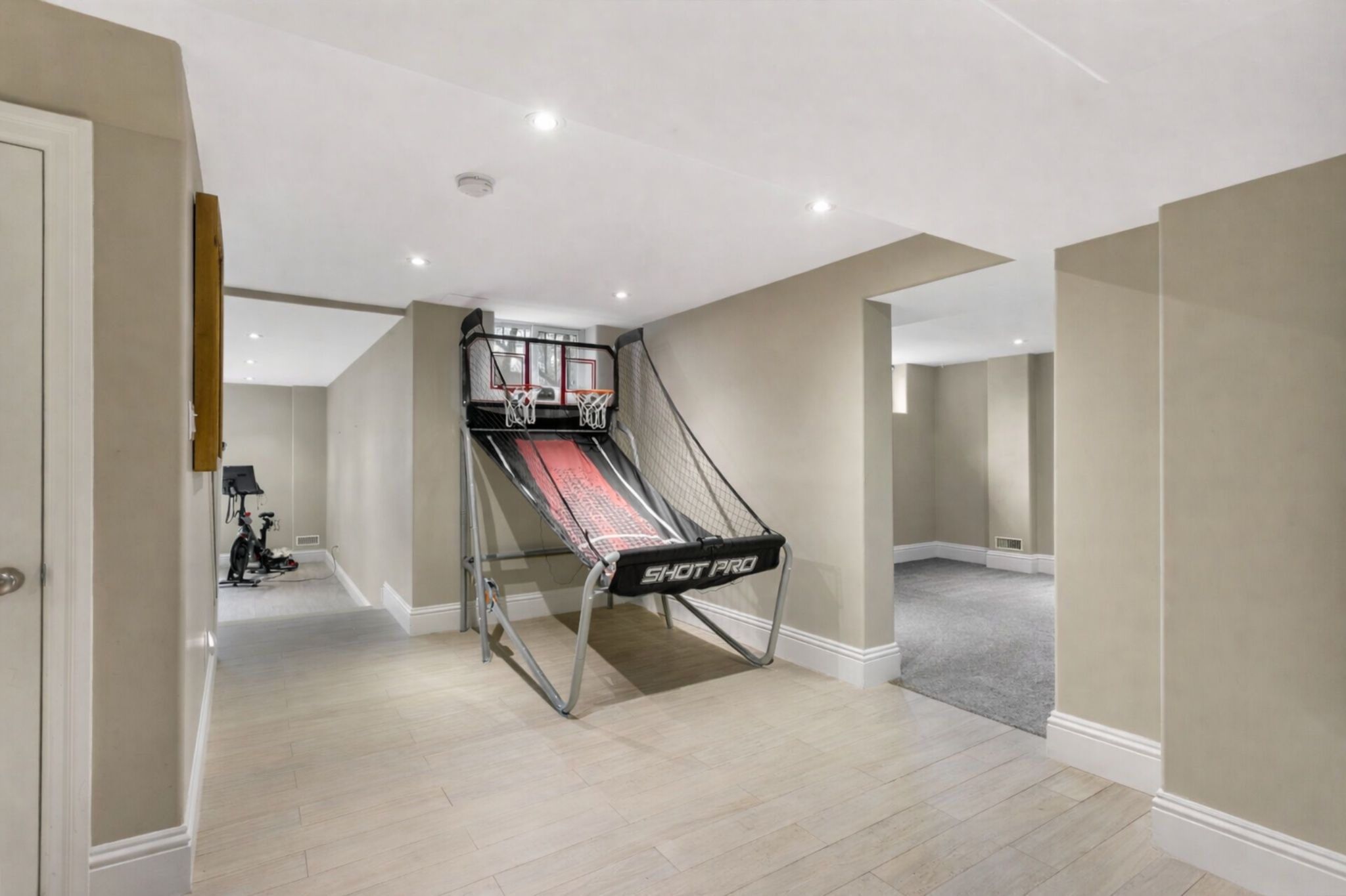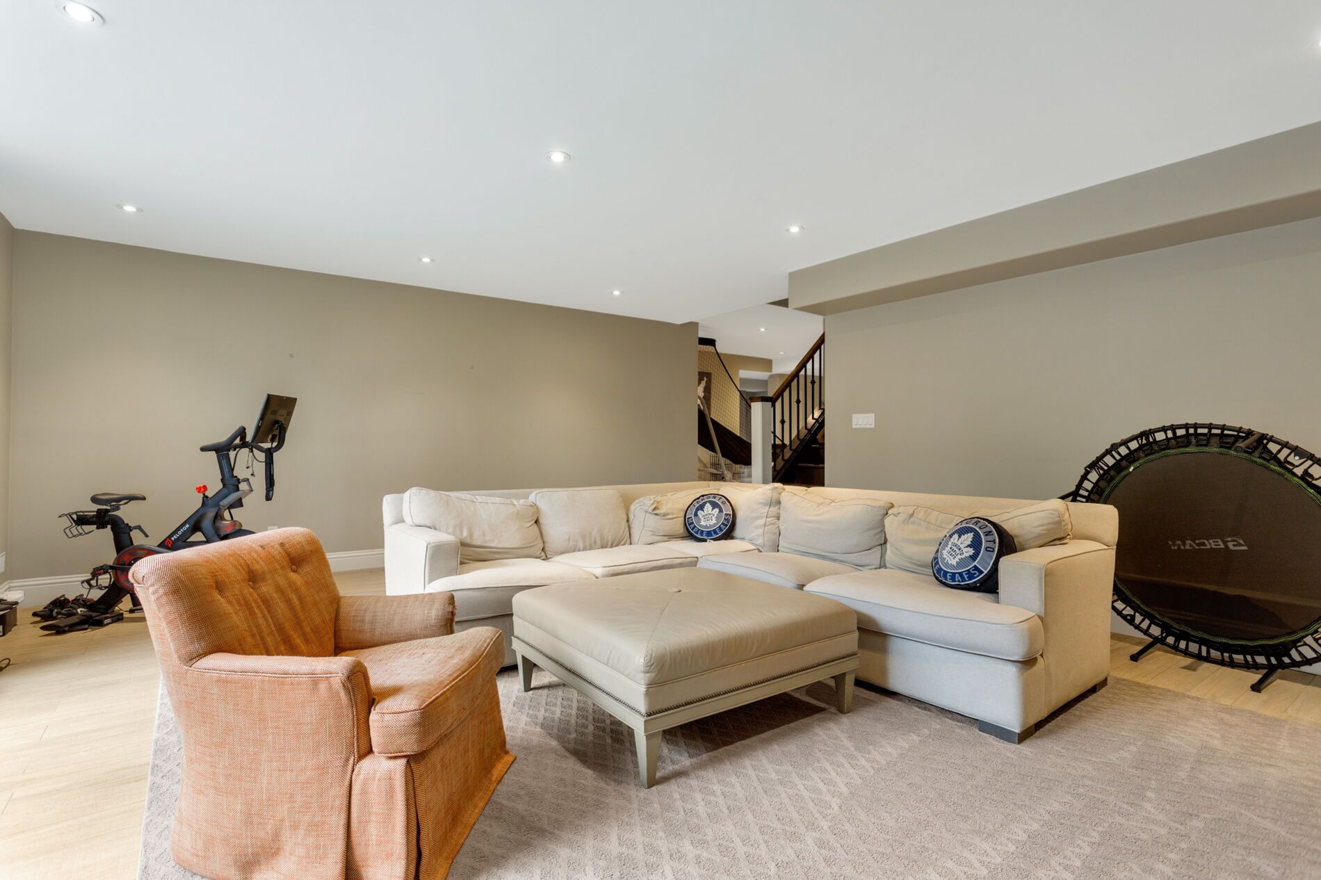 Welcome to this exceptional upscale residence set on a sprawling 75 x 150 ft lot in prestigious coronation park. A 10-minute walk to coronation park on lake ontario and minutes to bronte harbour and village, oakville harbour and downtown oakville, for upscale shopping and restaurants. A 5-minute drive to the qew and bronte go station for commuters. Showcasing outstanding curb appeal with a stucco and stone façade, deluxe mouldings, professional landscaping, a stone walkway, covered flagstone porch and an extra-long driveway to a triple (tandem) garage, the home transitions seamlessly to a private backyard oasis-an entertainer's dream with upgraded stone patios, a custom saltwater pool with armour stone waterfall, lush gardens, multiple seating areas and ultimate privacy with mature trees. Offering 4 spacious bedrooms, 3. 5 bathrooms and a professionally finished walk-up basement, the interior exudes refined craftsmanship with exotic hardwood floors, smooth ceilings, rounded drywall corners, crown mouldings, custom cabinetry, an impressive floating staircase, and abundant natural light. Highlights include a grand dining room, a dramatic family room with a cathedral ceiling, a gas fireplace and walkout, a private office, and a chef's kitchen with custom cabinetry, granite counters, an oversized island and premium viking appliances. Upstairs features four generous bedrooms and two lavish bathrooms, including the primary retreat with a spa-inspired ensuite offering a jetted tub and a glass shower. The walk-up basement impresses with a large recreation room, a games room with a fireplace, a media lounge, and a 3-piece bath-perfect for family living and entertaining.