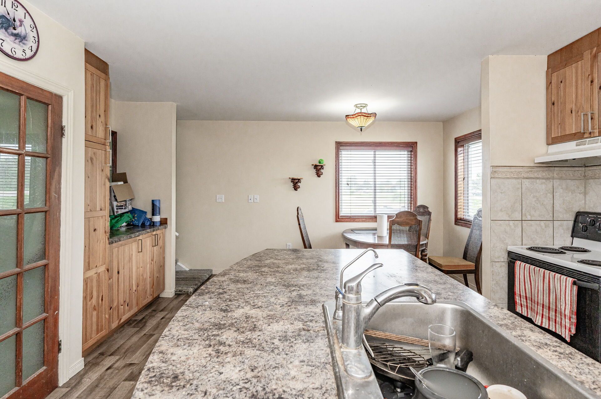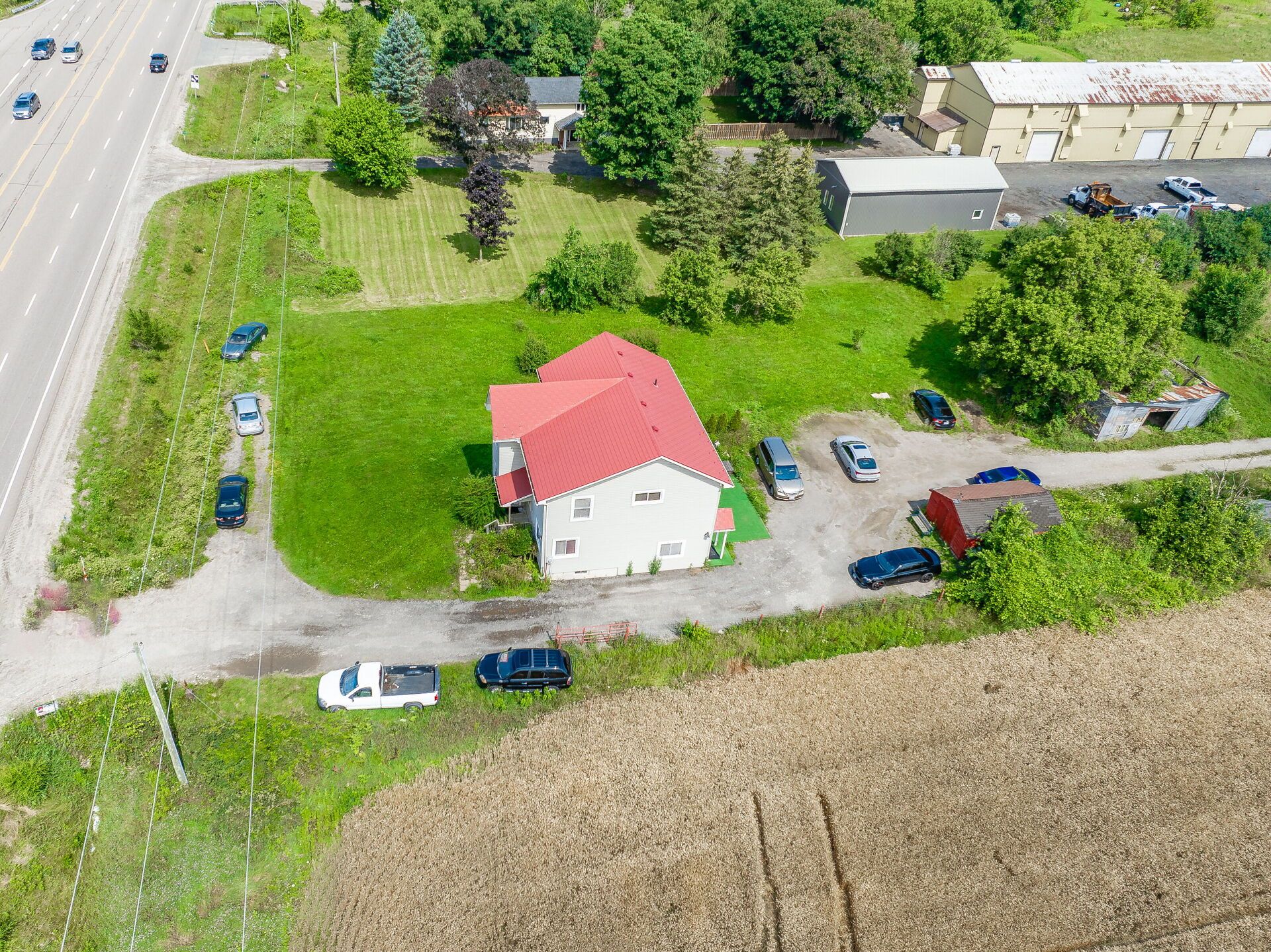 Located on highway 6 with quick access to highways 401 and 403, this property offers an excellent commuter location just minutes from burlington and waterdown, with convenient access to amenities and services. Set on approximately 3 acres, the property provides ample space for farming and a variety of agricultural opportunities. The home features 4 bedrooms, including one bedroom on the main floor, along with two full bathrooms and an additional 4-piece bathroom for added convenience. The laundry room is currently located in the basement, while the main-floor laundry area may be converted into an additional bedroom if desired. The spacious main-floor primary bedroom extends from the front to the back of the home, offering a private and comfortable retreat. The large kitchen features an island and generous workspace, ideal for both everyday living and entertaining. New flooring installed in 2022 adds a fresh, updated feel throughout. The family room is filled with natural light, creating a warm and inviting living space.