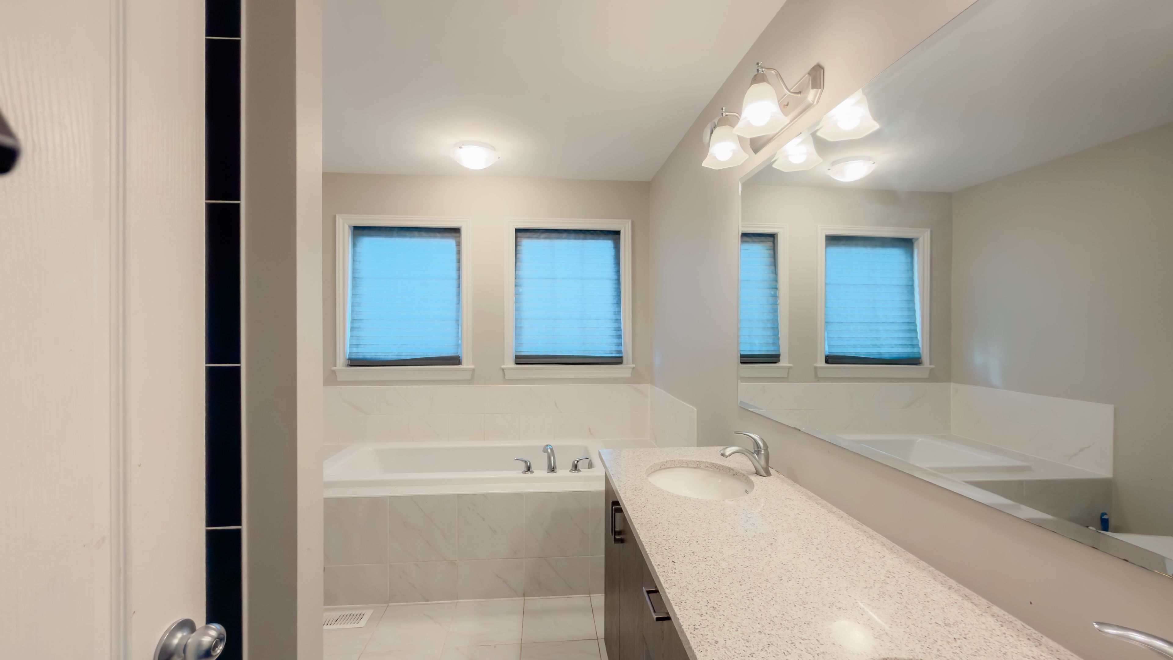 • Chef-inspired kitchen with quartz countertops and large island for easy hosting.