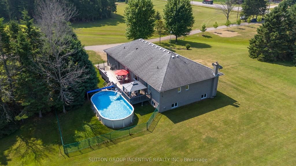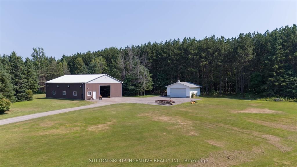 Your dream property awaits! This rare large open concept raised bungalow, surrounded by over 49 acres of winding, groomed trails, forests, open fields and peaceful, quiet nature is waiting for you! A sweeping estate style driveway expands to this stunning property offering a business owner or contractors dream 60' x 45' shop w/ 60 amp electrical service, poured concrete floor, upgraded led lights and much more! In addition to the 2 car attached garage, enjoy an additional separate 24' x 24' detached shop/garage. With 3 main floor walk outs and tons of natural light, this home offers a very open concept layout, w/ 9' ceilings! Large white kitchen w/island, and more! Upgraded attic insulation r50 in 2023, bonus: main floor features an oversized mud room with laundry, inside entry garage access w/ an additional walk-out to the deck. New underground power lines! Garage includes a separate entrance to basement (ideal for an in-law suite!) basement is completely open concept with a stunning large gas fireplace (yes home has natural gas!) large above grade windows, office area, mechanical room w/ extra storage & cold room, additional washroom, including a private separate entrance from garage! Exterior features 8 new trees planted along driveway, a private fenced rear area for children or pets and a large heated above ground pool (w/new pool heater) and deck! A contractor or business owners dream surrounded by peaceful protected forests and tranquil nature just minutes from great shopping, the white sandy beaches of wasaga & tiny, skiing, vetta spa, and 20 minutes to barrie!