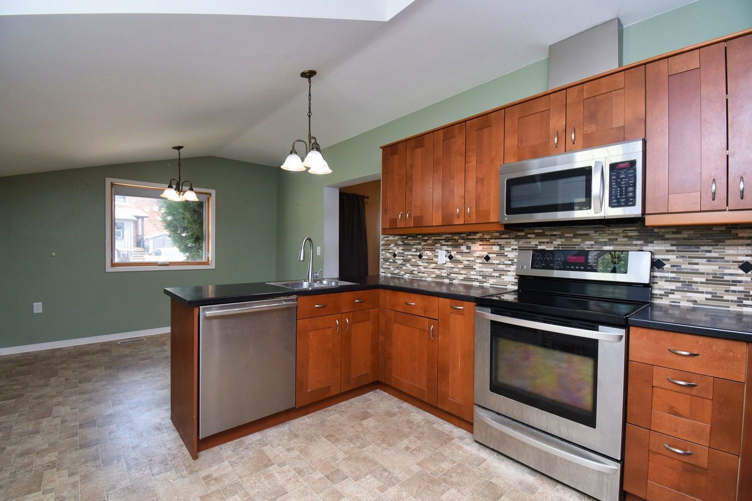 • Vaulted ceiling in the family room adds volume and natural light.