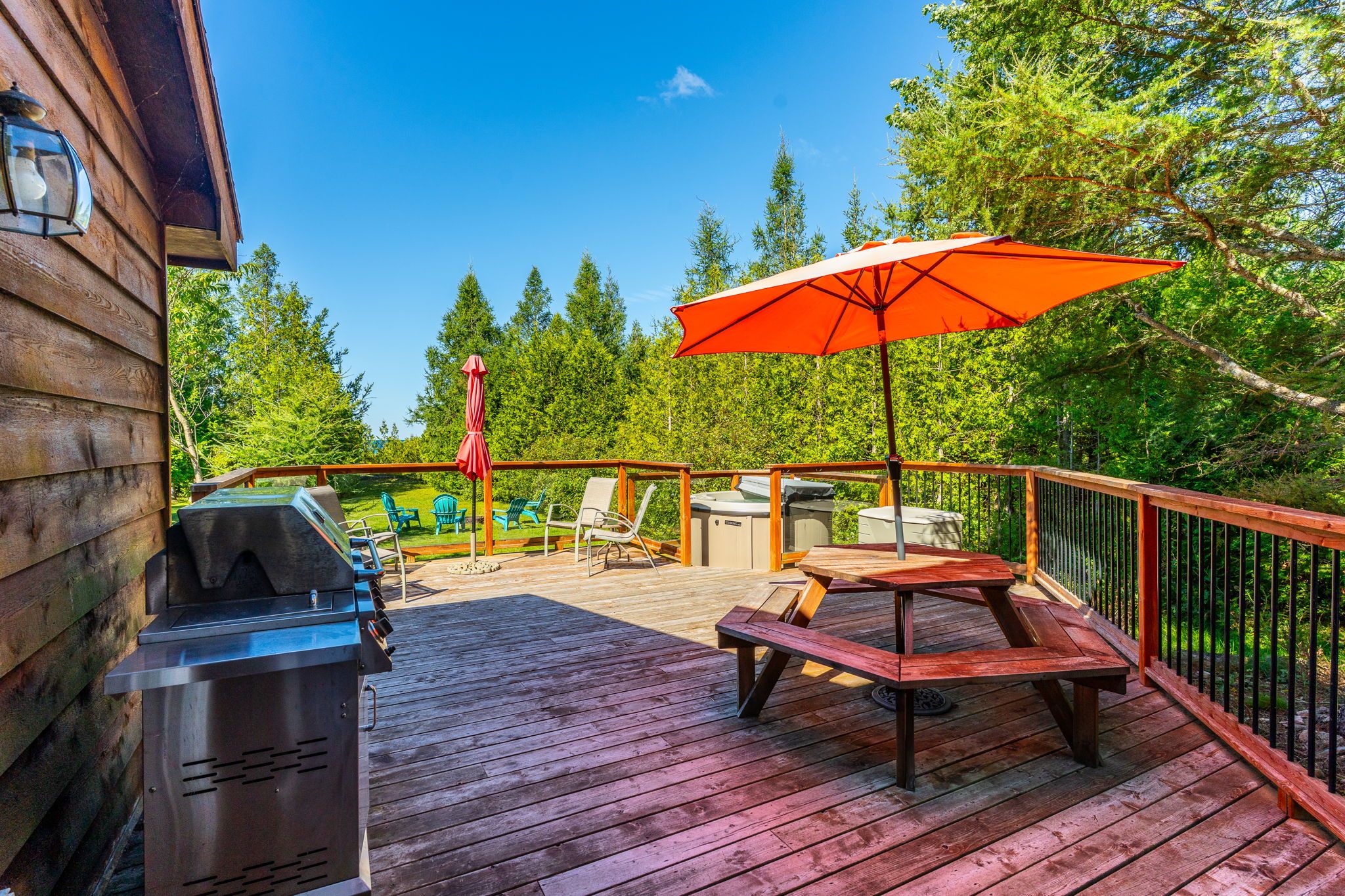 • Tiered deck with hot tub, perfect for relaxing under the stars.