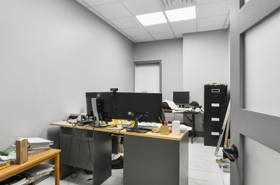 • Finished office space with additional mezzanine storage for versatility.