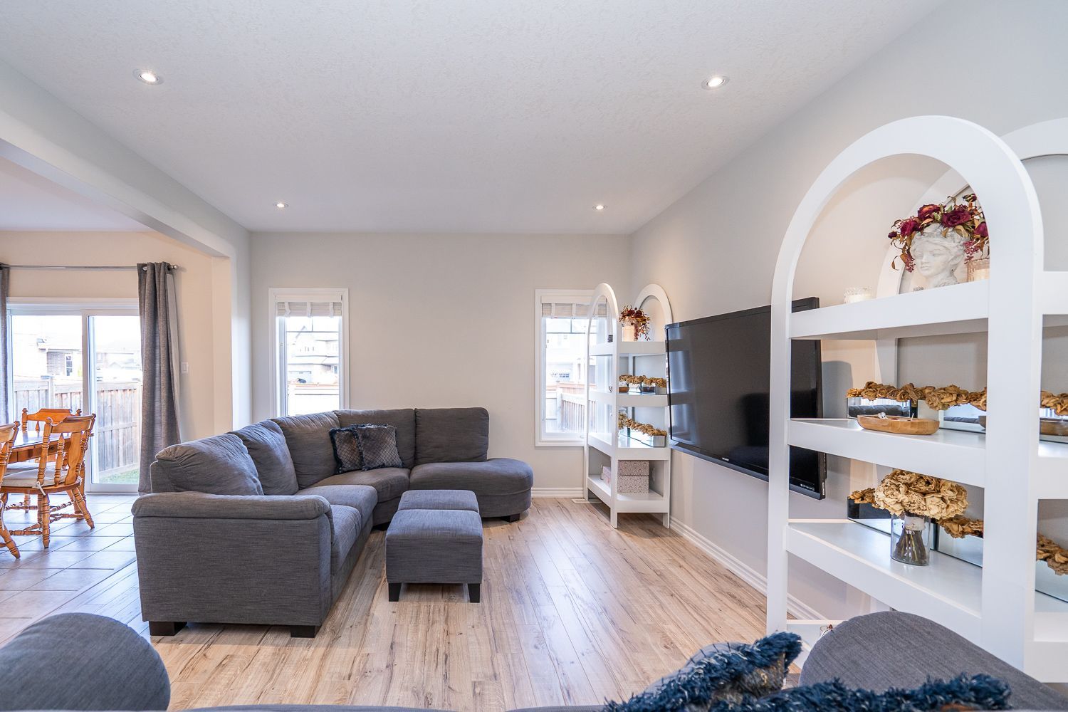 4 bed, 3 bath, nearly 2,500 sq ft home with 9 ft ceilings, built in 2017.......... Bright, open concept main floor is highlighted by large kitchen with upgraded cabinetry and loads of countertop space.......... Living room has pot lights and is combined with dining room to create a nice large space for gathering.......... Cozy separate family room, and main floor laundry with man-door to garage add to the family functional layout.......... Upgraded wood staircase with wrought iron pickets leads to 2nd floor which features 4 bedrooms, including huge master with w/i closet and 5 pc ensuite.......... Exterior features include: 4 car driveway with no sidewalk, covered front porch, fully fenced backyard, and storage room w/ hydro built into garage (still has room to park a car).......... Basement has rough-in bath.......... Short walk to park, rec centre with 2 full size rinks, indoor soccer pitch and full gym.......... 2/3 min drive to honda of canada mfg.......... House is nicely situated in such a way, that although there are surrounding homes, there is also plenty of green space/open sky in view at both the front and rear.......... Click "view listing on realtor website" for more info.