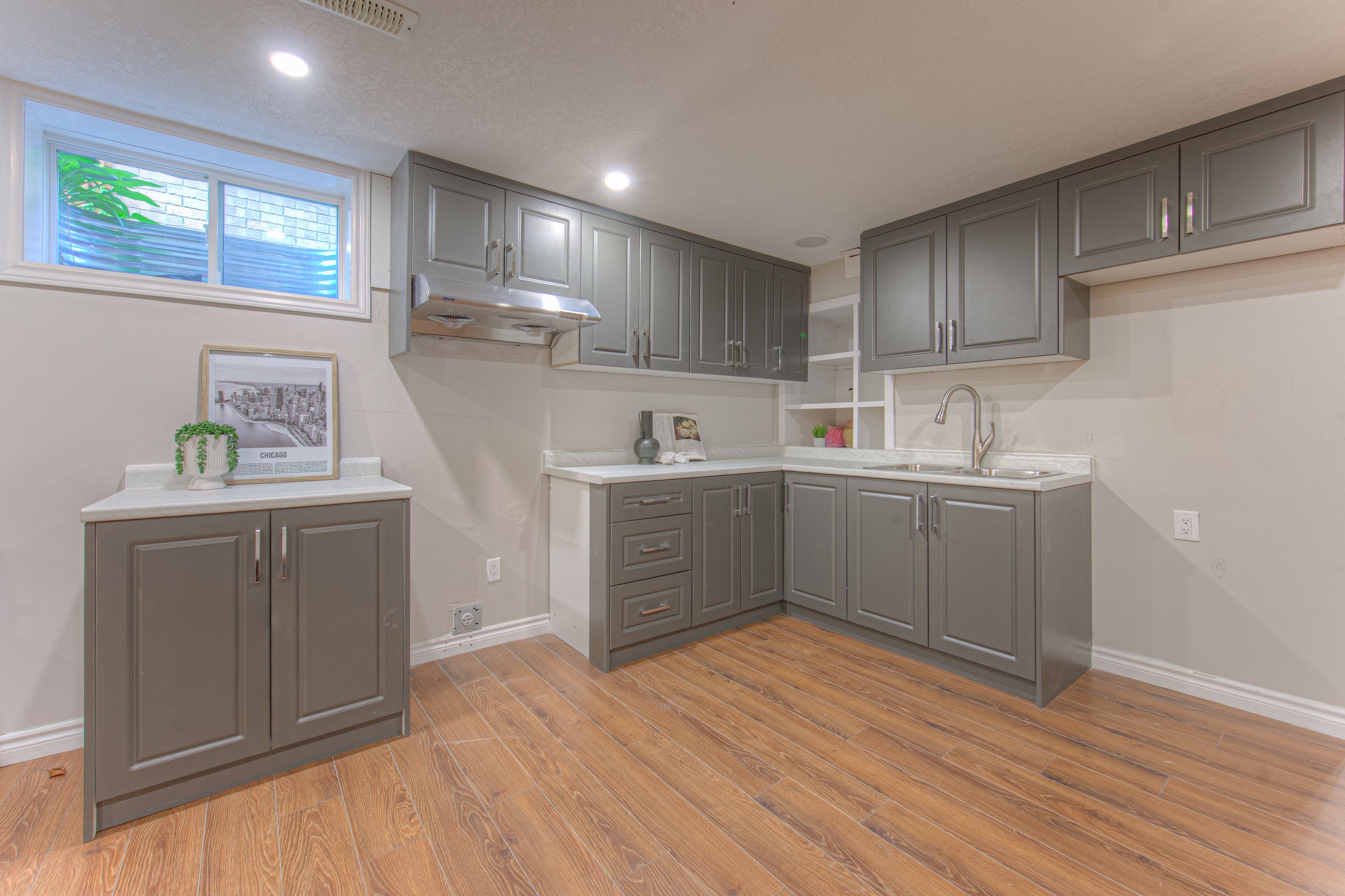 Rare opportunity in kitchener's desirable chicopee/ lackner woods neighborhood! This stunning 5-bedroom, 3. 5-bathroom detached home offers over 2,200+ sqft with an exceptional dual-kitchen layout perfect for multi-generational living or rental income potential. The main floor features an open-concept design with gourmet chef's kitchen boasting oversized island, stone counters, dark modern cabinets, and stainless steel appliances, plus a covered deck overlooking the professionally landscaped, fully-fenced backyard. Upstairs offers three generous bedrooms including a luxurious master suite with walk-in closet and spa-like ensuite. The fully finished basement is a showstopper with its complete secondary kitchen, large family room, two additional bedrooms, 3-piece bathroom with walk-in shower, and abundant storage including a cold room. Located minutes from highway 401 and fairview mall with nearby schools and walking trails, this property also includes a double-car garage plus two additional driveway spaces. This unique home combines luxury, functionality, and prime location - truly a must-see property that offers incredible versatility for modern family living!