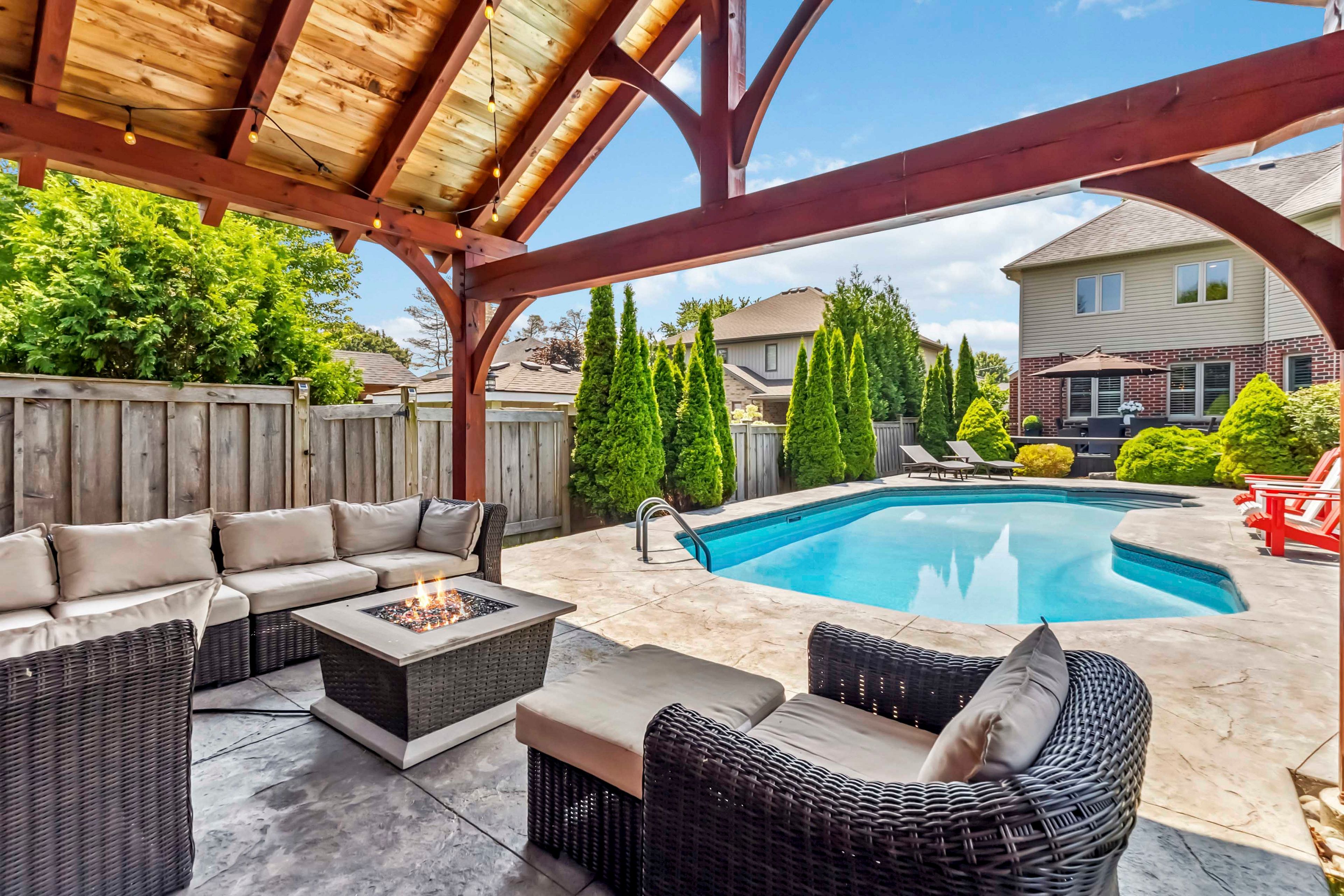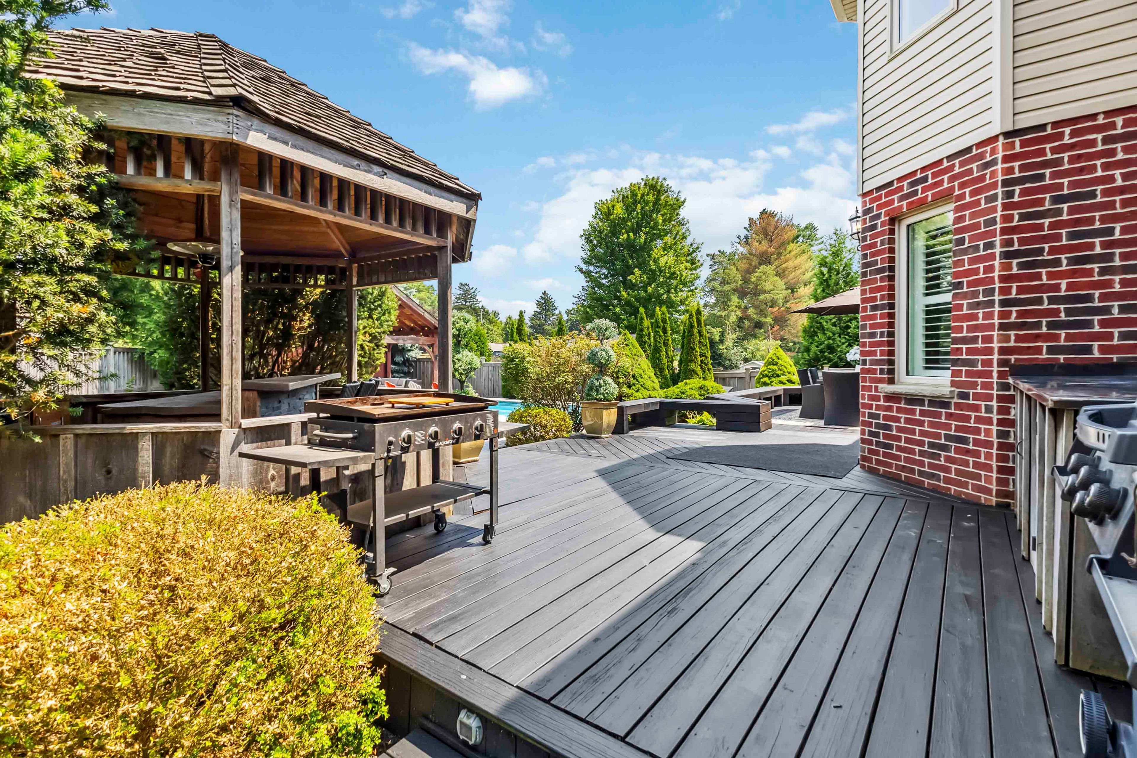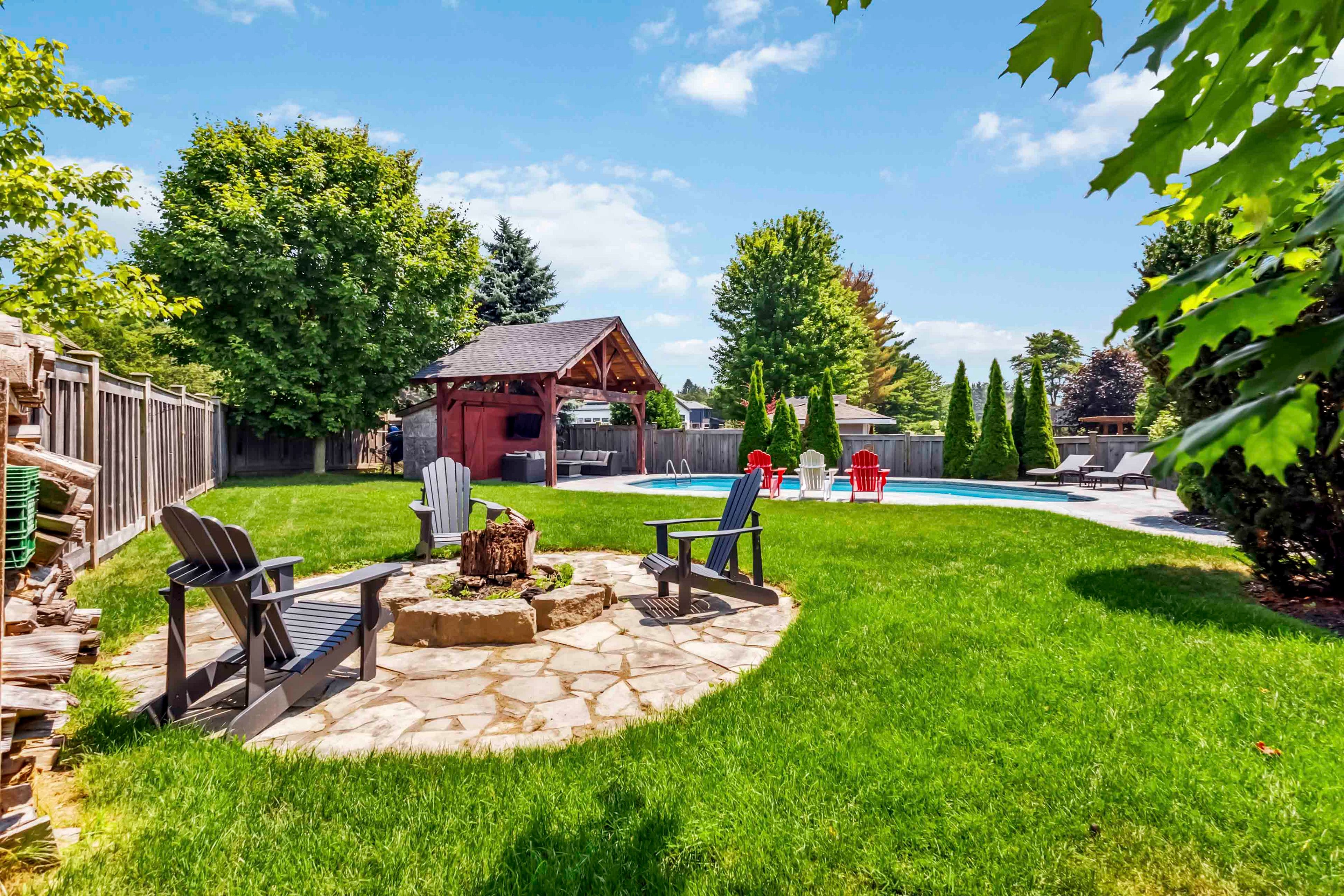 Welcome to this beautifully maintained 2-storey home offering 4+1 spacious bedrooms and 3. 5 bathroomsperfect for a growing family or those who love to entertain. Nestled on a picturesque lot with mature trees and beautifully landscaped gardens, this home combines comfort, functionality, and resort-style living. The inviting open-concept main level features a custom kitchen with a stunning tile backsplash, a large walk-in pantry, and modern finishes including a brand new quartz counter top that will inspire your inner chef. Some rooms and lower level have been freshly painted. A versatile den or office on the main floor is currently set up as a hair salon but can easily be transformed to suit your needs. This home comes equipped with smart lights interior and exterior. Upstairs, the spacious principal bedroom is a true retreat with a walk-in closet and a luxurious ensuite featuring a soaker tub and tiled glass shower. The fully finished basement offers even more living space with a large family room, a full bathroom, and an additional bedroomperfect for guests or a teen suite. Outside, the backyard oasis awaits. Enjoy summer days by the inground pool with stamped concrete surround, relax in the poolside cabana, or entertain at the outdoor bar under the gazebo, just off the newly stained deck. The front lawn manual lawn sprinklers can make keeping your front grass beautiful all summer and a sandpoint that provides watering to the backyard water bibs. A 3-car garage provides ample space for vehicles, storage, or a workshop. This home is the perfect blend of style, space, and serenitydont miss your opportunity to call it your own!