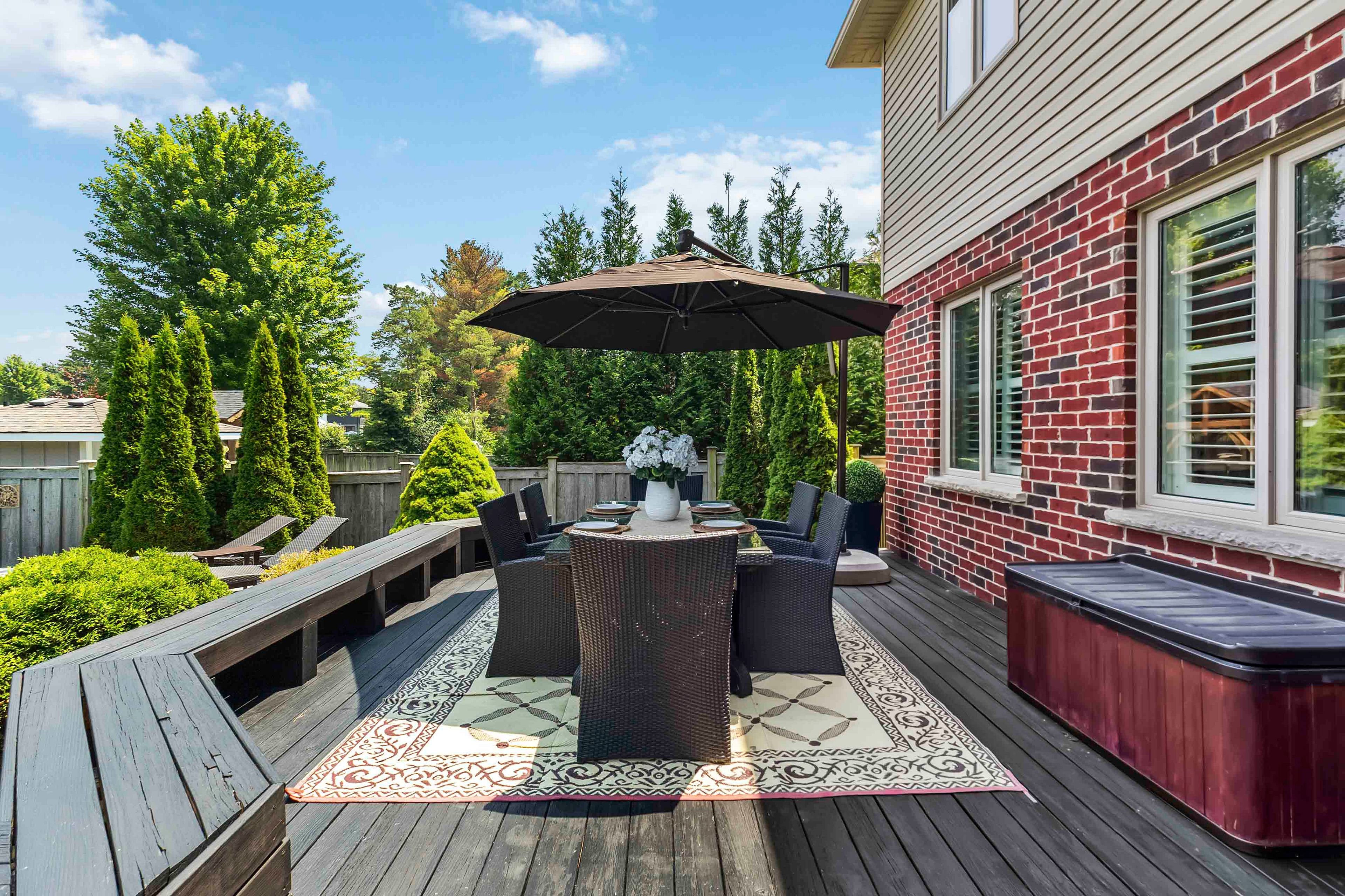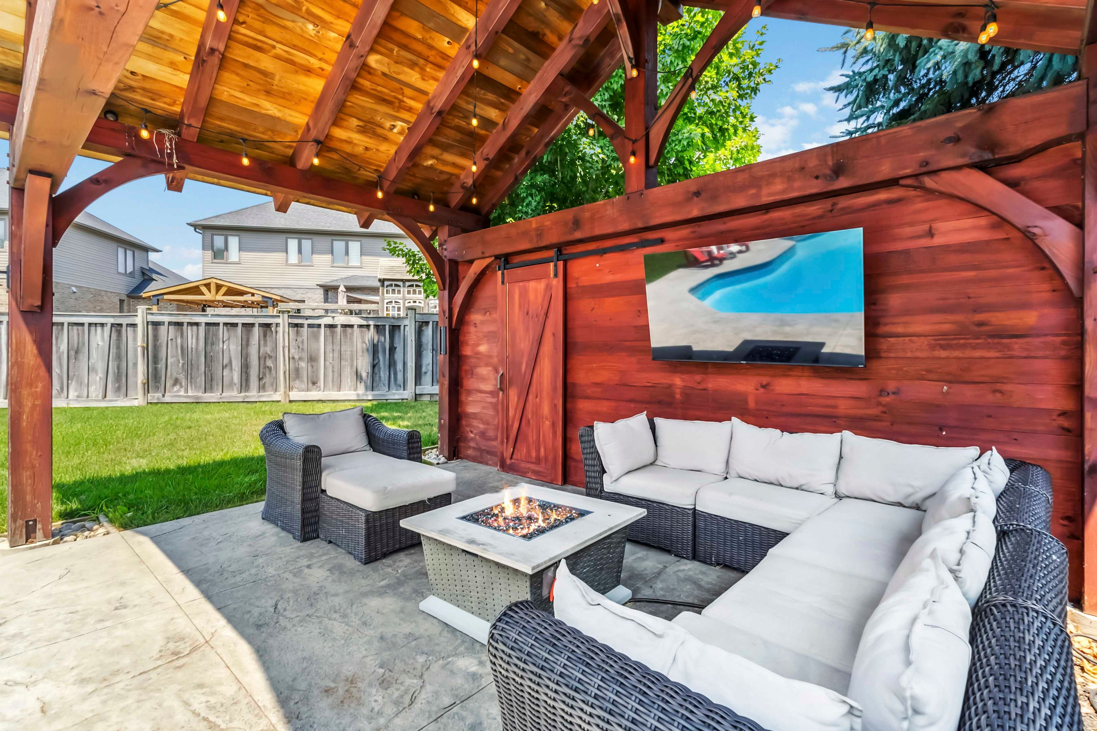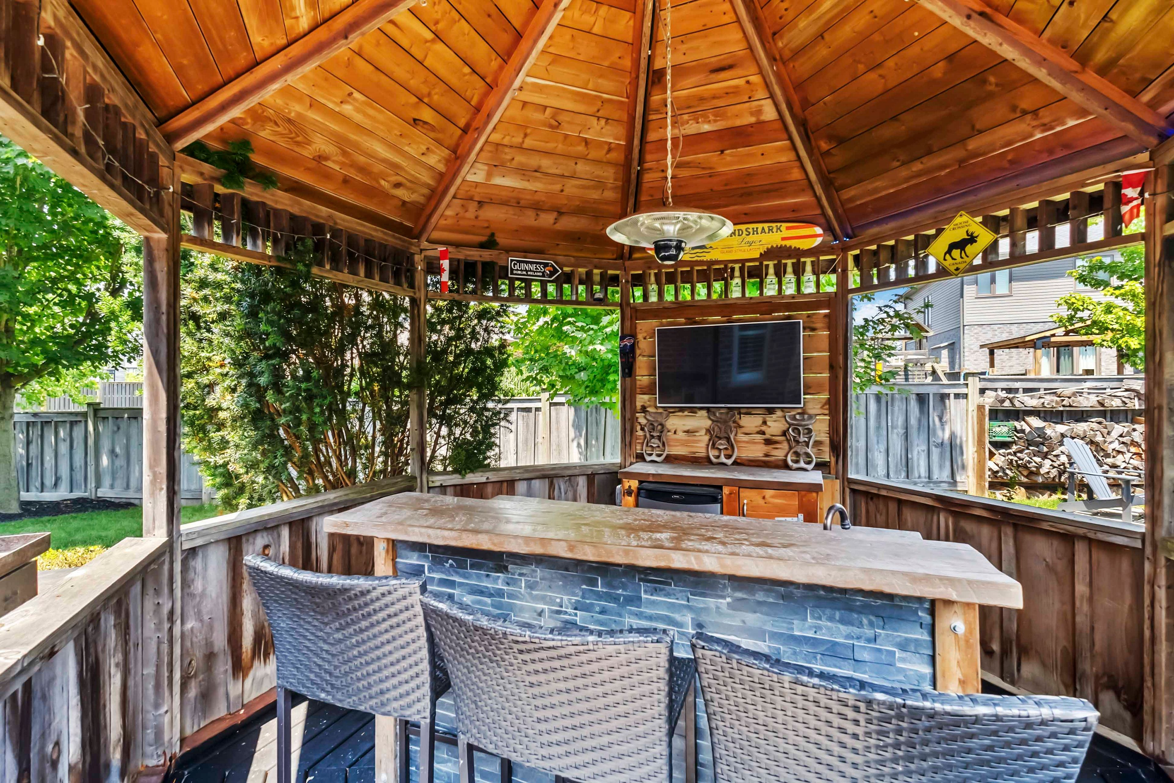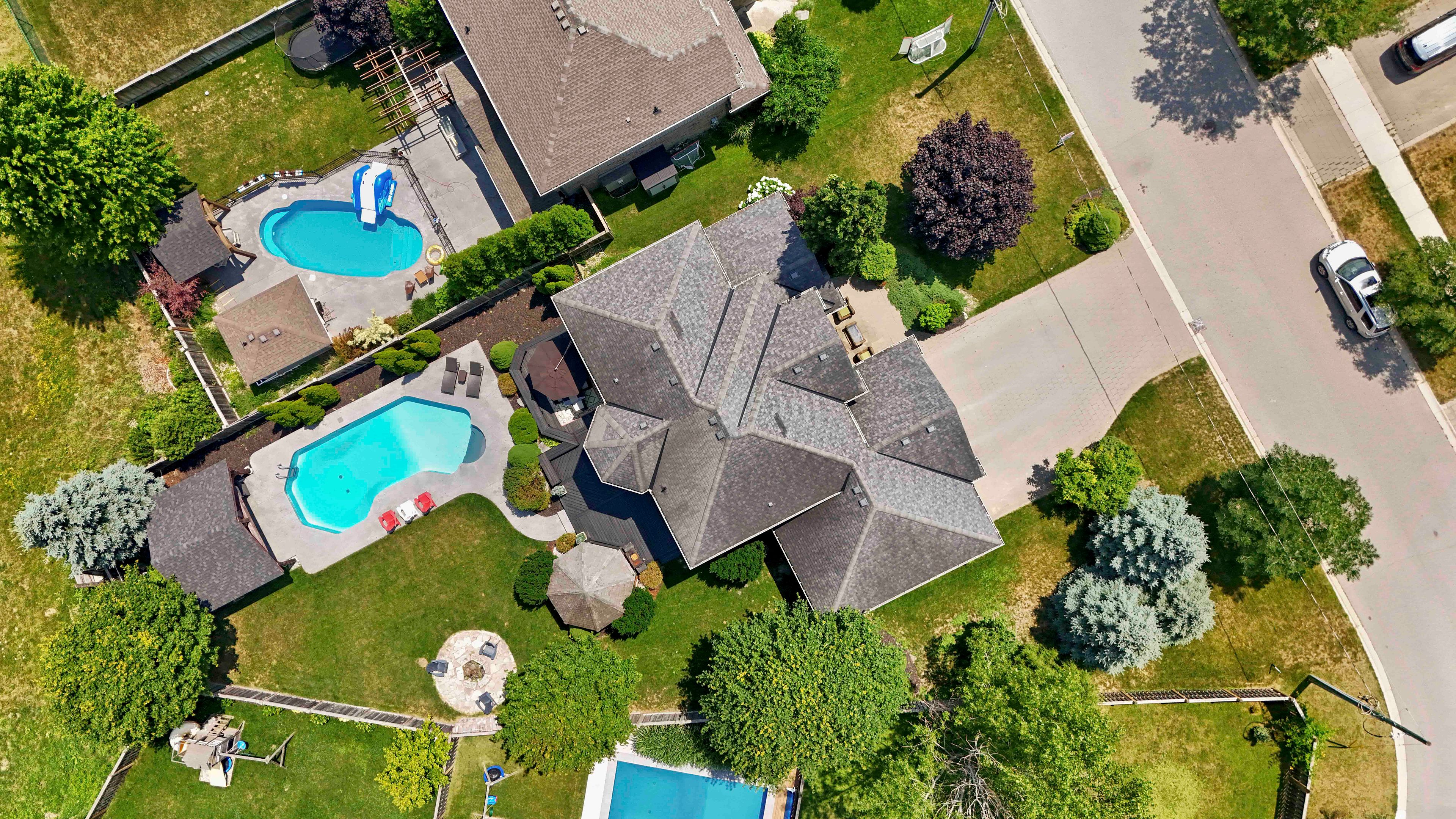 Welcome to this beautifully maintained 2-storey home offering 4+1 spacious bedrooms and 3. 5 bathroomsperfect for a growing family or those who love to entertain. Nestled on a picturesque lot with mature trees and beautifully landscaped gardens, this home combines comfort, functionality, and resort-style living. The inviting open-concept main level features a custom kitchen with a stunning tile backsplash, a large walk-in pantry, and modern finishes including a brand new quartz counter top that will inspire your inner chef. Some rooms and lower level have been freshly painted. A versatile den or office on the main floor is currently set up as a hair salon but can easily be transformed to suit your needs. This home comes equipped with smart lights interior and exterior. Upstairs, the spacious principal bedroom is a true retreat with a walk-in closet and a luxurious ensuite featuring a soaker tub and tiled glass shower. The fully finished basement offers even more living space with a large family room, a full bathroom, and an additional bedroomperfect for guests or a teen suite. Outside, the backyard oasis awaits. Enjoy summer days by the inground pool with stamped concrete surround, relax in the poolside cabana, or entertain at the outdoor bar under the gazebo, just off the newly stained deck. The front lawn manual lawn sprinklers can make keeping your front grass beautiful all summer and a sandpoint that provides watering to the backyard water bibs. A 3-car garage provides ample space for vehicles, storage, or a workshop. This home is the perfect blend of style, space, and serenitydont miss your opportunity to call it your own!