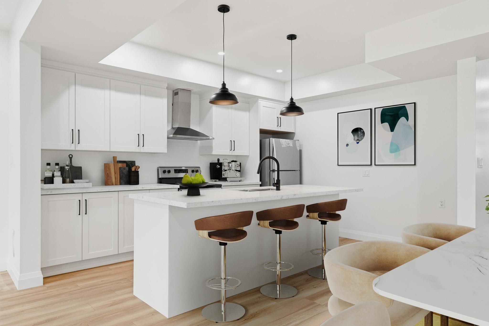 • Main unit features 3 bedrooms, 3 bathrooms, and upscale finishes.
