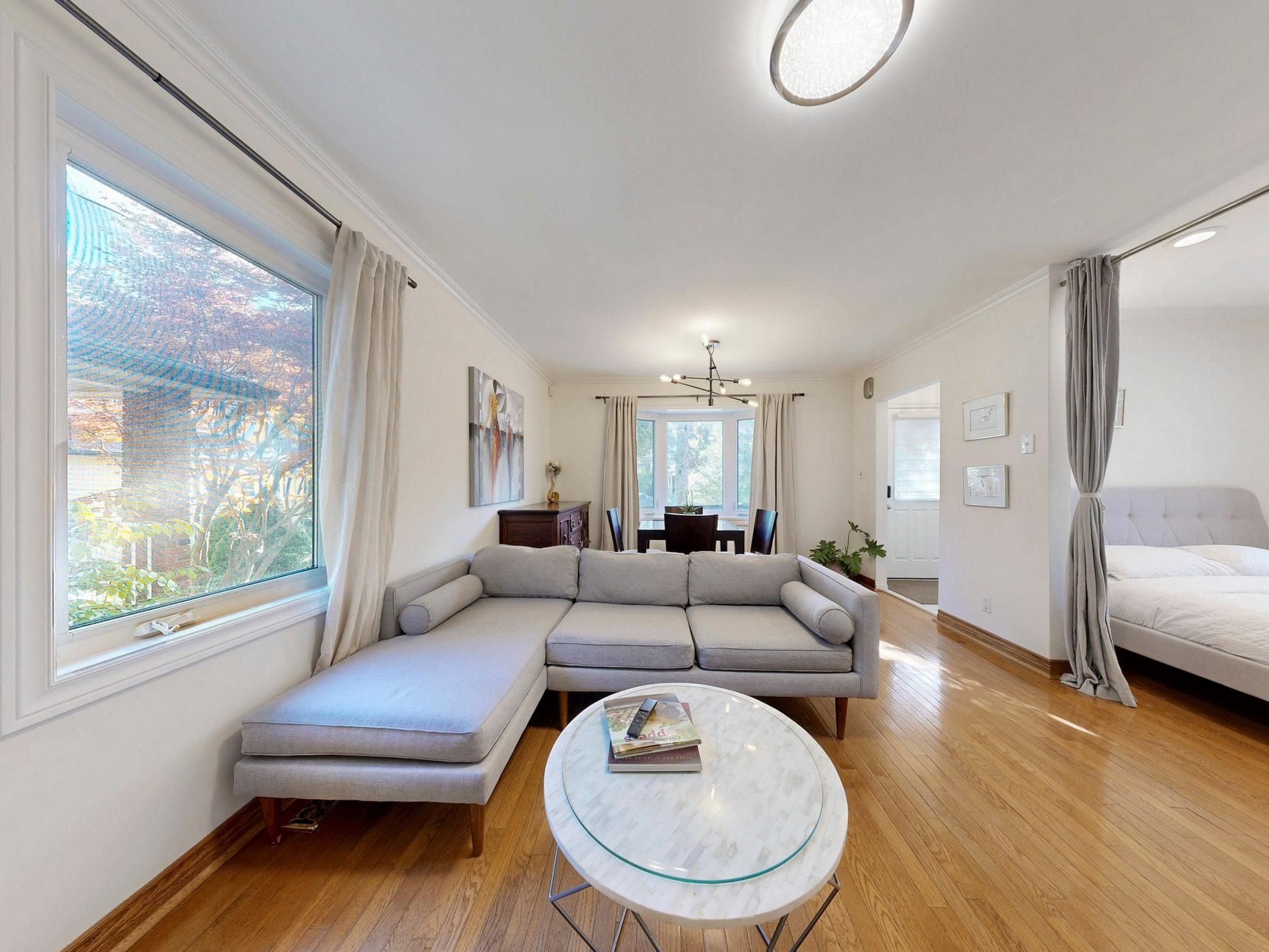 • Bright living space with hardwood floors and versatile room options.