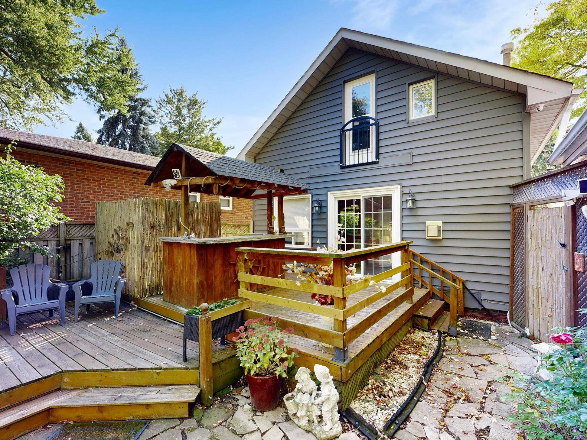 Welcome to this warm and beautifully renovated bungalow located in the prestigious bluffs community, within the highly sought-after chine drive school district - one of toronto's most desirable family neighbourhoods. This area is celebrated for its tree-lined streets, sense of community, and proximity to the lake, walking trails, and top-rated schools. Step inside to discover a bright, sun-filled living space with hardwood floors. The versatile main living area can be arranged as living plus dining, or living plus a den with a large window - currently set up as a charming extra bedroom/den filled with natural light. The modern kitchen features granite countertops, upgraded cabinetry, and a walkout to the private backyard oasis complete with a pond, tiki bar, and gazebo - perfect for outdoor entertaining or peaceful evenings under the stars. The primary bedroom overlooks the beautifully landscaped backyard, creating a serene and relaxing atmosphere every morning. The finished lower level with a side entrance includes a spacious recreation room, an additional bedroom, and a modern 3-piece bath - ideal for guests or a home office. Lovingly maintained and filled with warmth, this home truly combines charm, functionality, and location. With a large powered garage, just steps to the bluffs, parks, ttc, go train, cafés, and great schools, and only 20 minutes to downtown toronto, this property offers the perfect balance of urban convenience and coastal tranquility.