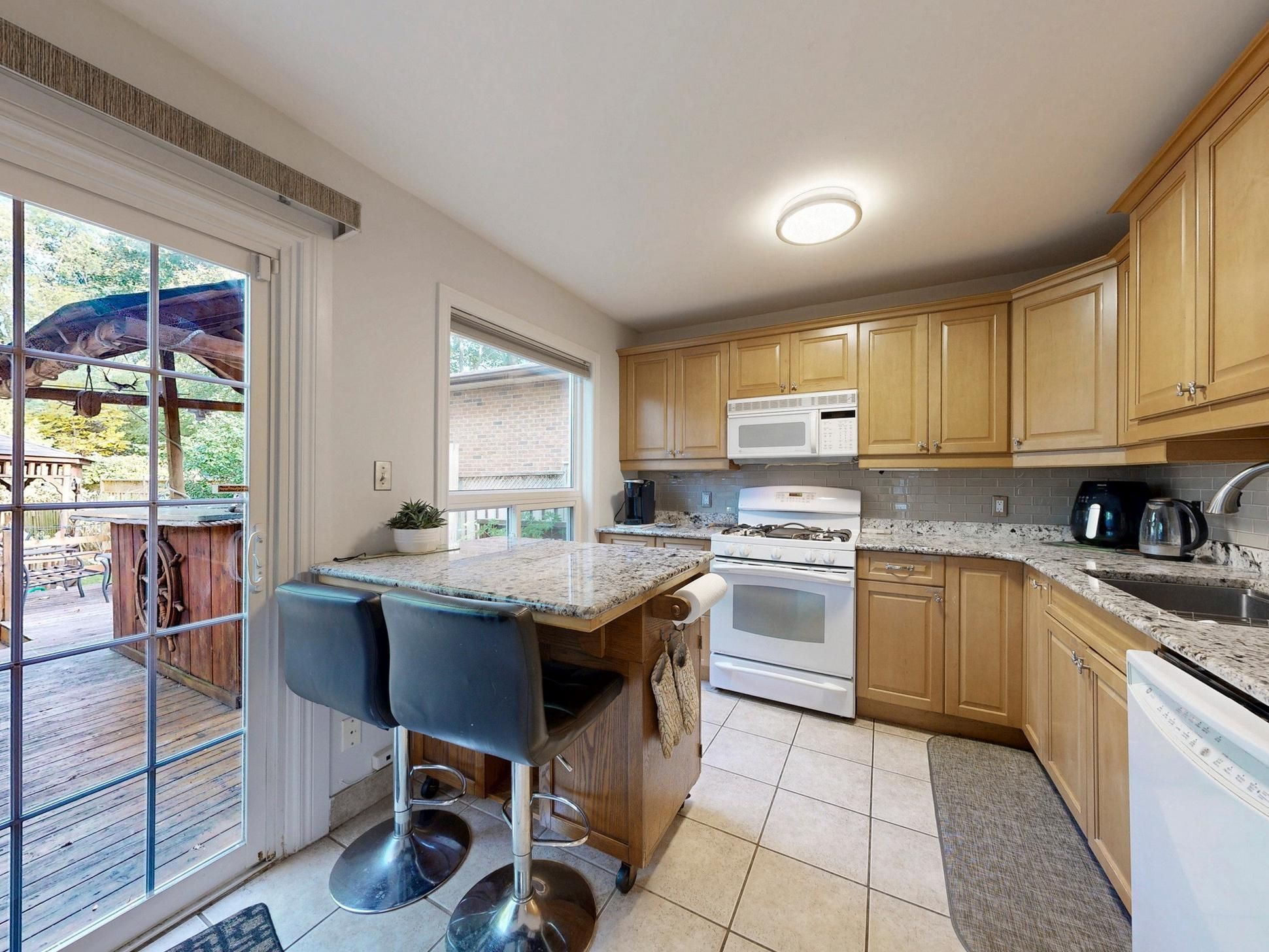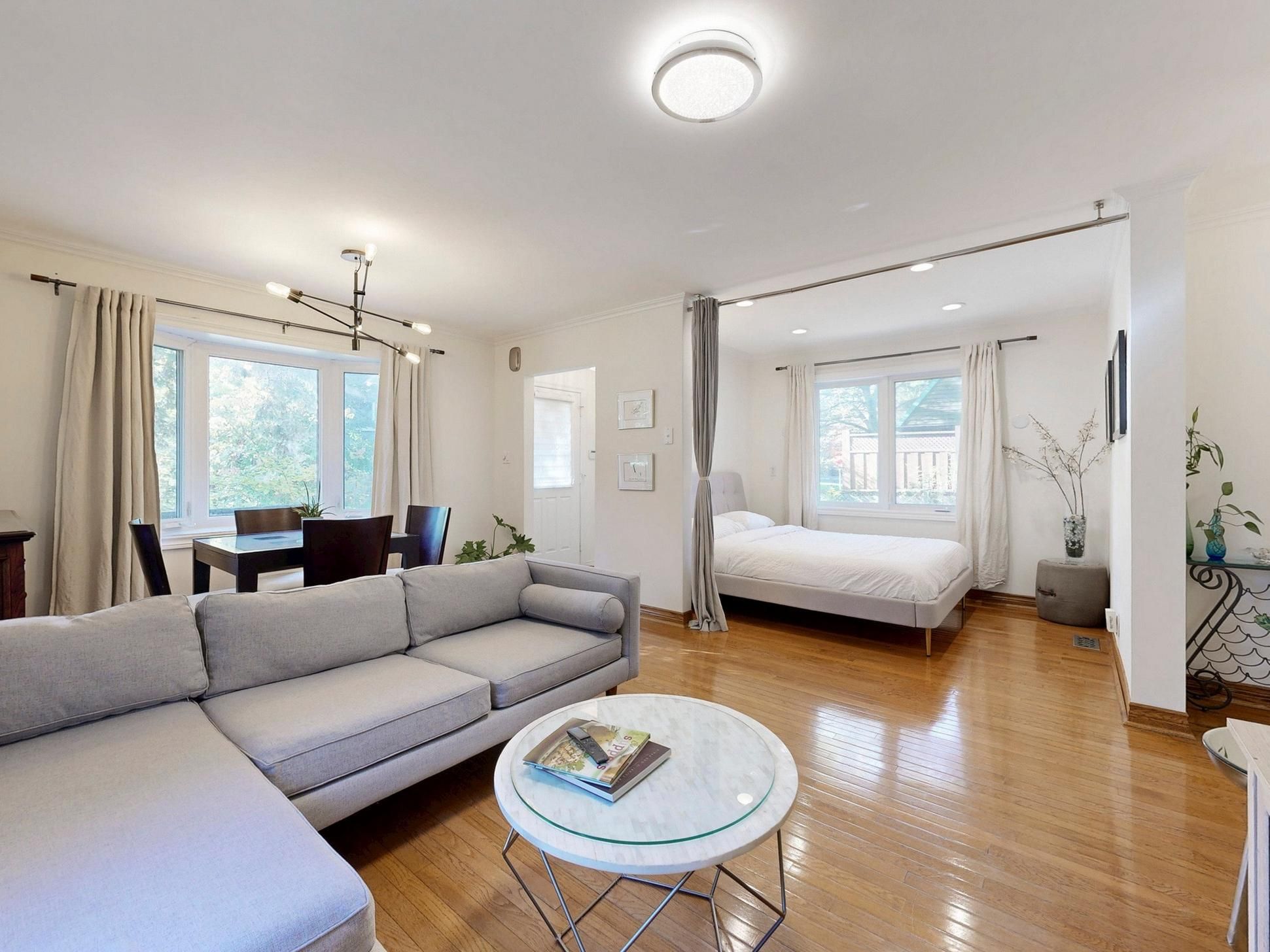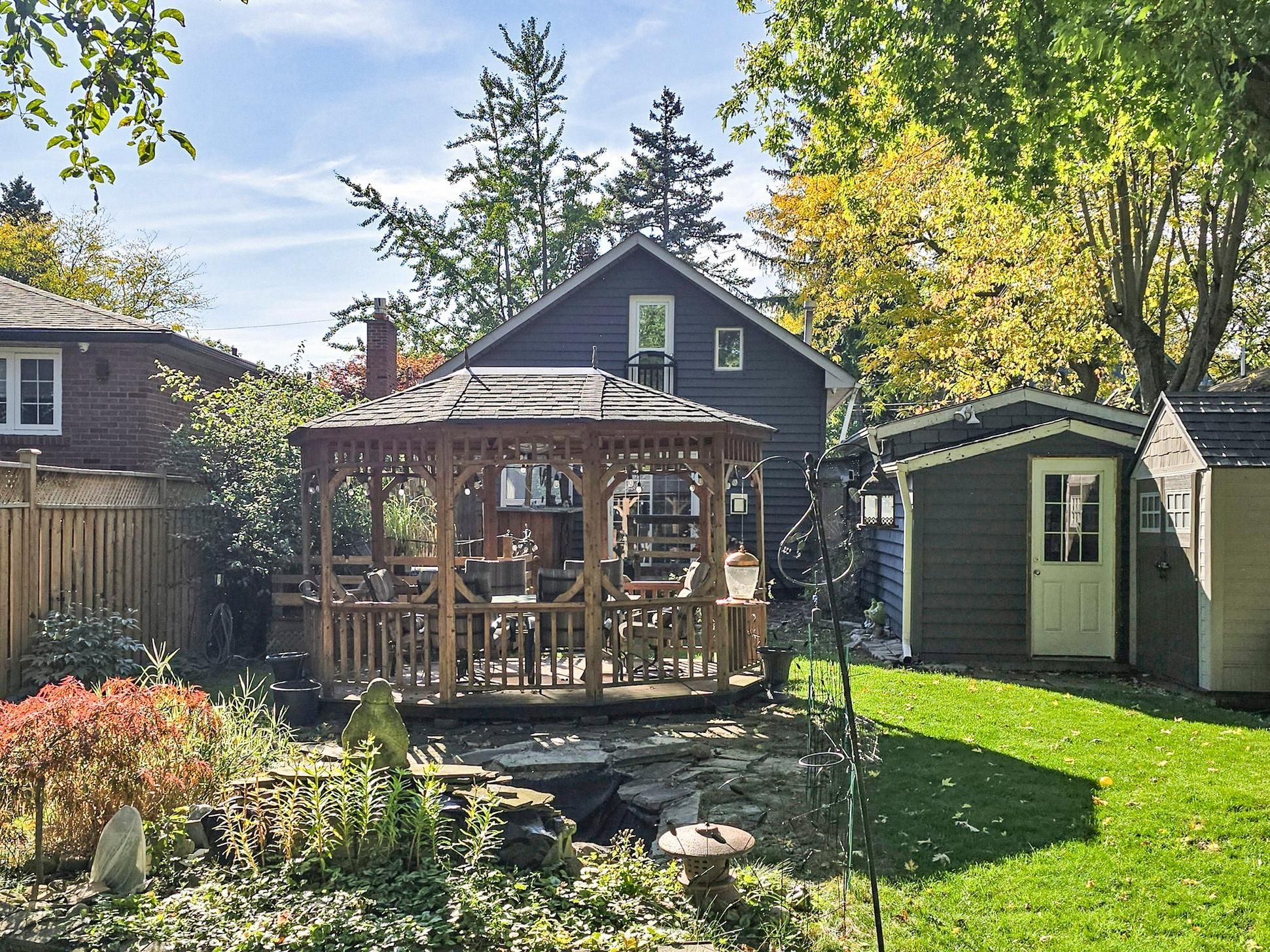 Welcome to this warm and beautifully renovated bungalow located in the prestigious bluffs community, within the highly sought-after chine drive school district - one of toronto's most desirable family neighbourhoods. This area is celebrated for its tree-lined streets, sense of community, and proximity to the lake, walking trails, and top-rated schools. Step inside to discover a bright, sun-filled living space with hardwood floors. The versatile main living area can be arranged as living plus dining, or living plus a den with a large window - currently set up as a charming extra bedroom/den filled with natural light. The modern kitchen features granite countertops, upgraded cabinetry, and a walkout to the private backyard oasis complete with a pond, tiki bar, and gazebo - perfect for outdoor entertaining or peaceful evenings under the stars. The primary bedroom overlooks the beautifully landscaped backyard, creating a serene and relaxing atmosphere every morning. The finished lower level with a side entrance includes a spacious recreation room, an additional bedroom, and a modern 3-piece bath - ideal for guests or a home office. Lovingly maintained and filled with warmth, this home truly combines charm, functionality, and location. With a large powered garage, just steps to the bluffs, parks, ttc, go train, cafés, and great schools, and only 20 minutes to downtown toronto, this property offers the perfect balance of urban convenience and coastal tranquility. Property can be leased fully furnished for $4200 per month.
