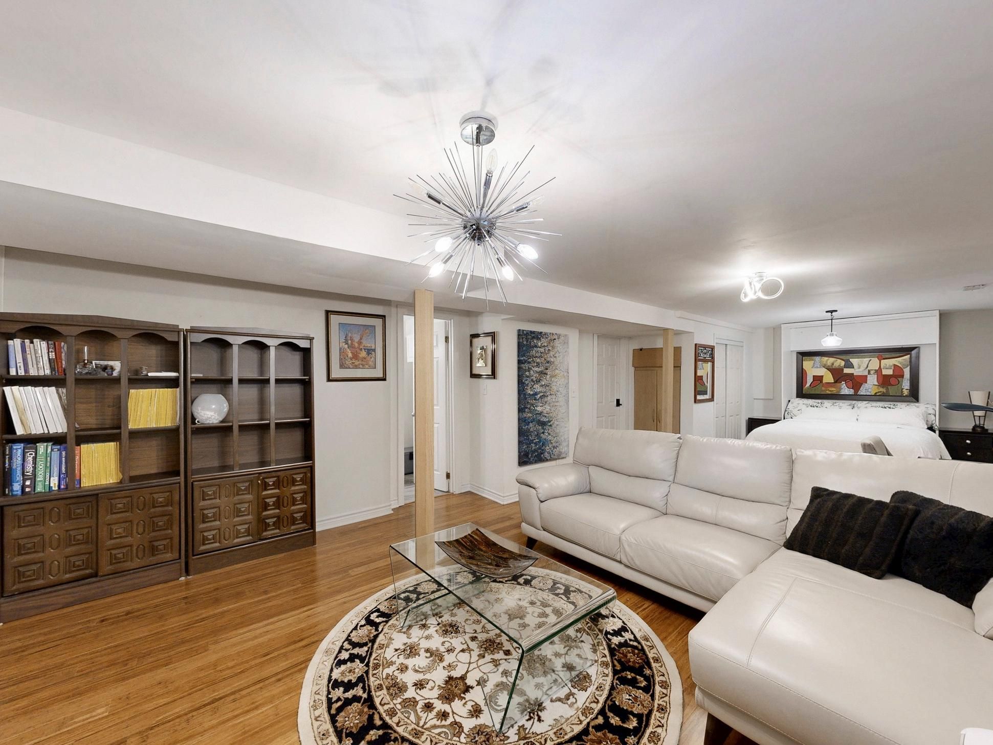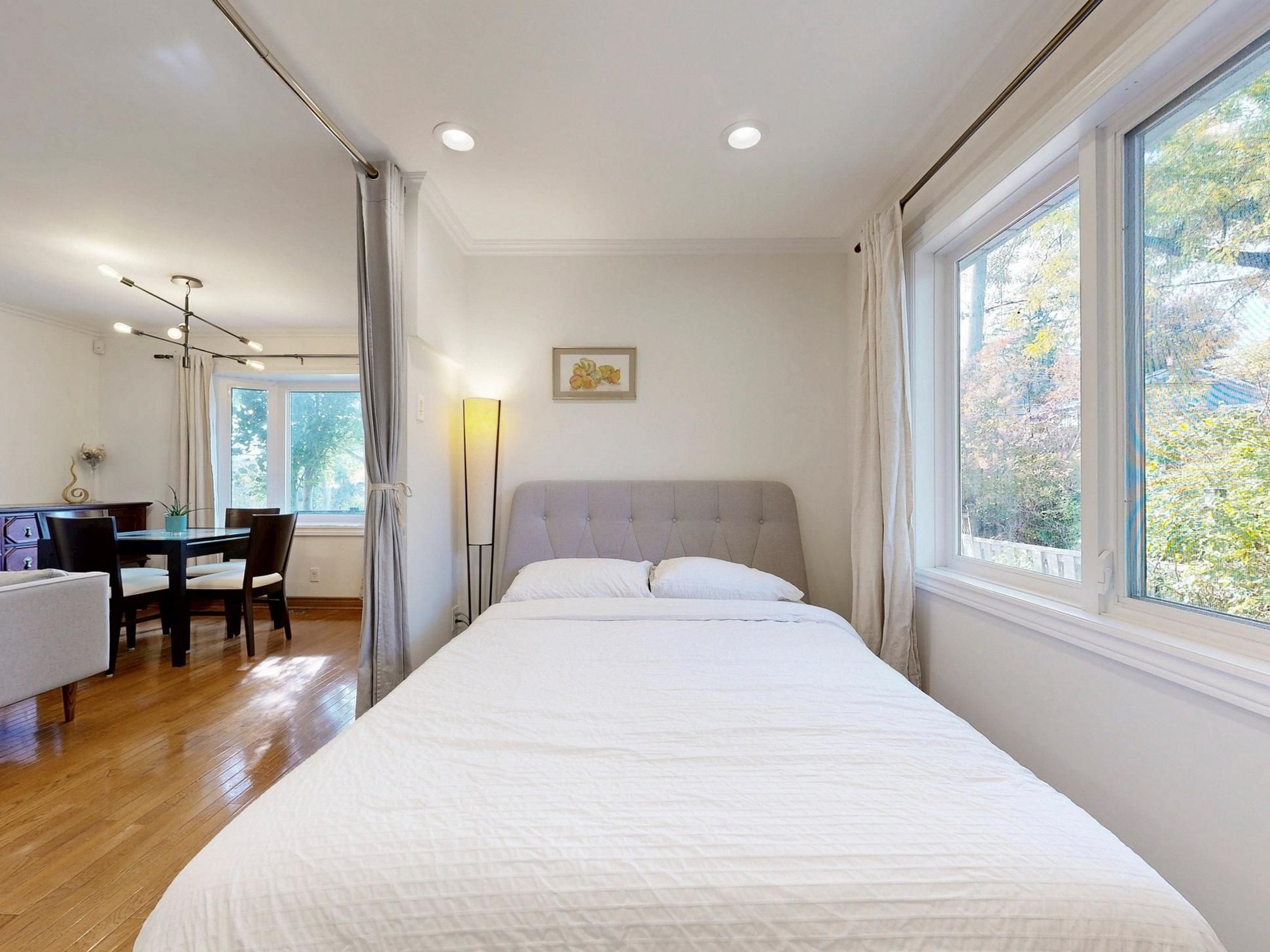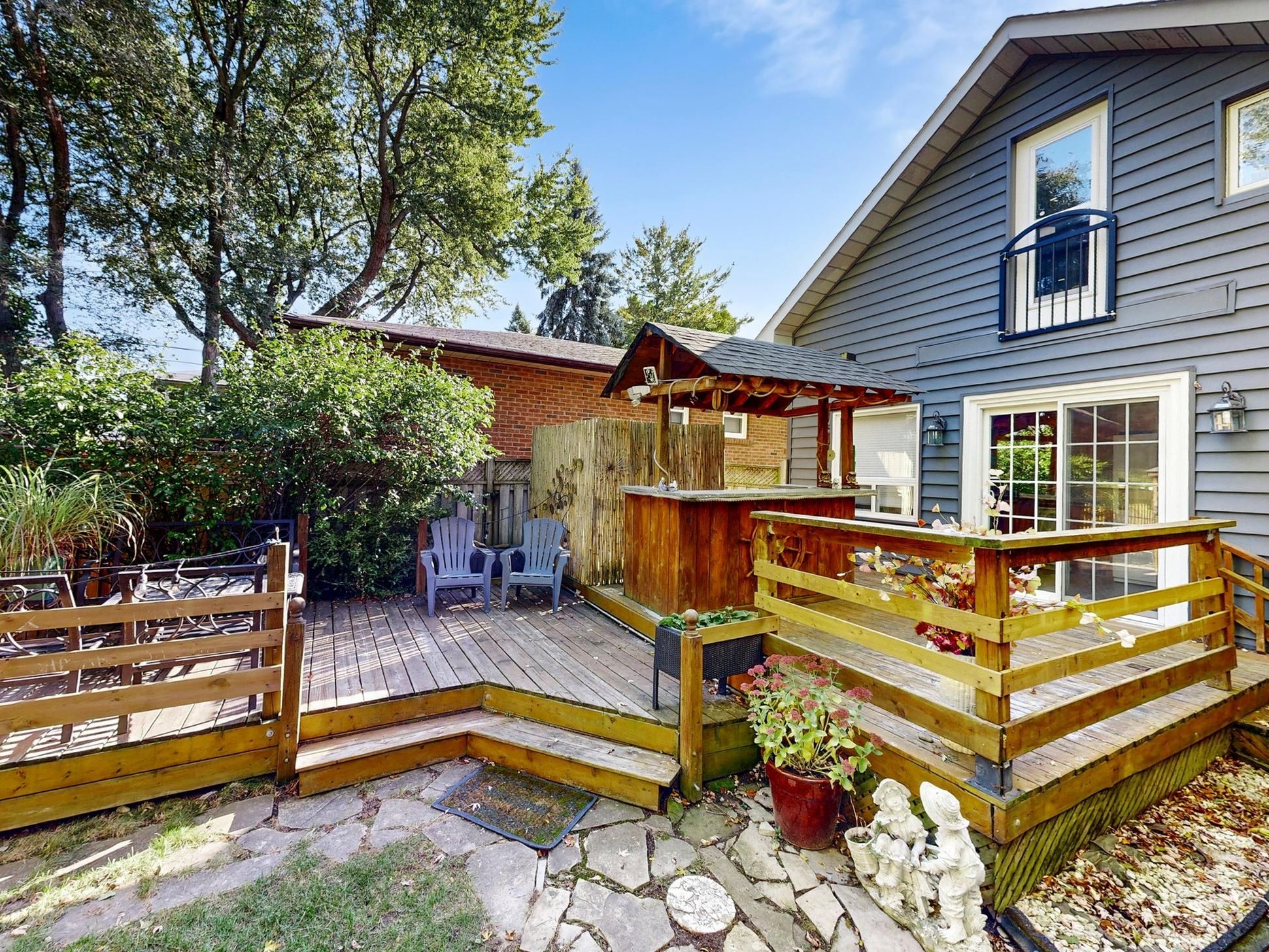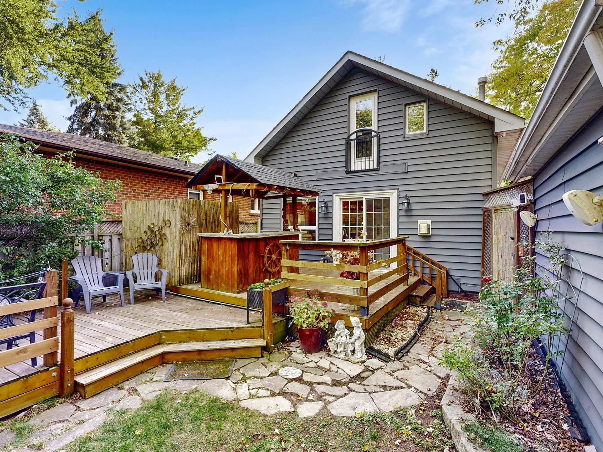 Welcome to this warm and beautifully renovated bungalow located in the prestigious bluffs community, within the highly sought-after chine drive school district - one of toronto's most desirable family neighbourhoods. This area is celebrated for its tree-lined streets, sense of community, and proximity to the lake, walking trails, and top-rated schools. Step inside to discover a bright, sun-filled living space with hardwood floors. The versatile main living area can be arranged as living plus dining, or living plus a den with a large window - currently set up as a charming extra bedroom/den filled with natural light. The modern kitchen features granite countertops, upgraded cabinetry, and a walkout to the private backyard oasis complete with a pond, tiki bar, and gazebo - perfect for outdoor entertaining or peaceful evenings under the stars. The primary bedroom overlooks the beautifully landscaped backyard, creating a serene and relaxing atmosphere every morning. The finished lower level with a side entrance includes a spacious recreation room, an additional bedroom, and a modern 3-piece bath - ideal for guests or a home office. Lovingly maintained and filled with warmth, this home truly combines charm, functionality, and location. With a large powered garage, just steps to the bluffs, parks, ttc, go train, cafés, and great schools, and only 20 minutes to downtown toronto, this property offers the perfect balance of urban convenience and coastal tranquility. Property can be leased fully furnished for $4200 per month.