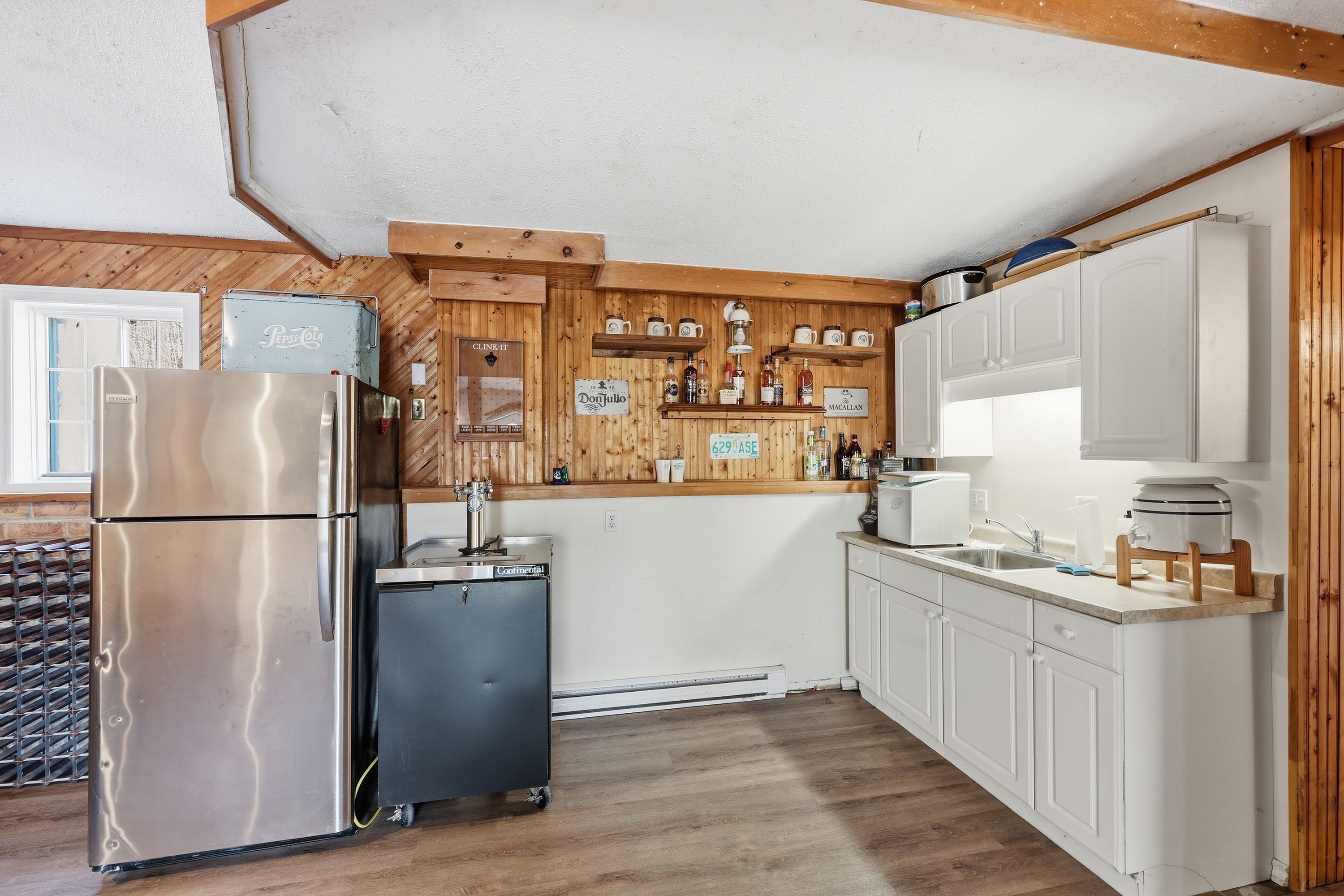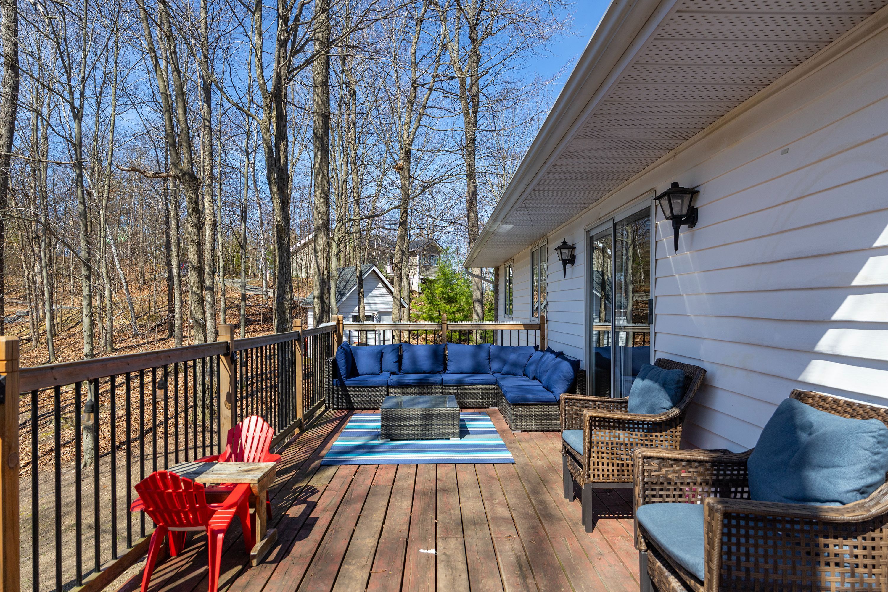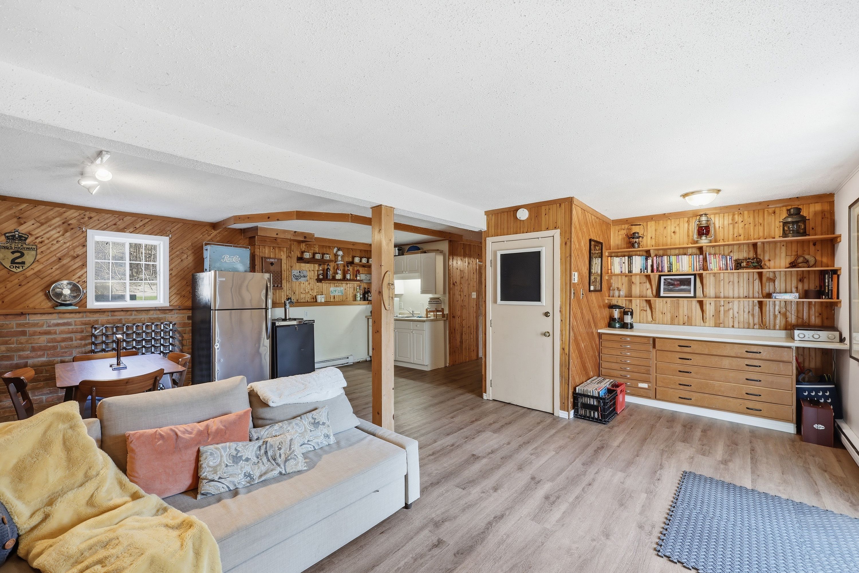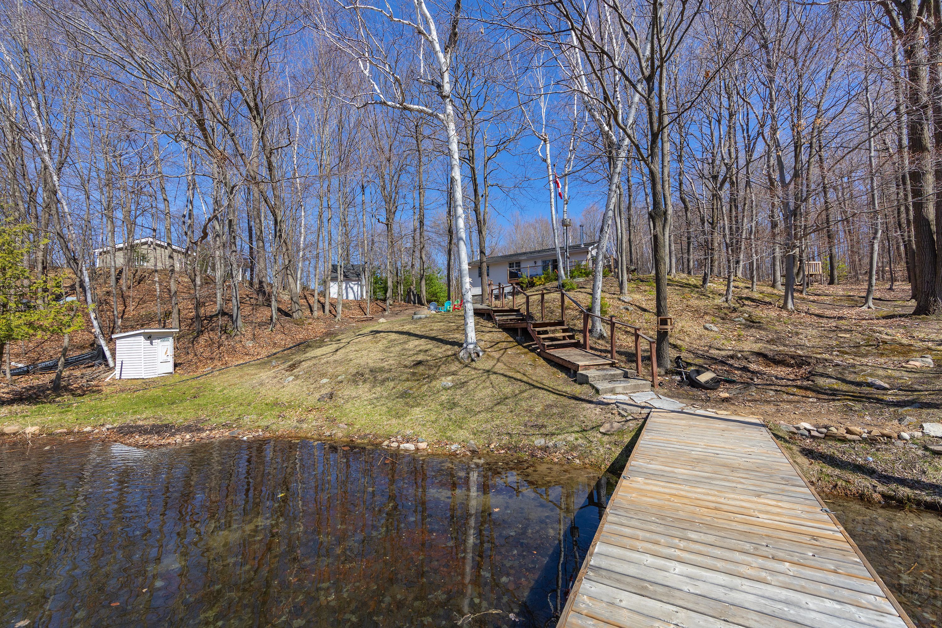 Welcome to your lakeside escape on beautiful buck lake! Nestled in a private setting, this spacious elevated bungalow offers over 1,500 sq ft of comfortable living space and sits on an impressive ~143. 7 feet of waterfront. Enjoy stunning lake views from the large deck-perfect for morning coffee or evening sunsets-with patio doors on the main level providing seamless access to outdoor living. This bright, tastefully decorated 4-season home features 3+1 bedrooms and 2 full bathrooms, offering a thoughtfully designed layout filled with natural light. The lower level adds incredible flexibility with an additional bedroom, full bathroom, kitchenette, and walkout-ideal for guests, extended family, or potential rental income. A cozy bunkie provides extra sleeping space or a private retreat, while the private dock invites you to fully embrace waterfront living-boating, swimming, and relaxing just steps from your door. The property also includes an easement providing convenient access to a nearby boat launch, adding even more ease to your time on the water. Recent updates provide peace of mind and modern comfort, including a refreshed kitchen with new appliances (2023), washer and dryer (2023), new dock (2023), updated main floor bathroom(2024), new downstairs flooring (2024), and a new hot water tank (2025). An excellent cottage, investment opportunity, or year-round home, this turnkey property delivers the perfect blend of comfort, privacy, and natural beauty.