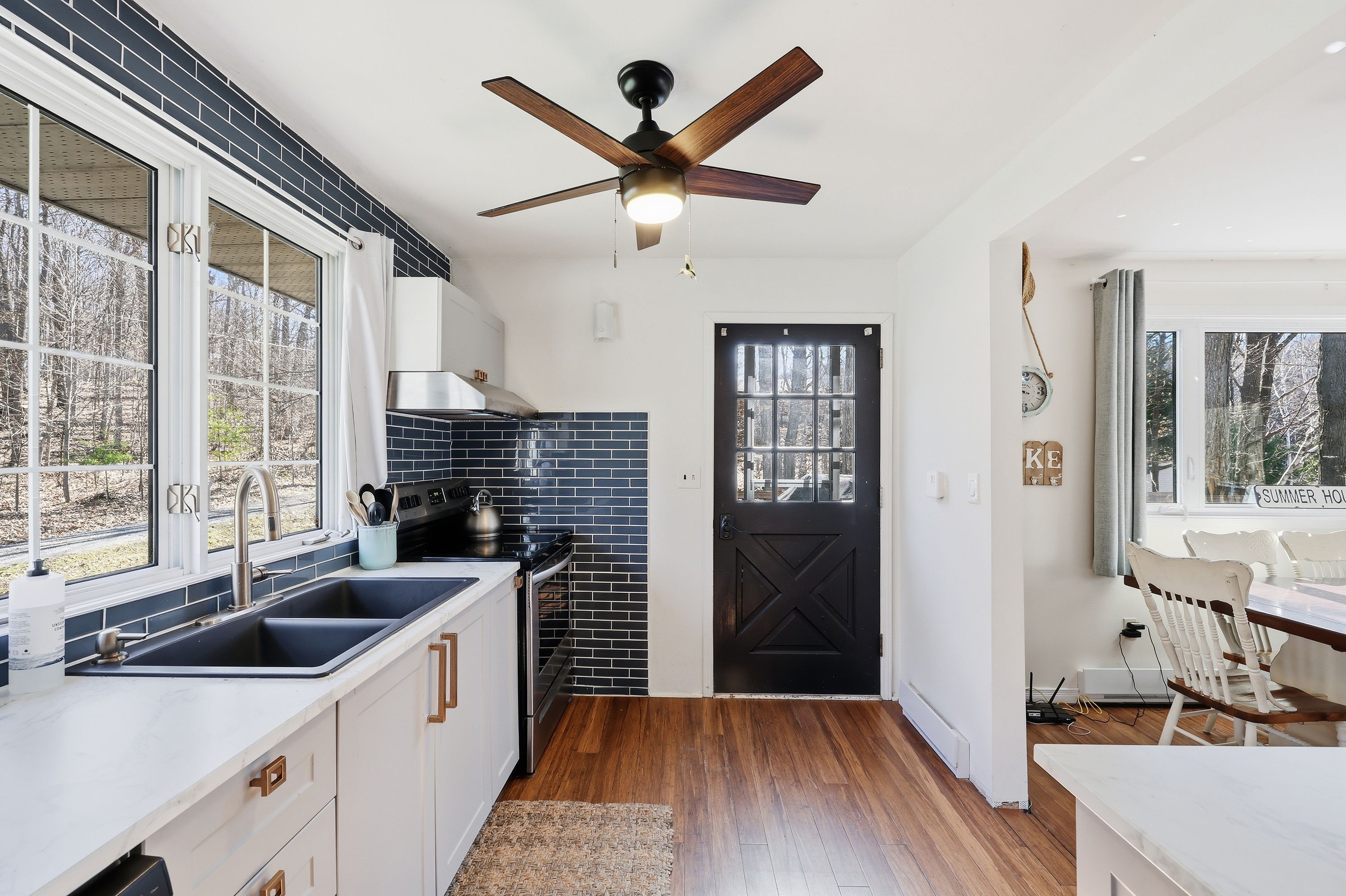 • Flexible lower level with extra bedroom, kitchenette, and walkout access.
