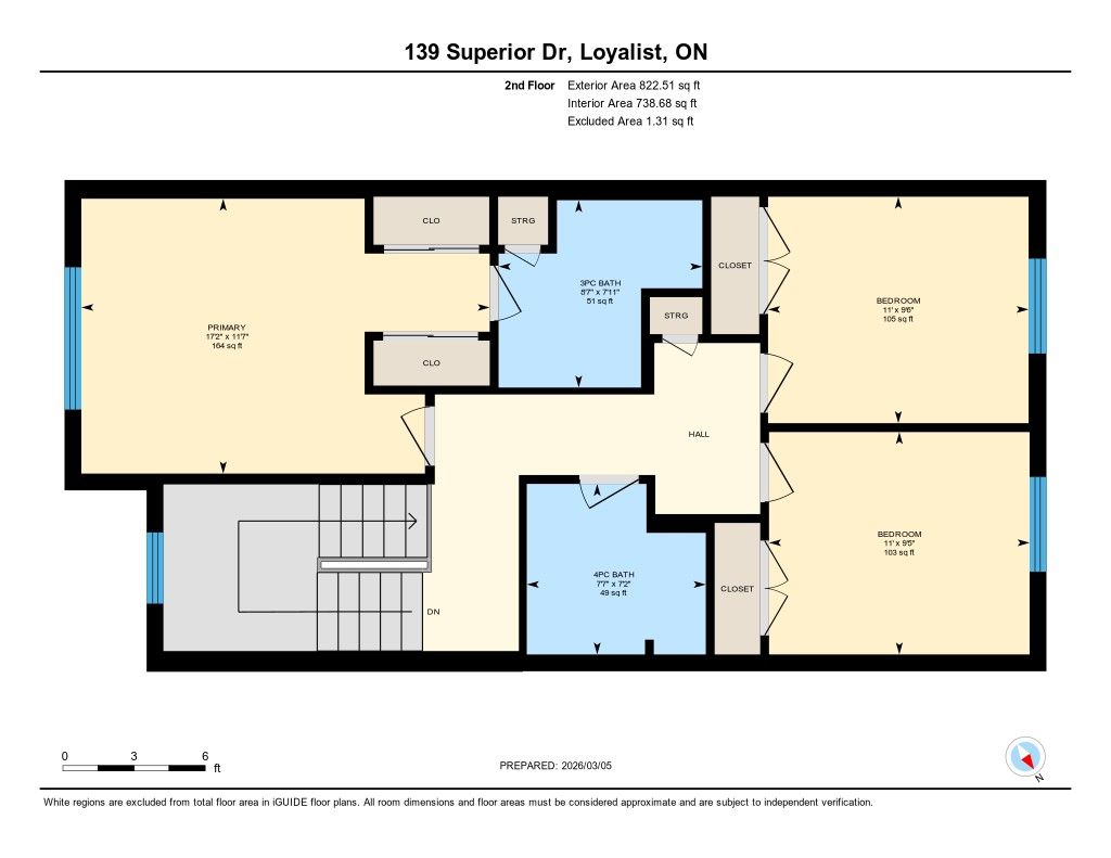 • Three bedrooms upstairs with a primary ensuite and ample closet space.