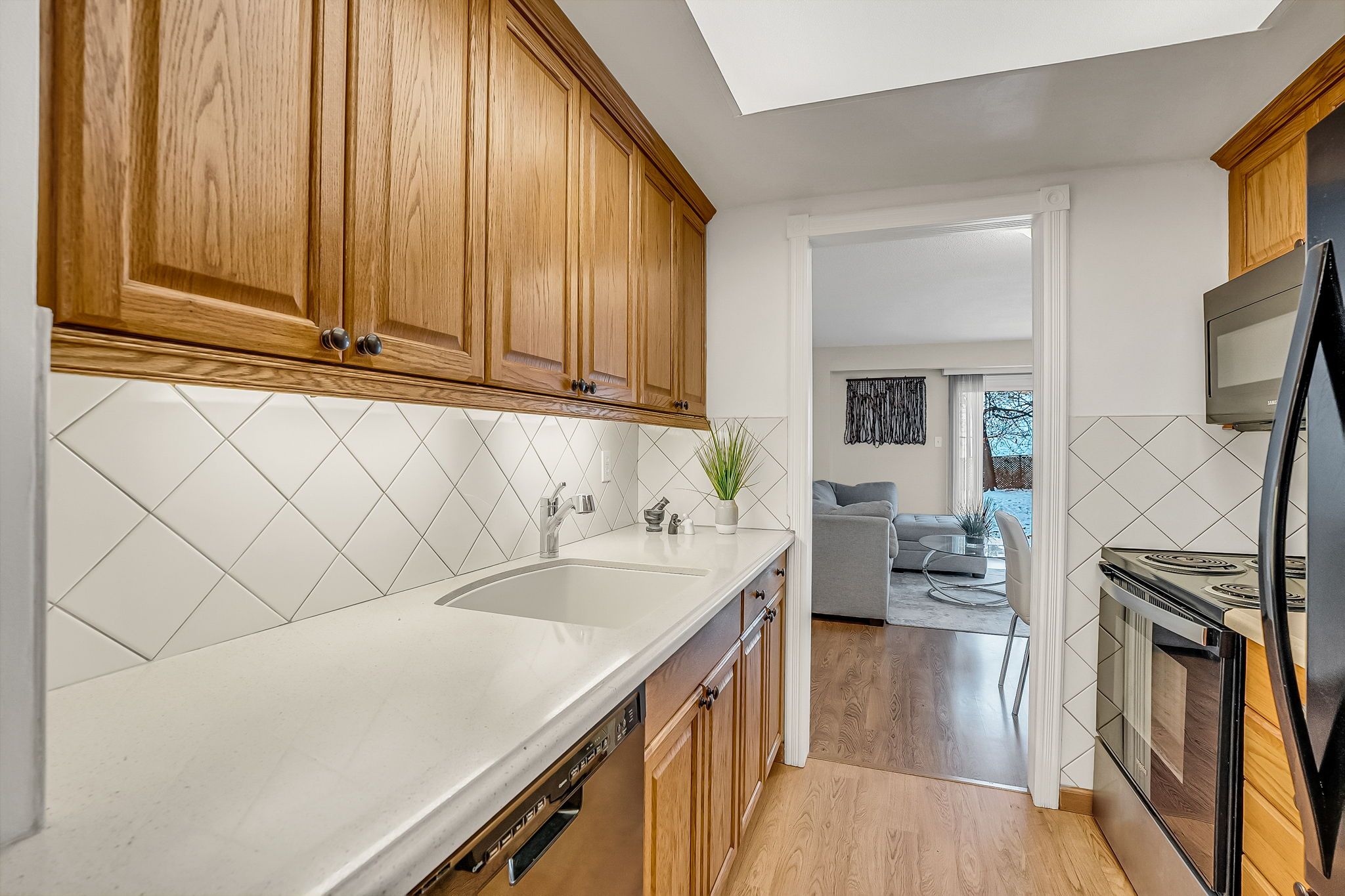 • Well-maintained home with modern kitchen features and sliding doors to patio.