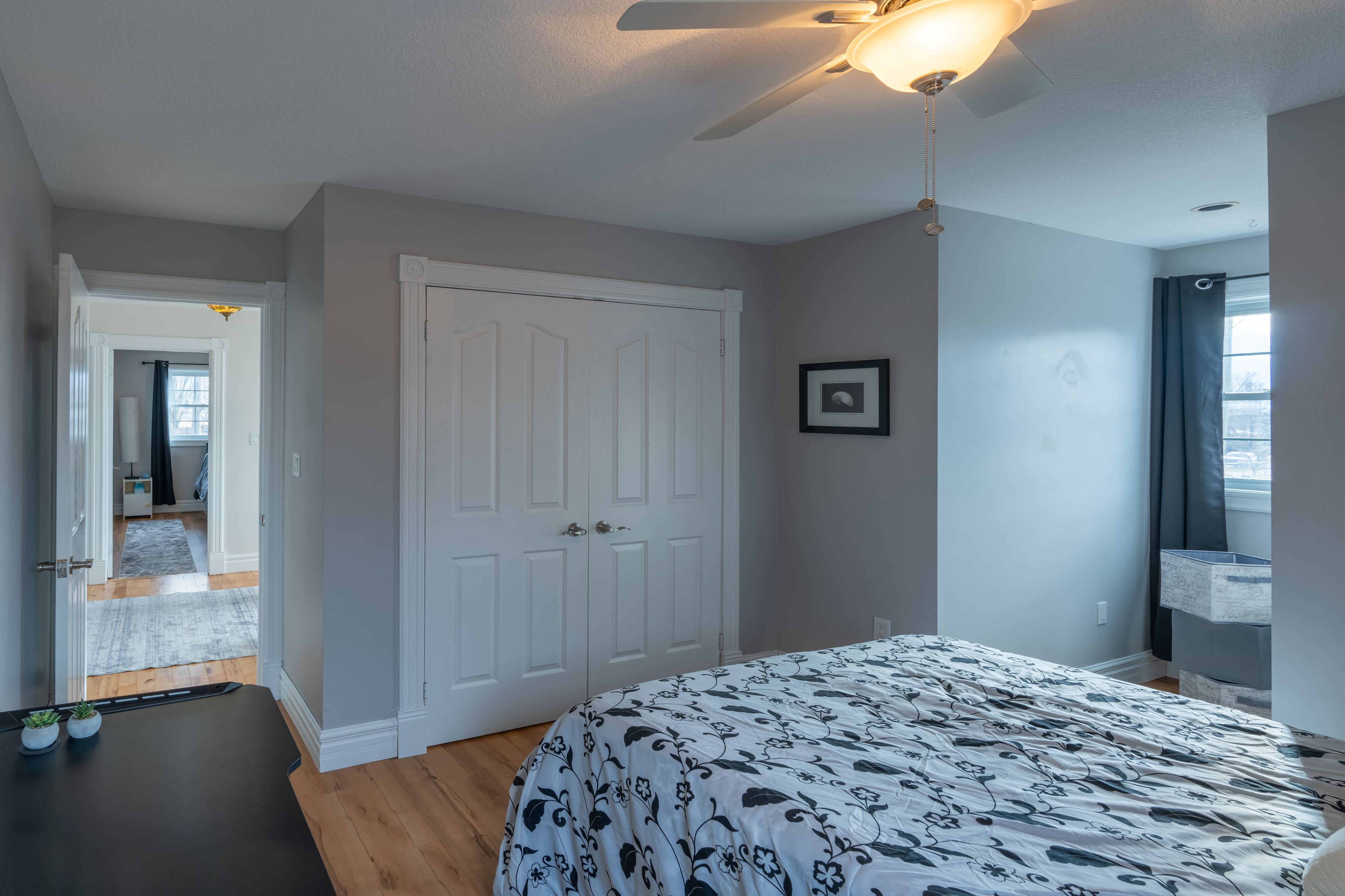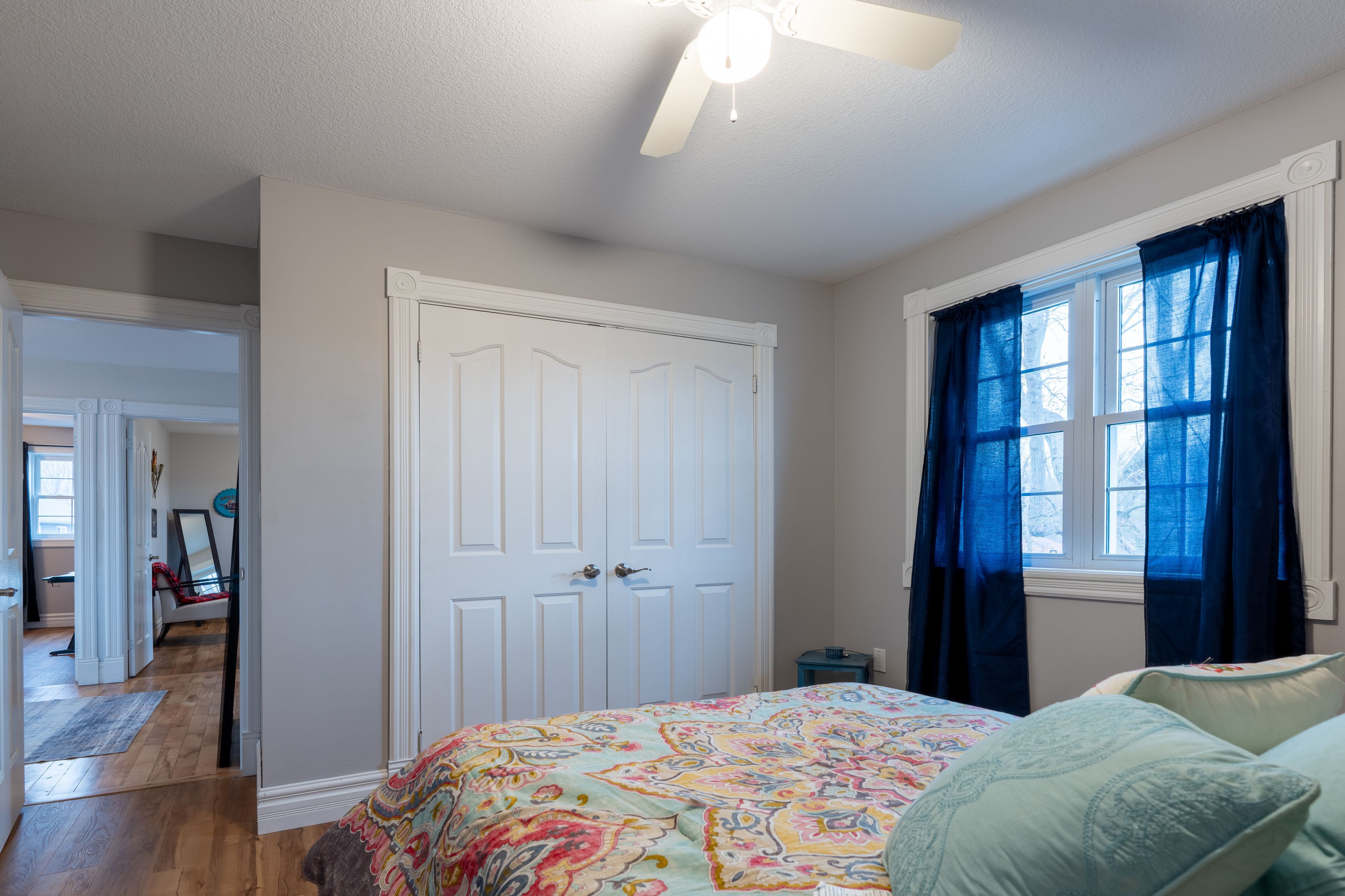 Experience the charm of quiet small-town living on a picturesque half-acre lot, surrounded by lush greenery and backing onto peaceful cornfields. This expansive 5-bedroom, 5-bathroom home offers the perfect blend of space, comfort, and versatility for today's modern family. The heart of the home is a stunning, oversized kitchen featuring granite countertops, a generous island with added storage and seating, and beautiful french doors that open to your backyard oasis. Enjoy morning coffee or evening sunsets from the back deck overlooking the in-ground pool and open countryside. Hardwood floors flow throughout the home, enhancing the elegant main floor layout, which includes a large formal dining room and a spacious living room. The impressive primary suite is a true retreat, complete with a walk-in closet and a newly renovated ensuite featuring a walk-in shower and a freestanding soaker tub. Upstairs, you'll find four additional bedrooms, all with hardwood flooring, along with a well-appointed 4-piece bathroom. The bright, sun-filled basement offers exceptional natural light thanks to four oversized egress windows, and provides ample space for a games room, home gym, or family entertainment area-perfect for pool, ping pong, and more. Above the garage, with its own private entrance, is a self-contained studio granny suite offering a 3-piece bathroom, kitchenette, open living/sleeping area, and a large private balcony overlooking the backyard. Ideal for multigenerational living or as an excellent income-generating opportunity. Step outside and embrace summer in your fully fenced backyard oasis, complete with a sparkling inground pool, expansive concrete patio, and plenty of room to relax, entertain, or let children and pets play safely. The pool shed houses all equipment, including a robotic cleaner, making maintenance effortless. This exceptional property delivers space, privacy, and lifestyle-an ideal place to call home. Heated/ac garage (heat pump 2025).