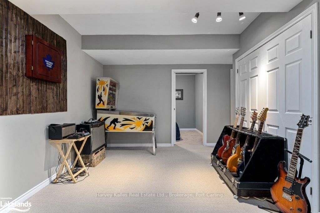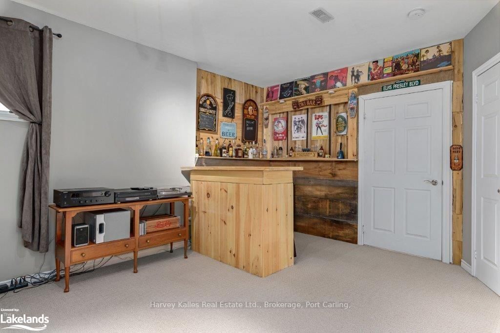 • Lower level with high ceilings, rec room, and built-in bar.