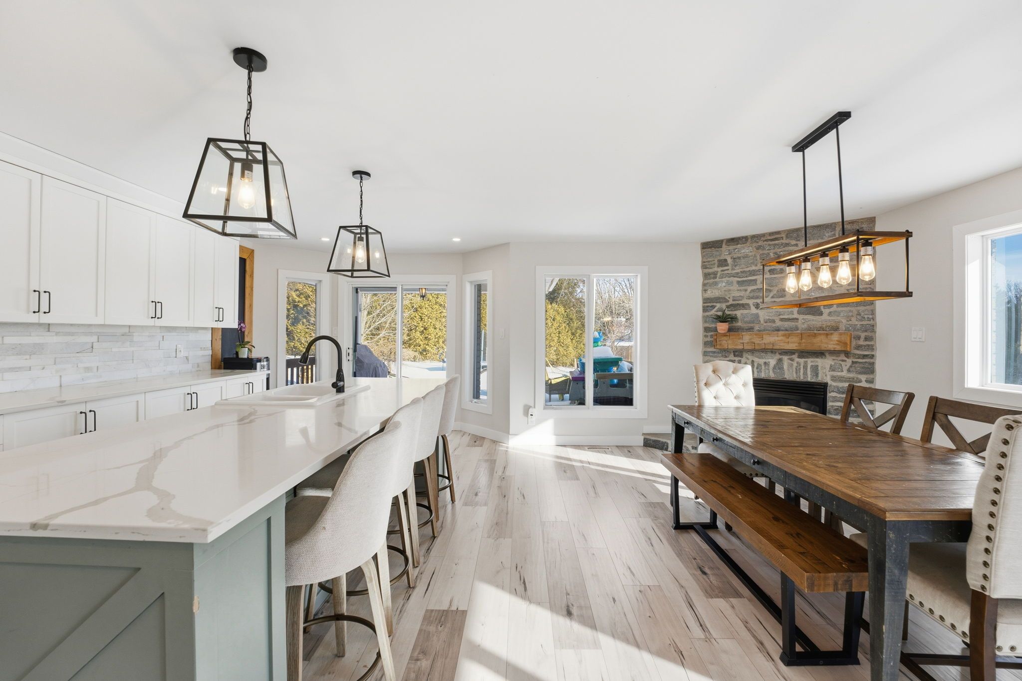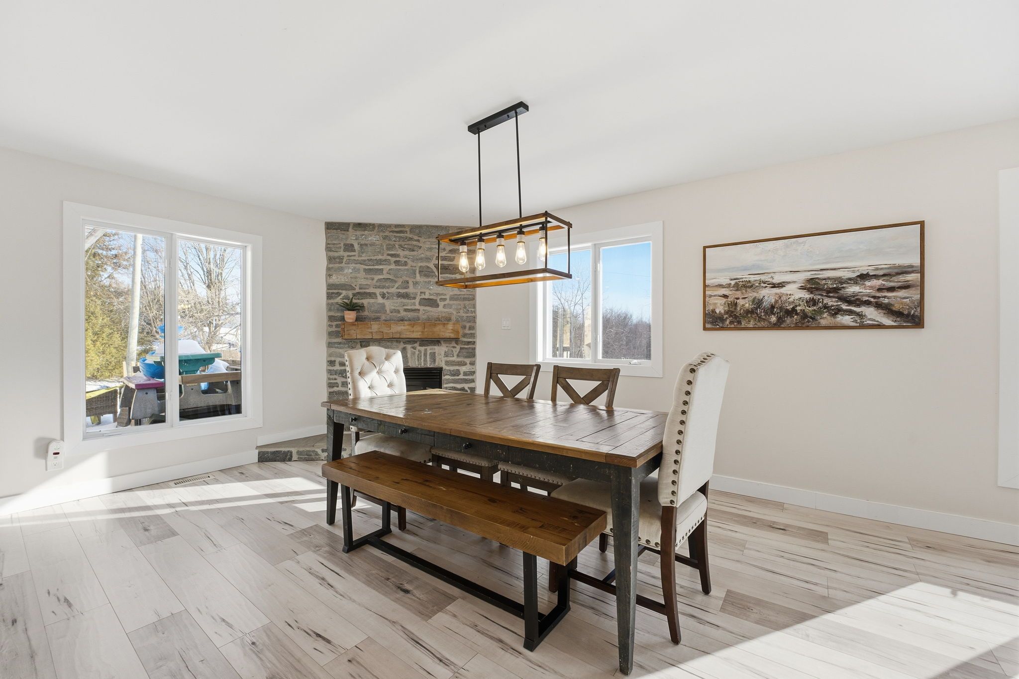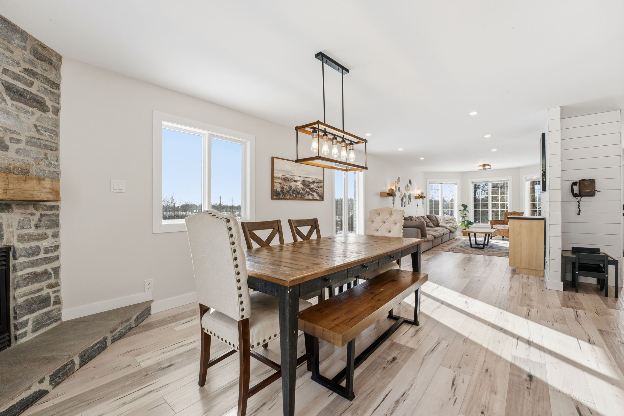 Welcome to an exceptional country property just 2 minutes from the heart of manotick: offering not only a beautifully renovated bungalow, but an incredible 25' x 40' heated and insulated detached shop with its own 200-amp service, separate hydro meter, and 10' x 10' door, this space is ideal for car enthusiasts, contractors, hobbyists, or anyone looking to operate a home-based business with privacy and flexibility. The separate setup allows you to work from home without sacrificing your personal space: a rare and valuable opportunity. The stunning 4 bdrm home is set on approximately 1. 3+ acres near the rideau river and the carleton golf & yacht club, it offers a gorgeous main level and a stunning in-law suite with a walkout; perfectly suited for families, multigenerational living, or income potential. On the main level you'll find a warm, open-concept living and dining area anchored by a striking stone gas fireplace. The renovated kitchen (2018) is both functional and beautiful, featuring stainless steel appliances, quartz countertops, extended cabinetry, and a generous island with breakfast seating. The spacious primary suite includes a private 3-piece ensuite, while two additional bedrooms and a full bath complete the main level. The fully finished walk-out basement provides a separate living space with its own renovated kitchen (granite counters), bedroom, office, and full bath - ideal for extended family, guests, or rental potential - with direct access to a private patio. Outside, enjoy expansive yard space, a large deck, a stone patio with firepit, and mature privacy: all just minutes to manotick village and only 3 minutes to highway 416. Close to parks, schools, shops, restaurants, golf, and hurst marina, this location offers the perfect blend of country living and village convenience . A rare opportunity to own a move-in ready bungalow with acreage, versatility, and exceptional workspace in one of ottawa's most desirable communities.