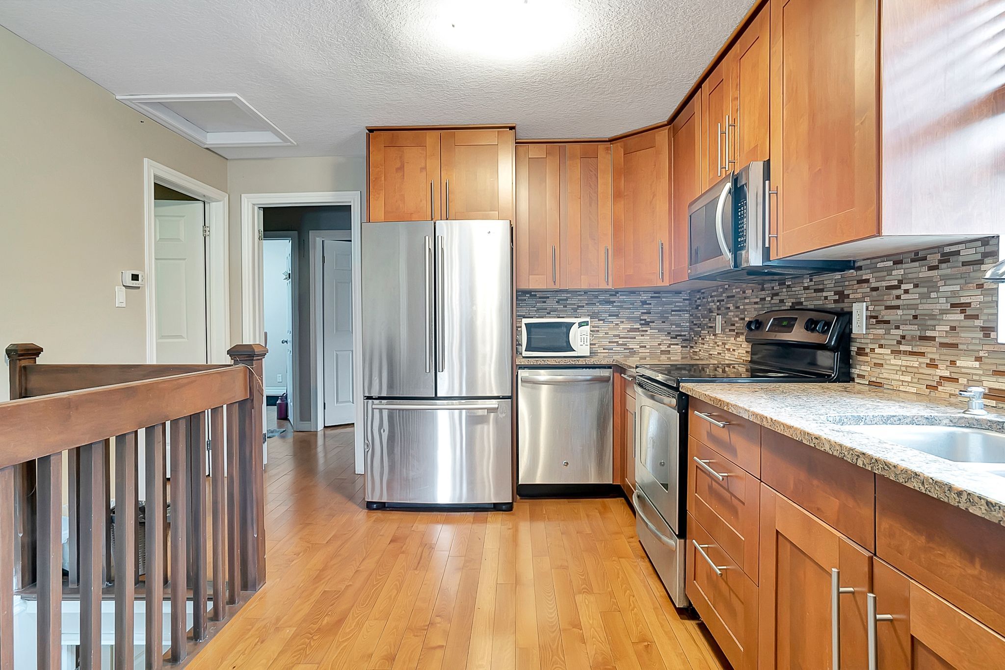 Welcome to 1392 doon village road, kitchener! This stunning 4-bedroom, 3-bathroom bungalow is situated on a rare 1-acre lot on a quiet, dead-end street offering privacy, space, and exceptional family living. Just steps from doon public school, the home is surrounded by mature trees and scenic nature trails. Fully renovated in 2011, this home features extensive upgrades including new ceramic and hardwood flooring, roof, plumbing, electrical, furnace, ac, insulation, appliances, and more. The open-concept main floor is ideal for entertaining, with a beautifully updated kitchen boasting granite countertops, stainless steel appliances, and stylish backsplash. The primary bedroom includes a luxurious ensuite with a new jacuzzi tub. Enjoy a spacious concrete covered patio and outdoor kitchen, perfect for summer gatherings. The massive backyard offers endless possibilities: soccer, volleyball, skating rink, firepit, or even golf practice. The fully finished basement includes a large family room, full bar, recreation/gym area, an extra bedroom, and a full 4-piece bathroom. Security features include 2 door sensors, 1 motion sensor, and 6 security cameras. Additional features include an attached 2. 5-car garage, parking for up to 10 vehicles, a prime location directly across from doon public school, quick access to highway 401, and proximity to scenic trails along the grand river and schneider creek. A perfect blend of rural tranquility and city convenience. Schedule your private showing today!