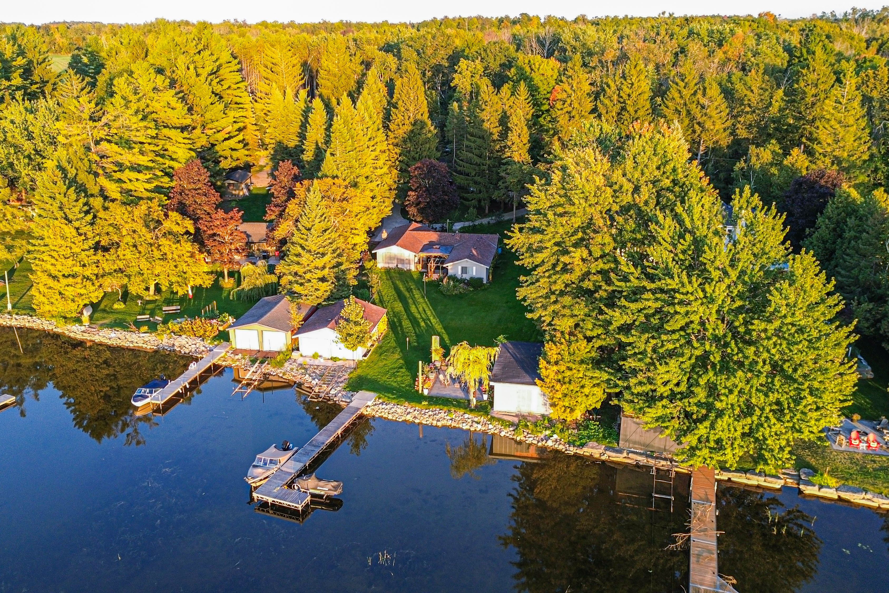 Just 1. 5 hours from toronto, this immaculate 4-season waterfront cottage on pigeon lake offers approx. 1,500 sq ft of well-kept living space with 4 bedrooms. The bright living room features vaulted ceilings and a newer airtight woodstove. A sunroom provides beautiful lake views, while the outdoors includes a 370 sq ft firepit patio and a 360 sq ft deck with gazebo, both overlooking the water. Enjoy stunning sunsets with ideal western exposure. A new double dry boathouse (permits in process) offers storage for all your water toys. The 48' aluminum dock with a cable bridge system is included. The lot is nicely treed at the roadside with a new circular driveway, offering privacy and curb appeal. Natural gas is at the street, and the property has year-round road access with garbage pickup. Turn-key and ready to enjoy, perfect for weekend escapes or year-round living.