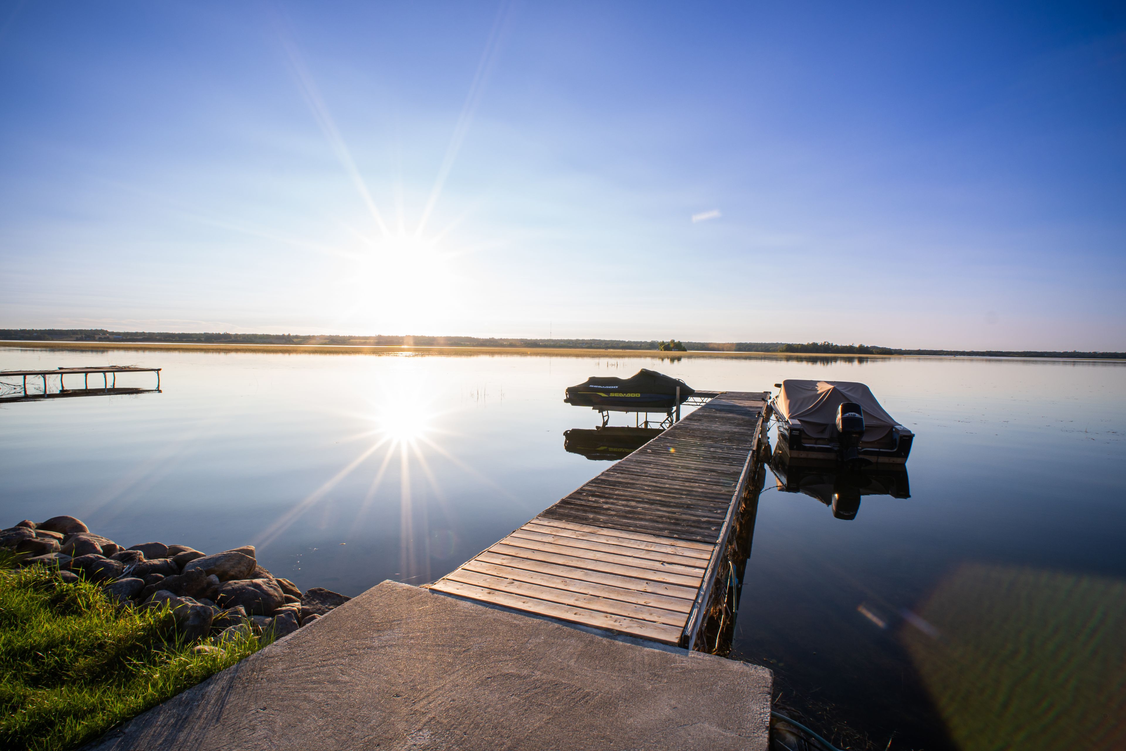 • New double dry boathouse and aluminum dock included for water toys.
