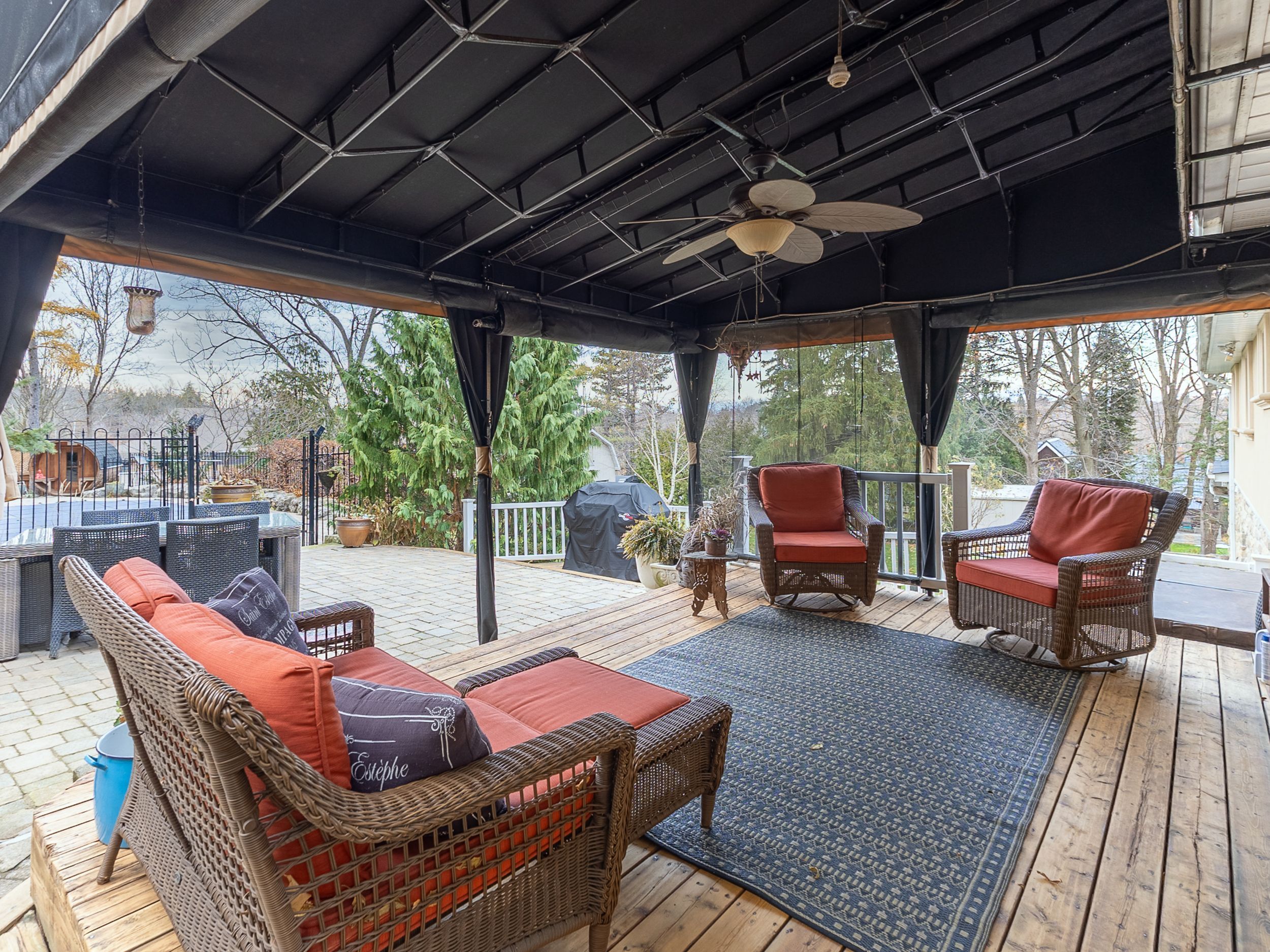Tucked away on a quiet dead-end cul-de-sac court, this stunning raised bungalow combines elegance, comfort, and versatility with rare country-style privacy just steps from city living. Perfect for families, entertainers, or those seeking multi-generational living, this home offers an exceptional lifestyle. Inside, you'll find a spacious layout featuring 4 bedrooms above grade, including a primary suite with his-and-her closets and convenient semi-ensuite access. The home offers a luxurious 5-piece semi-ensuite bath plus a powder room with laundry, balancing style with everyday practicality. The heart of the home is the expansive gourmet kitchen with skylight, designed with both function and entertaining in mind. The adjoining dining area flows seamlessly to the backyard, creating a natural extension of your living space. Gather in the inviting family room with a cozy fireplace, or enjoy cinematic nights with the built-in drop-down screen. The lower level impresses with a second full kitchen, 3-piecebath, and a private dwelling unit with its own entrance-ideal for extended family, guests, or rental income. This self-contained suite features 1 bedroom, 1 bath, a kitchen, laundry, and storage. Car enthusiasts and professionals will love the double tandem heated garage, partially converted into a stylish hair salon while still offering generous storage. Additional parking is effortless with an attached carport and a driveway for 10+ vehicles. A large barn at the rear provides secure space for your collector car or extra storage. The backyard is a true resort-style retreat. Enjoy the pool, sauna, and cabana built by jameson pools in 2010, complemented by an outdoor fire pit-perfect for summer gatherings or quiet evenings under the stars. The expansive grounds invite both entertaining and private relaxation in equal measure. This property truly offers it all: luxury, functionality, and endless possibilities-all in an unparalleled setting.