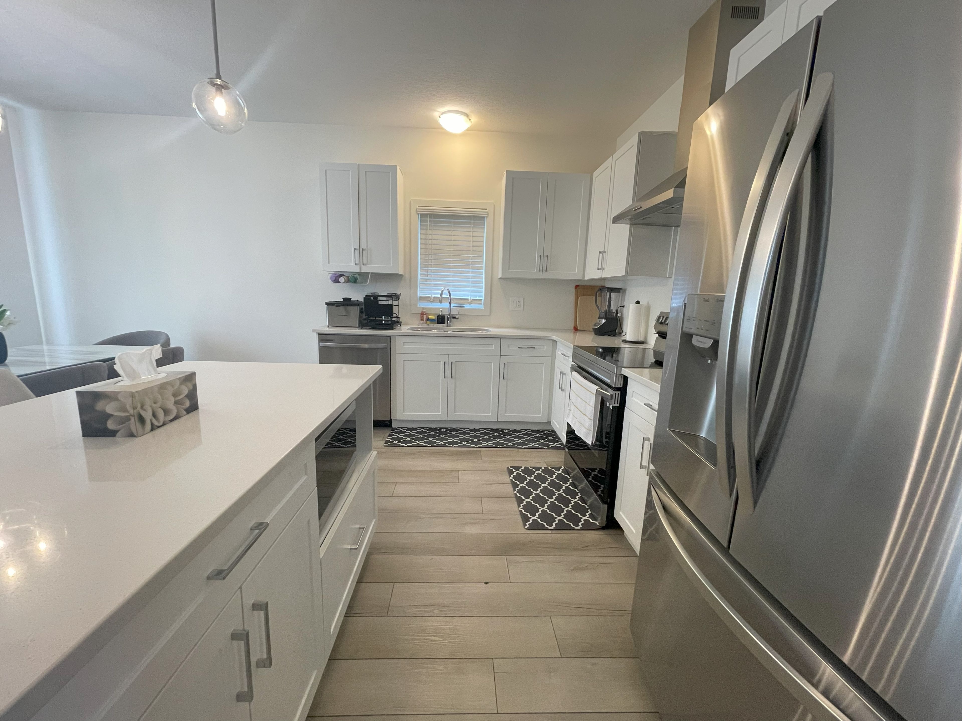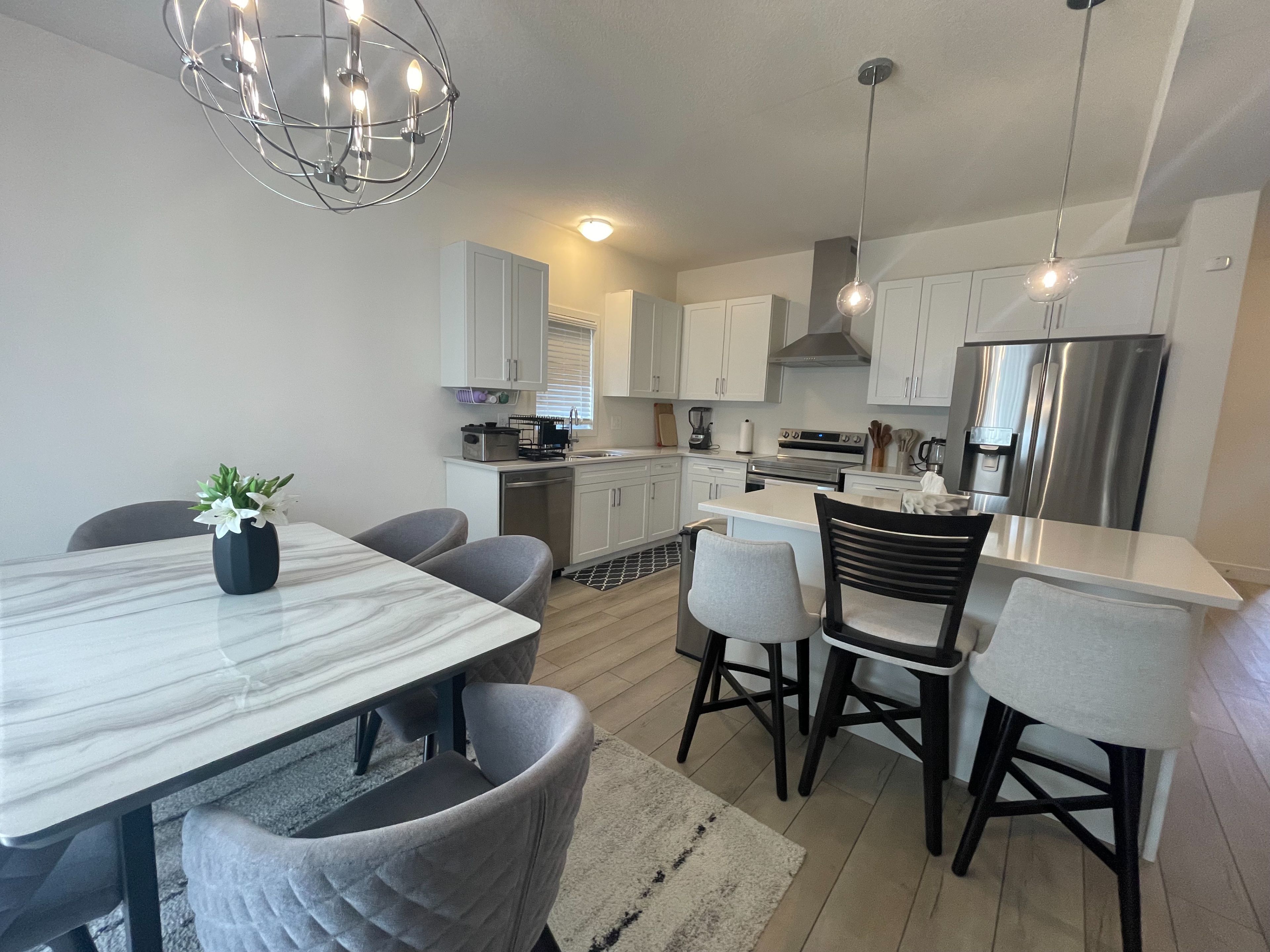 • Bright living/dining room paired with a stylish modern kitchen.