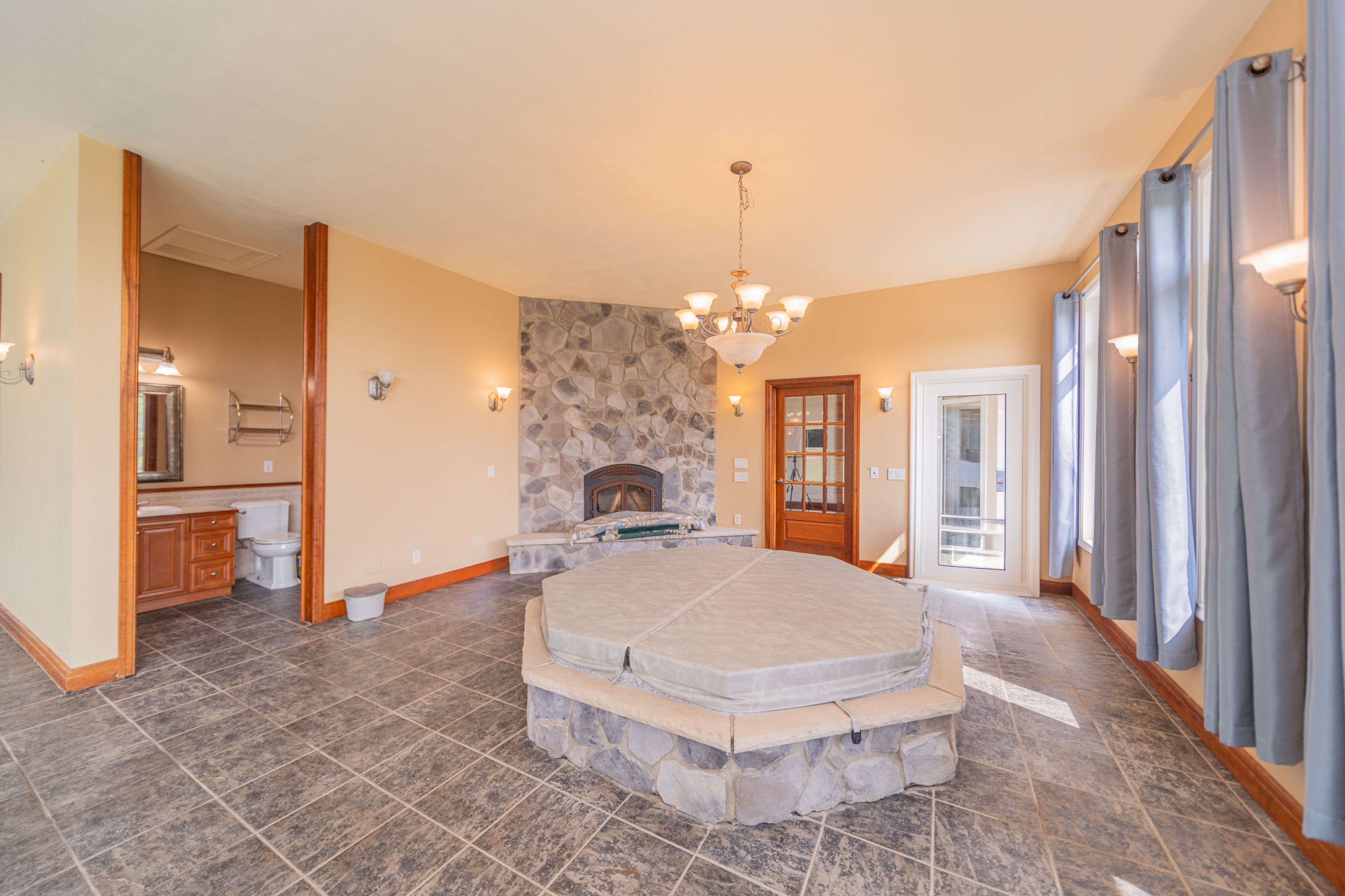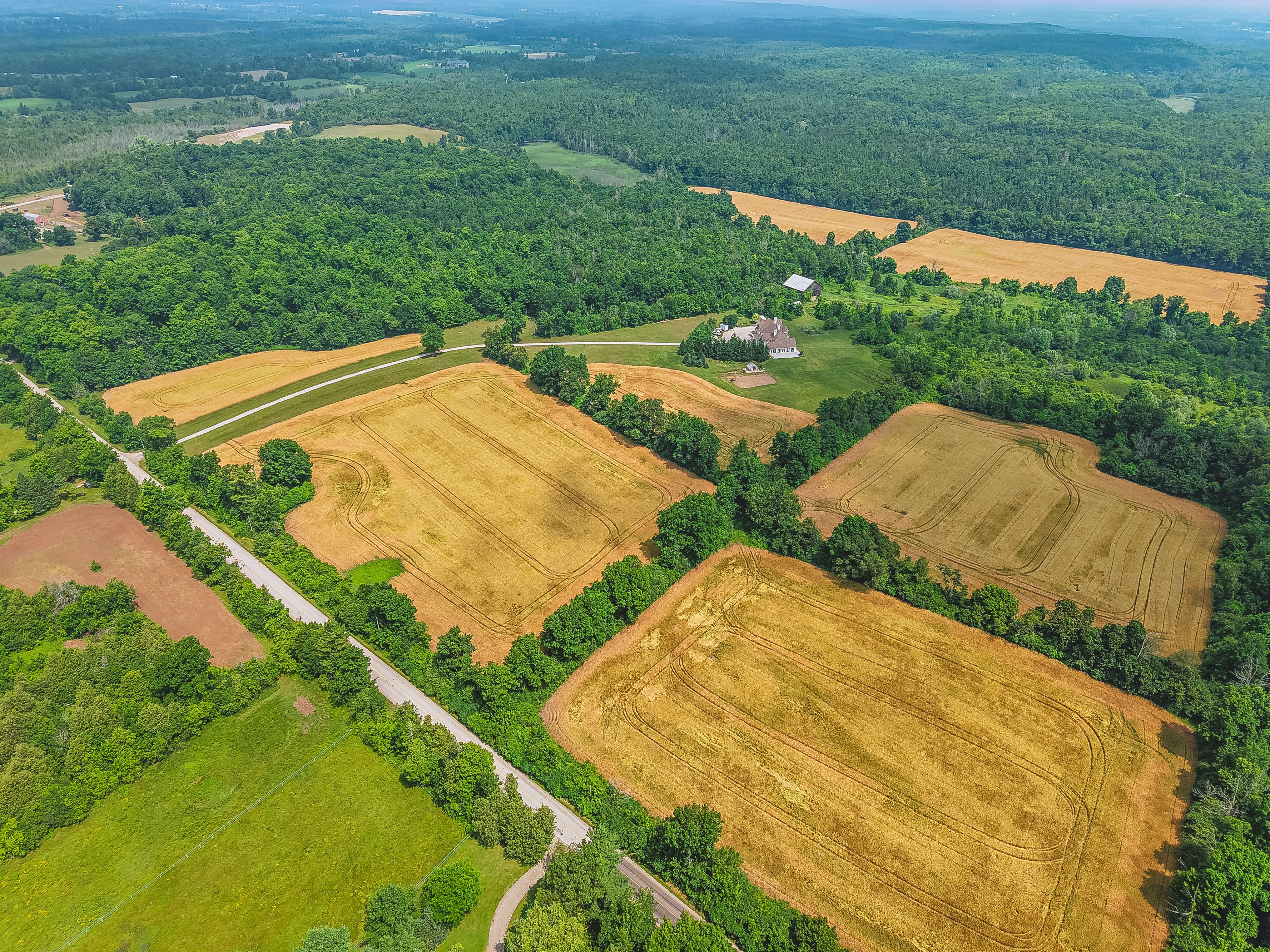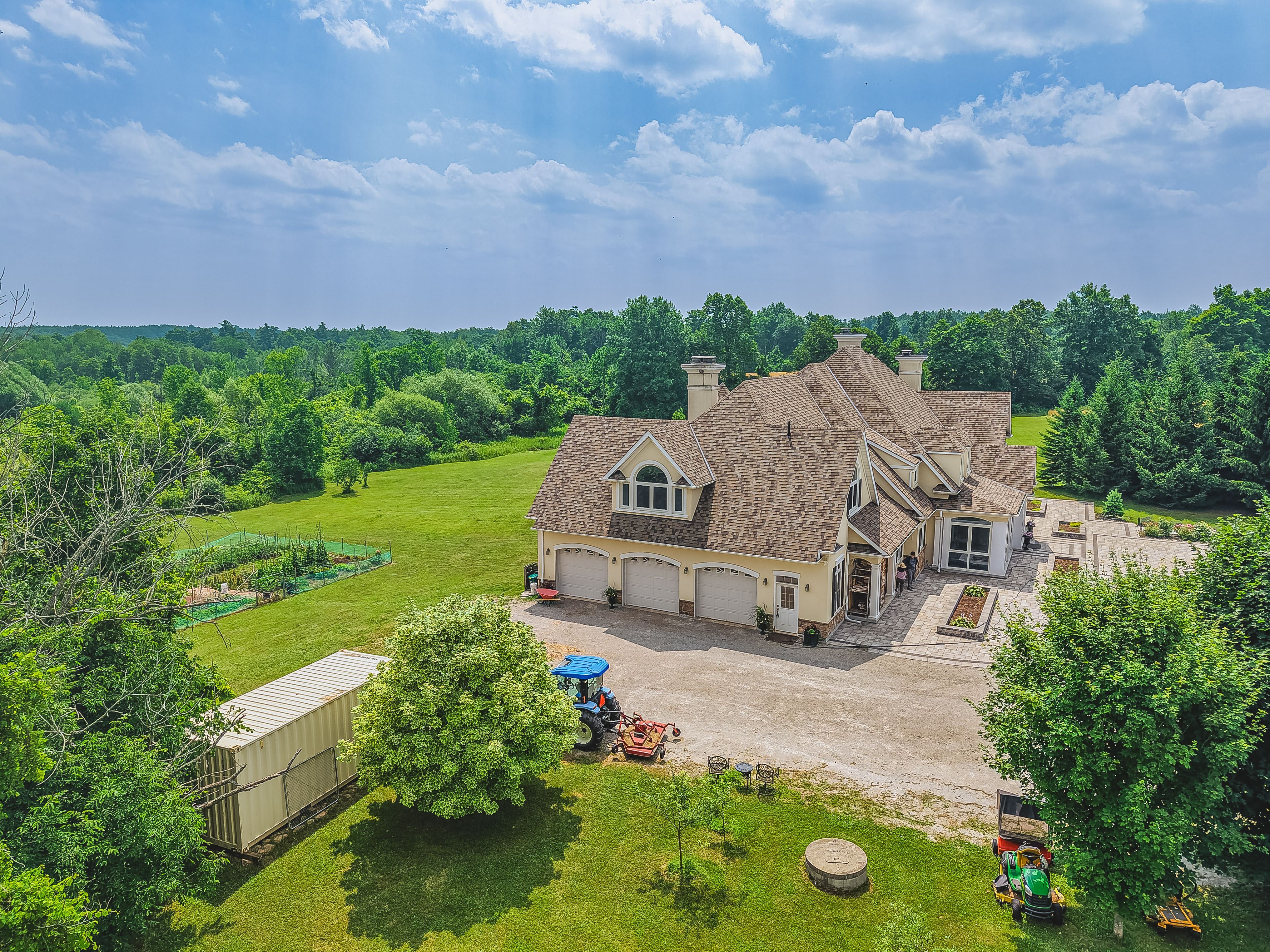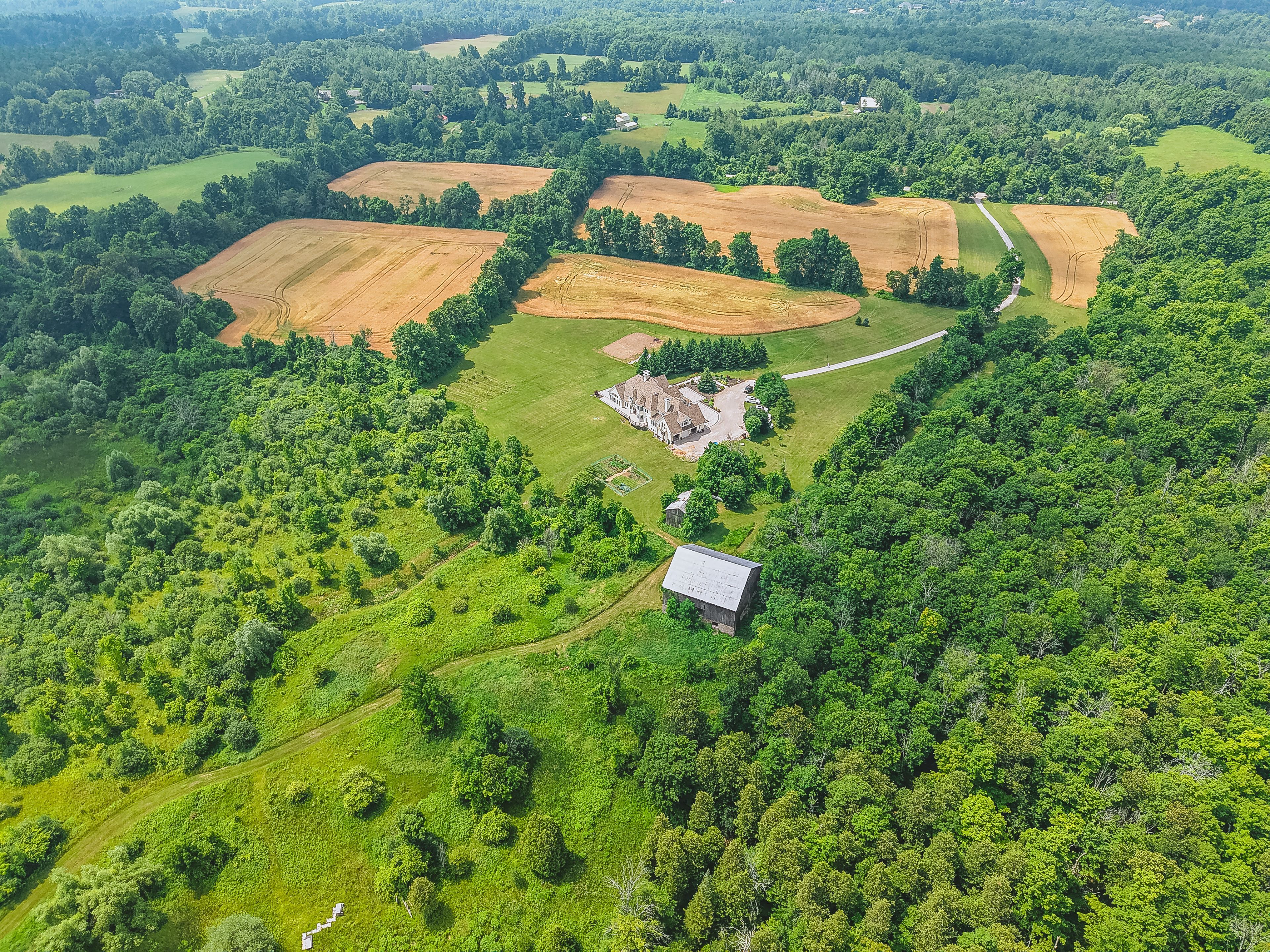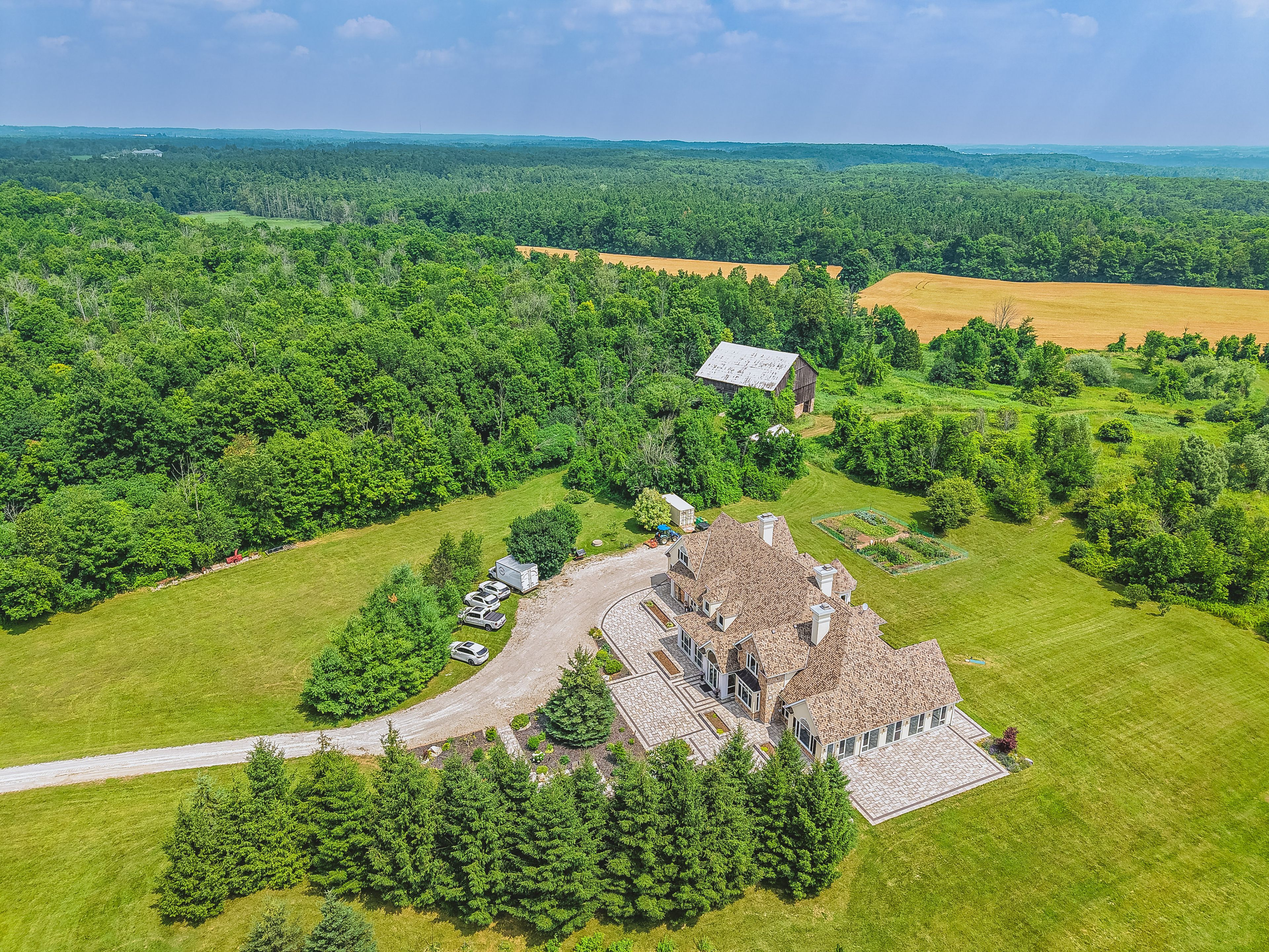 Set on over 96 acres of rolling countryside, this exceptional estate offers a rare blend of refined living and natural beauty. Thoughtfully designed for comfort and accessibility, the home features an elevator, a wheelchair-friendly layout, an inviting indoor pool, and a relaxing hot tub. A separate apartment above the garage provides ideal space for guests, extended family, or live-in staff. Each second-floor bedroom includes its own ensuite bath, providing comfort and privacy throughout. The lower level currently hosts a home theatre, with a recreation area. Sweeping views, serene surroundings, and timeless architectural charm make this estate a unique opportunity to own a true countryside retreat just minutes from modern amenities. This custom-built residence offers a total of over 10,000 square feet of living space, including approximately 4,320 sq ft on the main floor, 3,466 sq ft on the second level, and a spacious 1,111 sq ft attached garage. See additional details in attachments.
