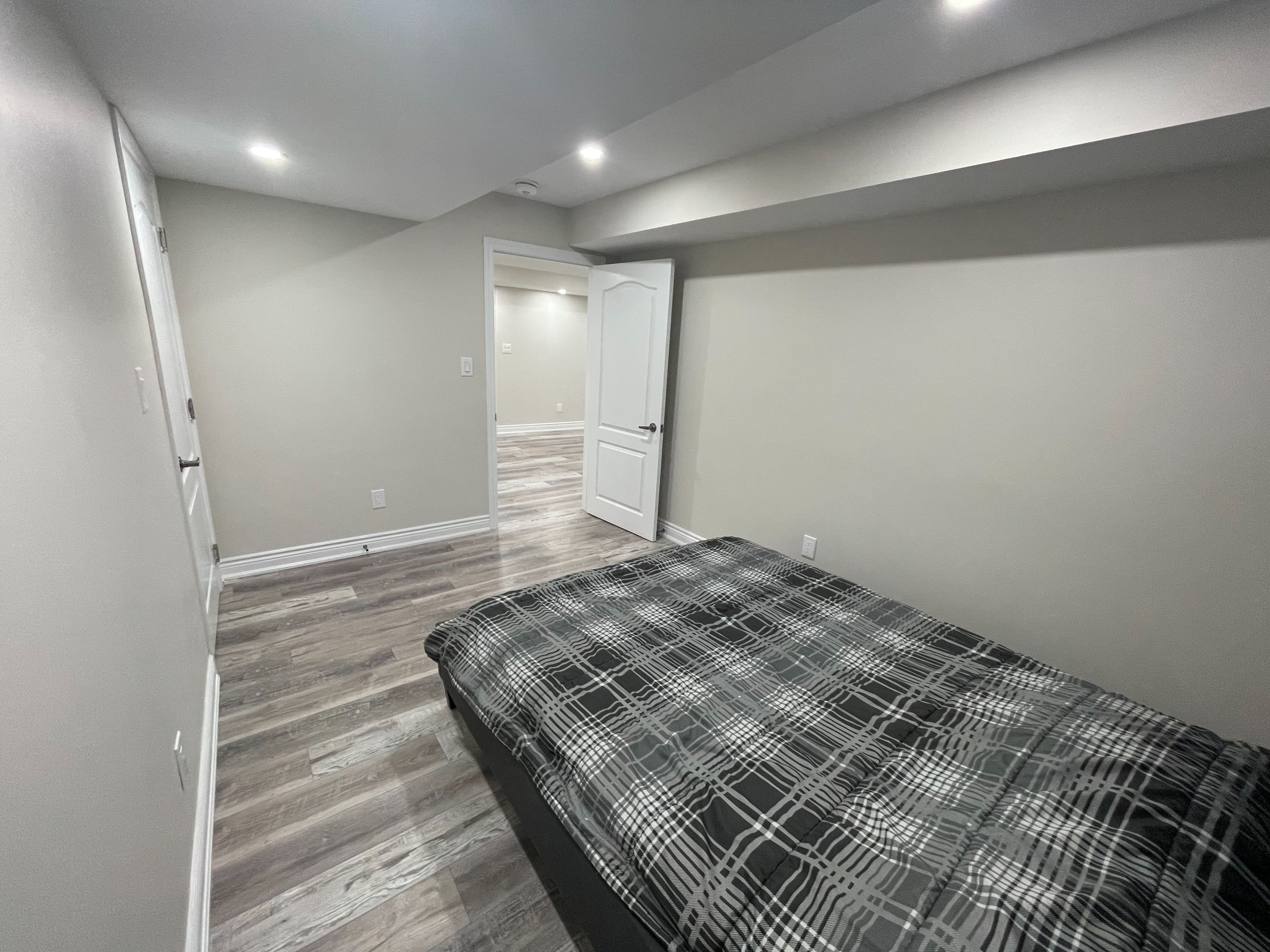 Welcome home to this completely renovated, 1-bedroom lower unit located in a family friendly neighbourhood! This beautifully designed 900 sq ft unit offers the perfect blend of style and comfort. Featuring an open-concept layout with 7. 8 ft ceilings that seamlessly connect the living, dining, and kitchen areas, this space is both functional and inviting. The unit has its own private entrance, providing added privacy and convenience. Throughout the space, pot lights enhance the modern design, laminate flooring allows for easy maintenance, & above grade windows with custom blinds allow for ample natural light! The kitchen is equipped with stainless steel appliances, ample cabinetry and storage, and modern backsplash and countertops. The well sized bedroom features above grade windows, closet space, and an ensuite laundry with private full-sized washer and dryer. Outside, tenant will have access to the backyard space. One parking space on driveway is exclusive for the tenant's use. Please note that a flat fee of $200/mth includes all utilities. Internet is included! Seeking a tenant who is a reliable working professional with consistent income and a positive rental track record. Ideal location includes minutes to heartland town centre, medical walk-in clinic, pharmacy, parks, shopping, public transportation, and all major highways! Come and view today!