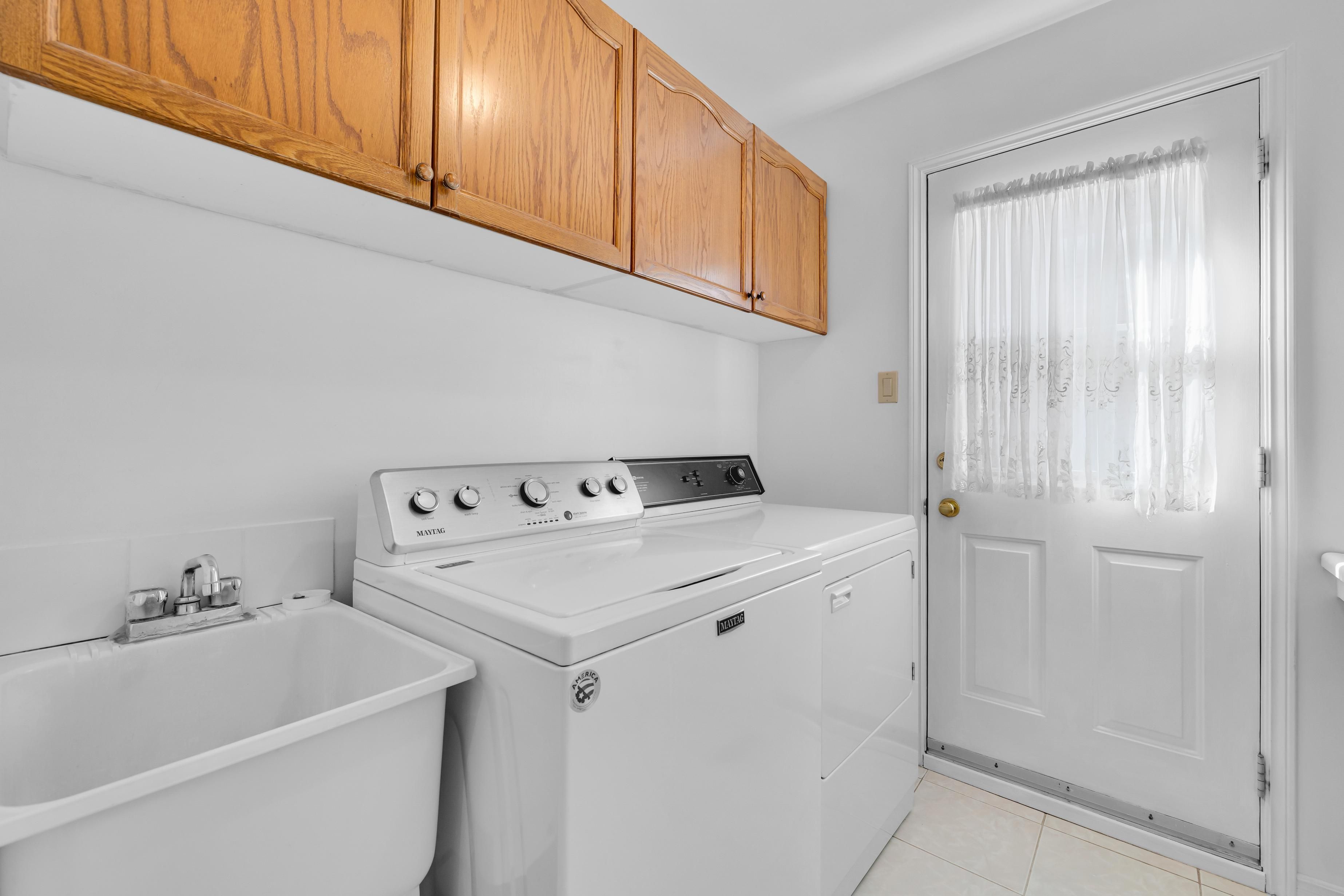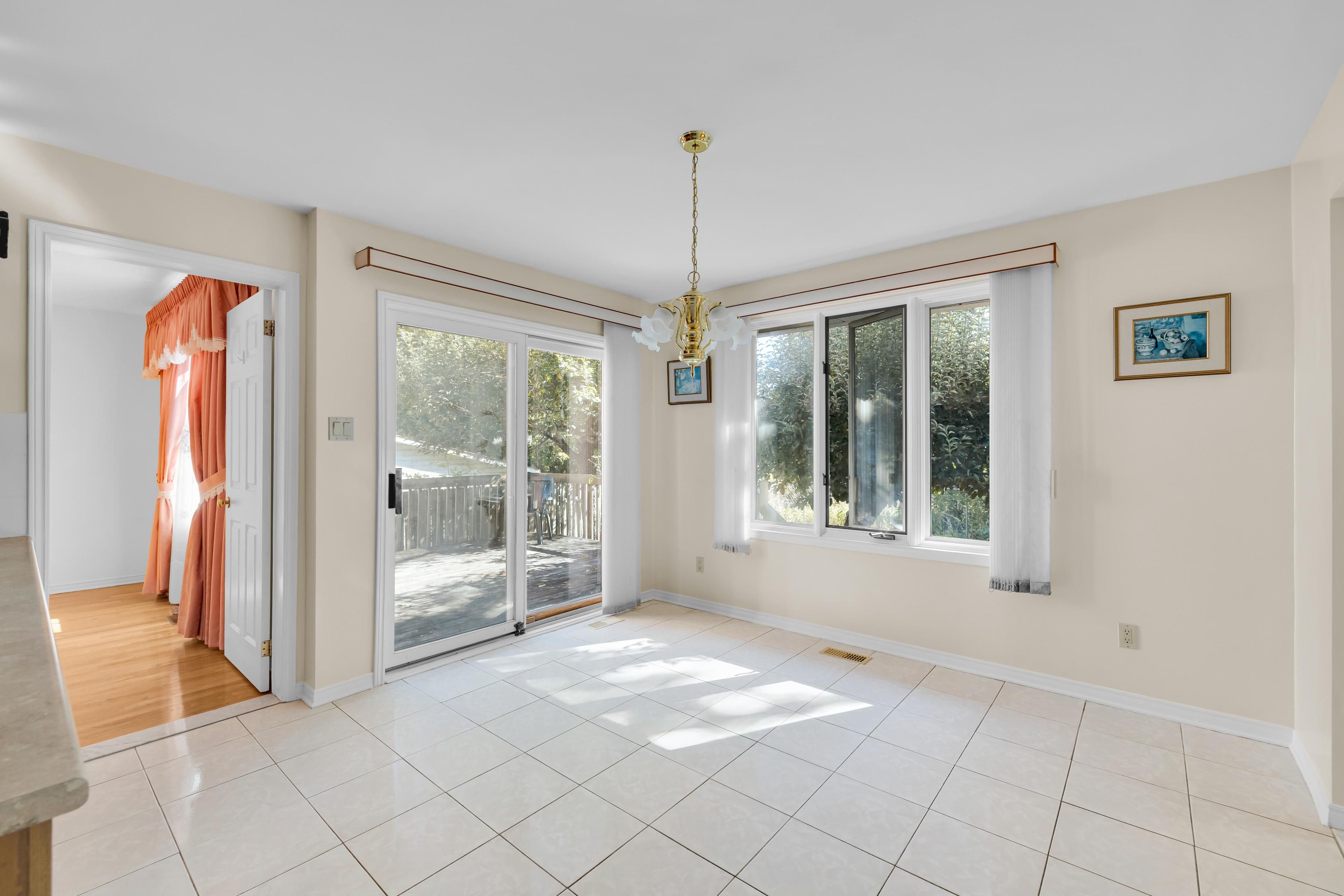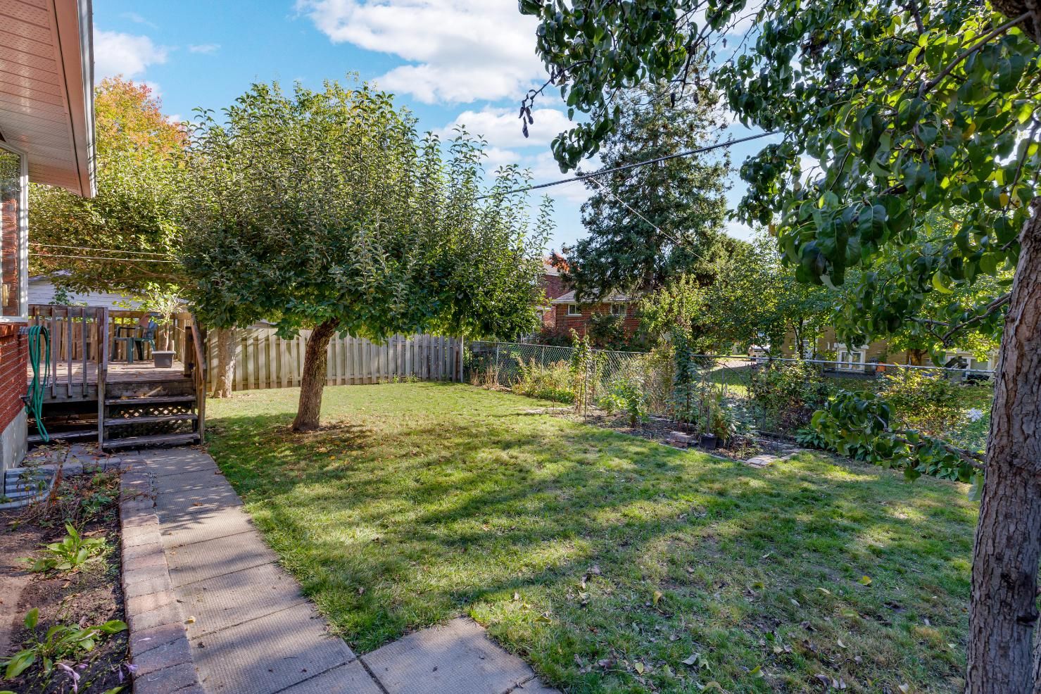 • South-facing backyard with mature trees and deck for outdoor entertaining.
