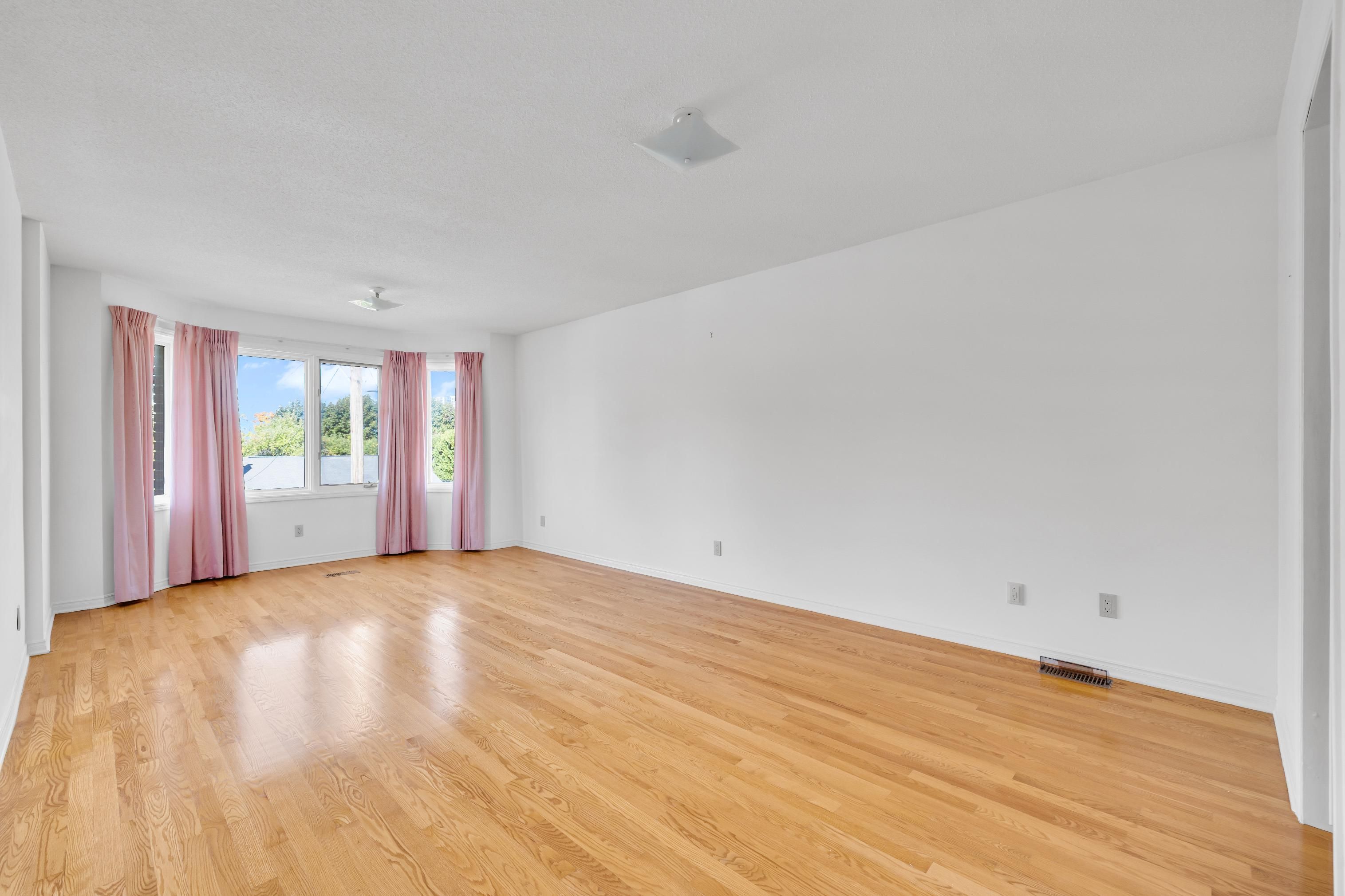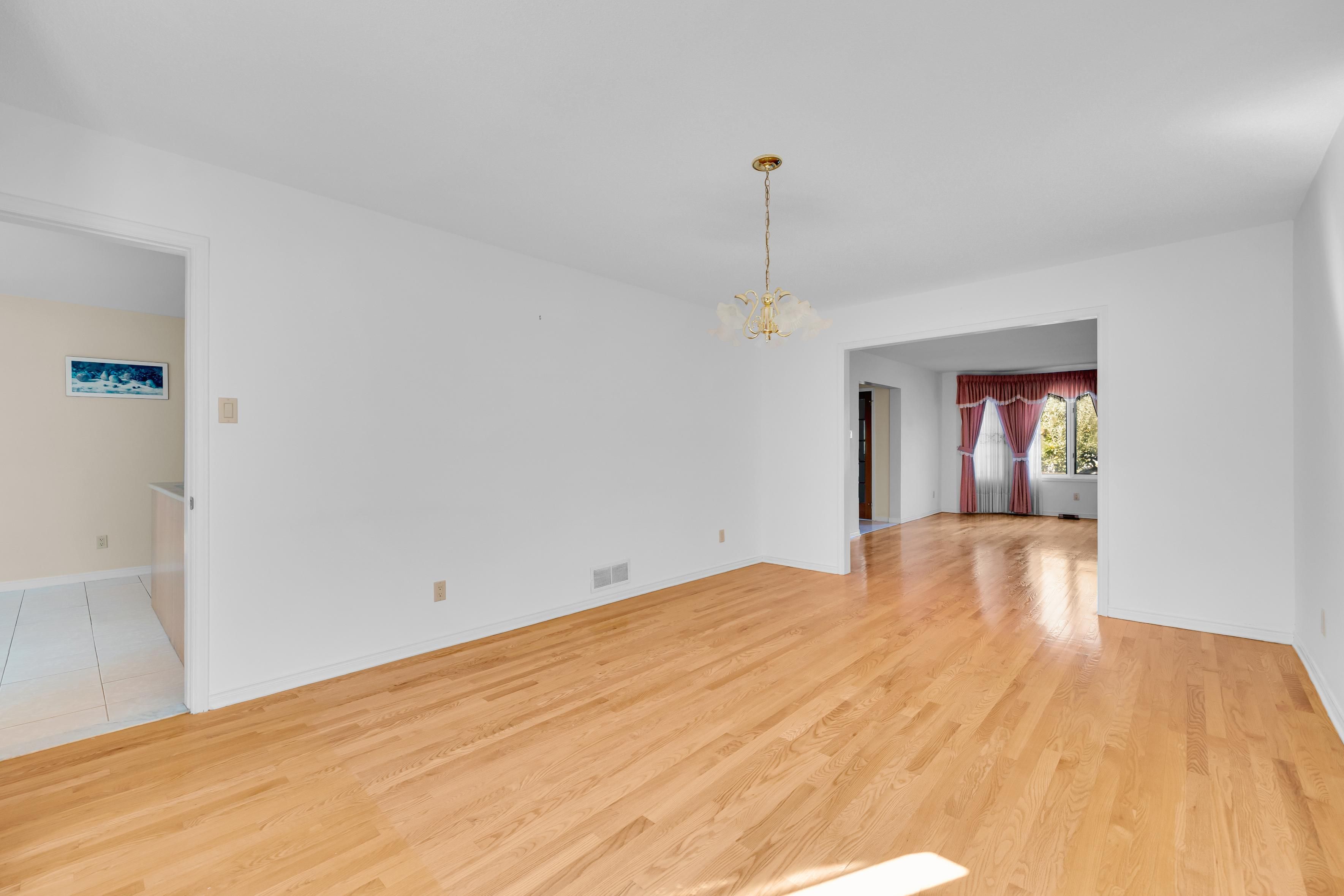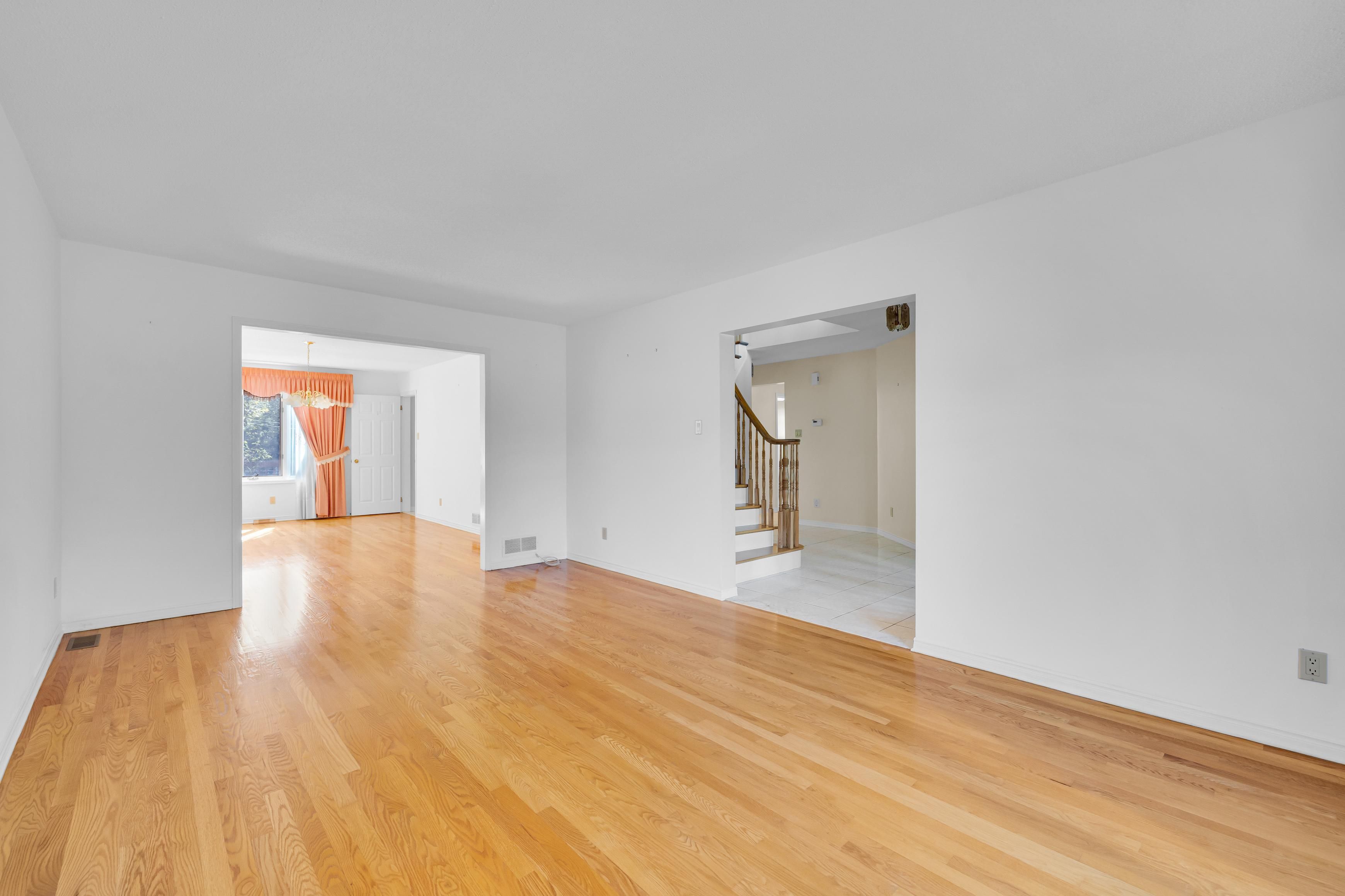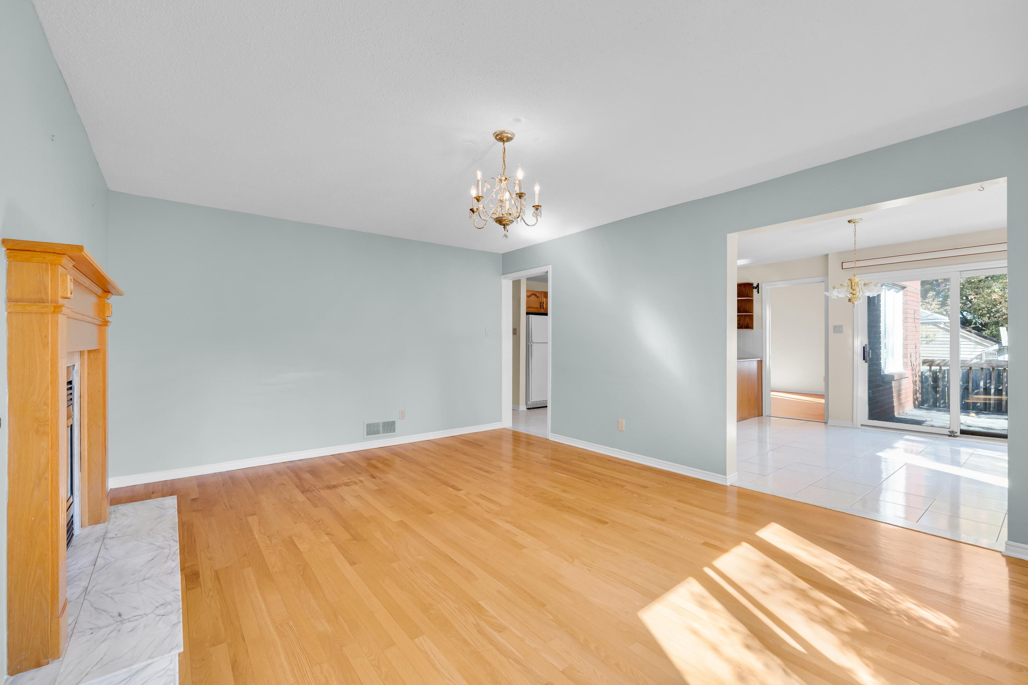 • Open-concept living and dining rooms filled with natural light from large windows.