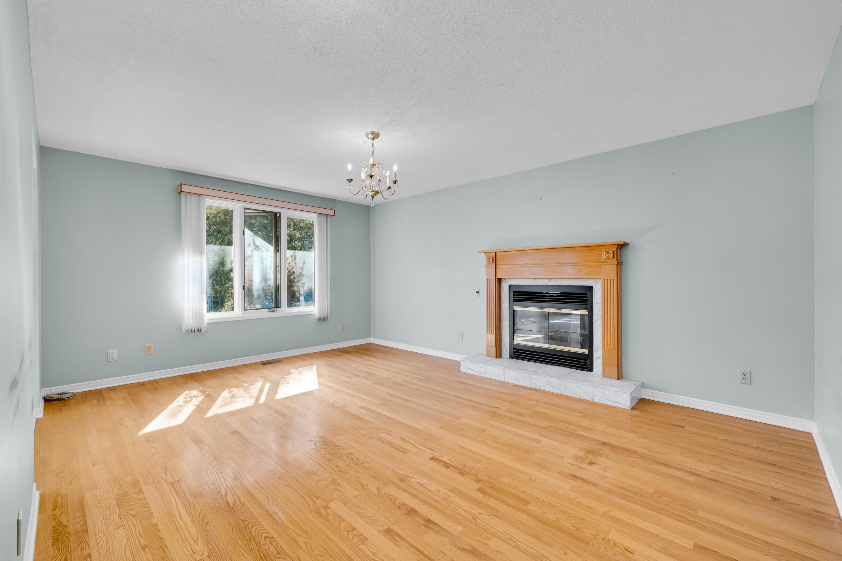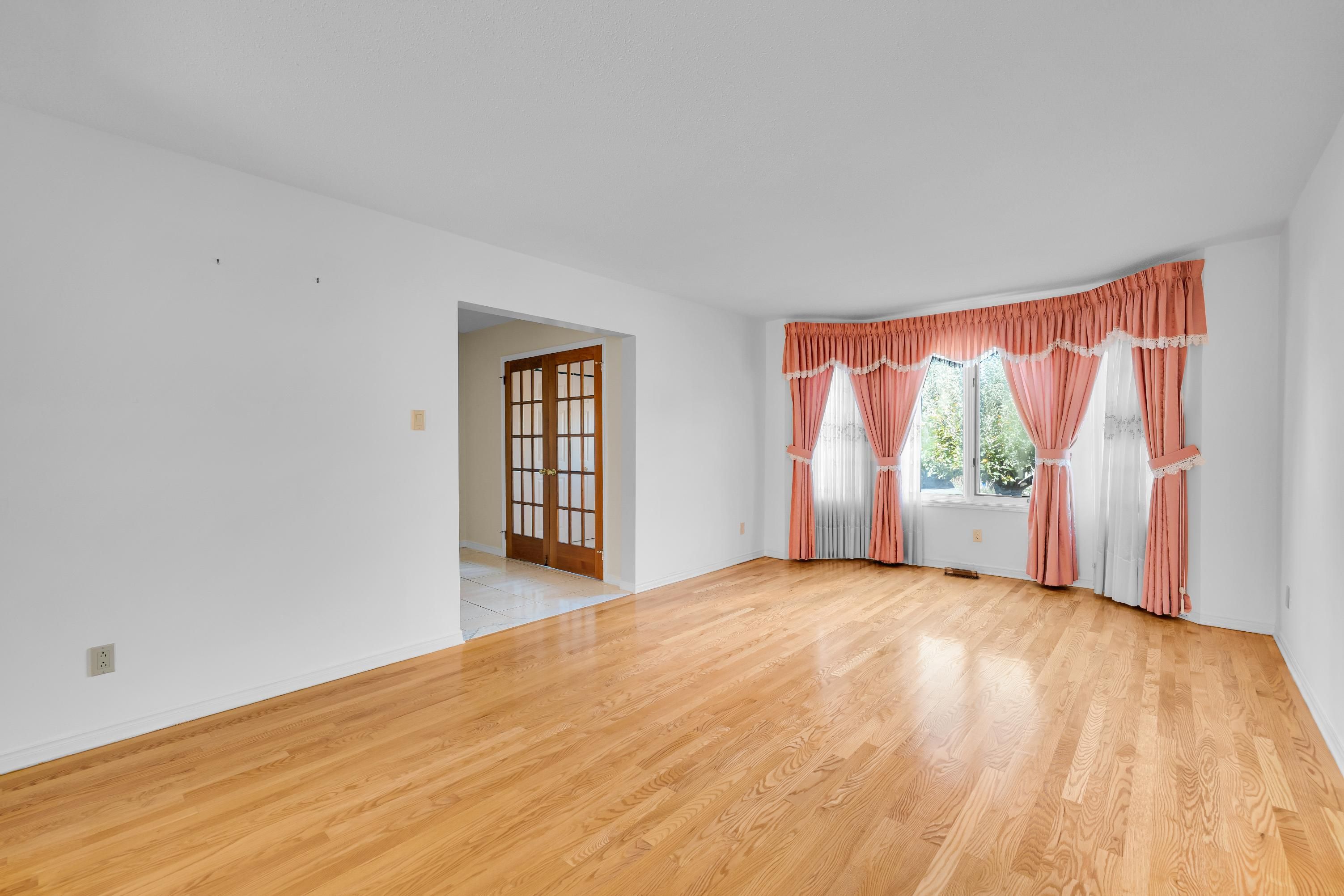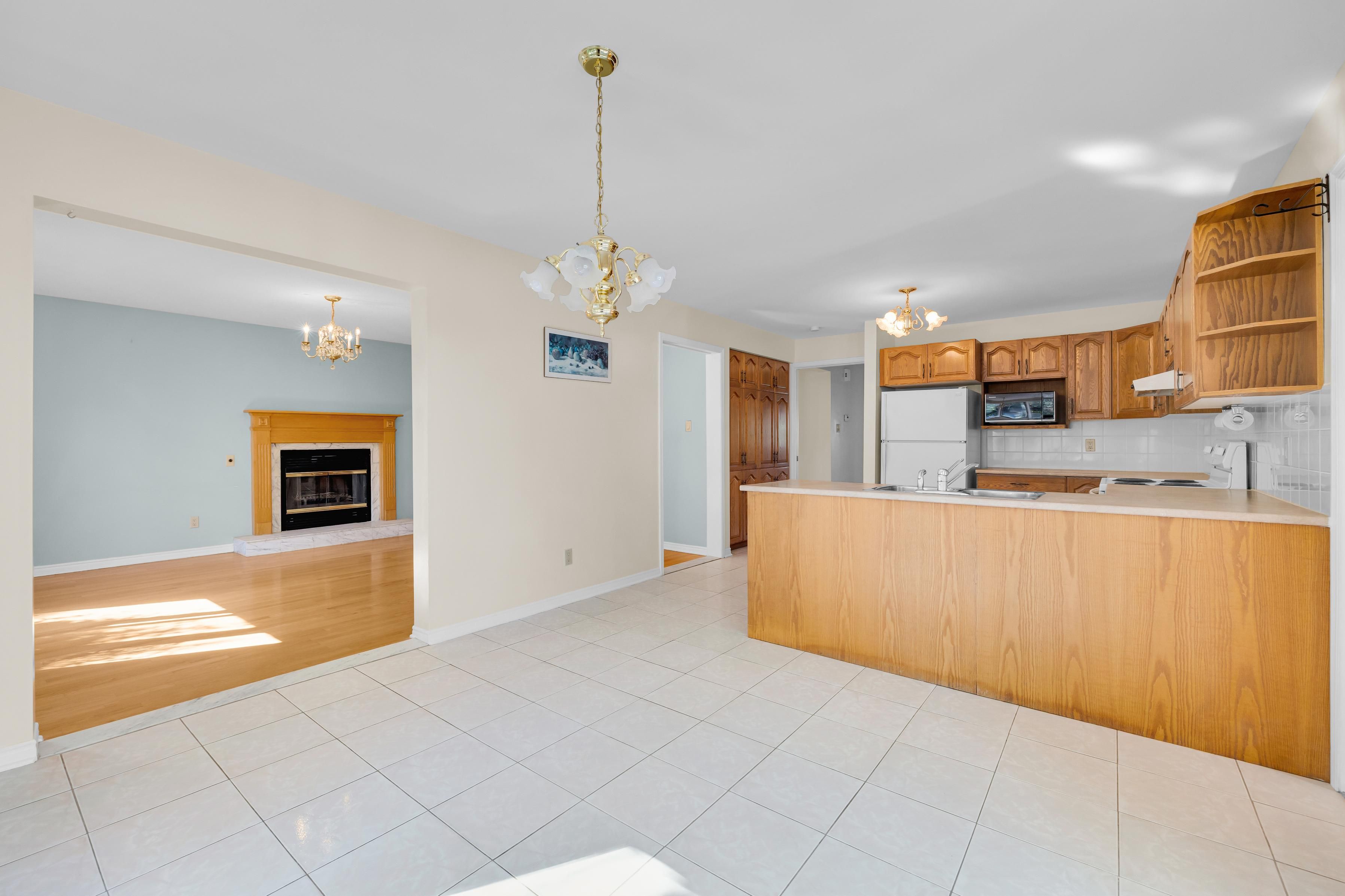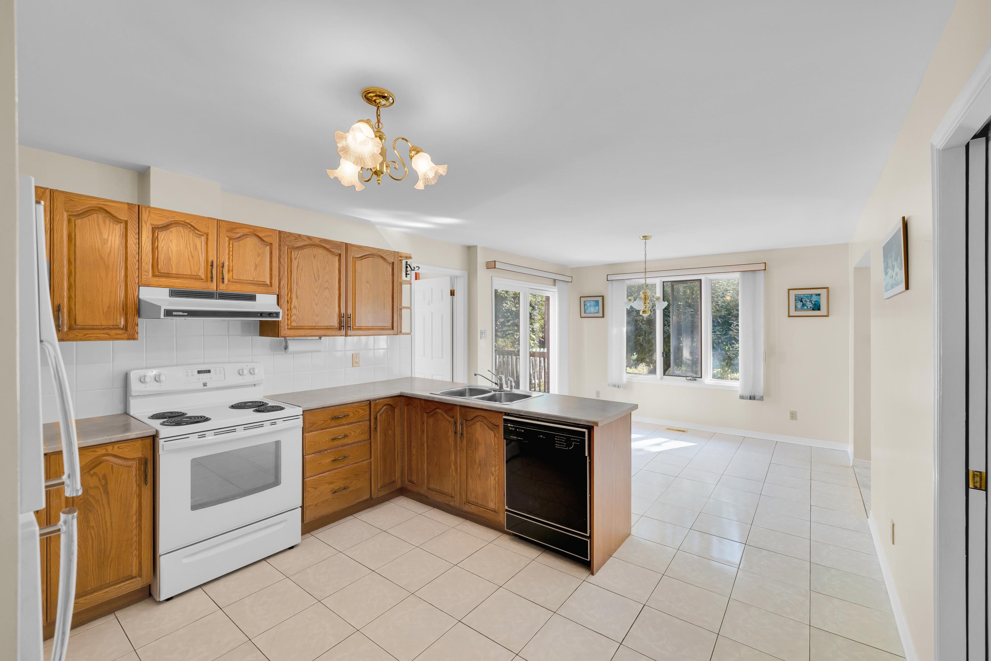 • Open-concept living and dining rooms filled with natural light from large windows.