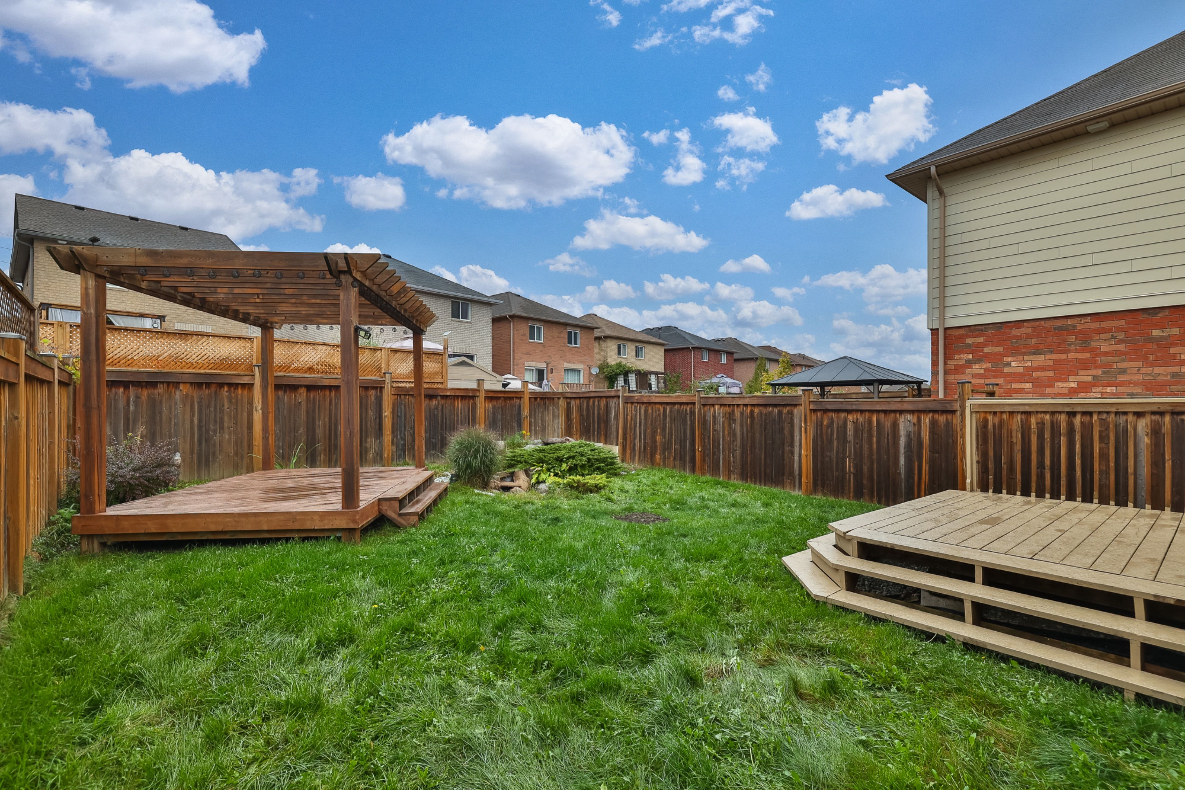 This beautifully updated detached home offers a spacious open-concept layout with 3 bedrooms and 3 bathrooms, providing ample room for both living and entertaining. The large kitchen features plenty of counter space and a walkout to a private backyard, which includes a new deck, a raised pergola, and professionally landscaped gardens with a peaceful waterfall. The primary bedroom is generously sized, complete with double walk-in closets for abundant storage. The entire home has been recently painted in neutral tones, enhancing its modern feel. Custom-made window coverings add a sophisticated touch to every room, while new modern laminate flooring runs throughout the living and family areas. Located in a convenient neighbourhood, this home is close to shopping, schools, the lake, and major routes like highway 400, offering an ideal blend of comfort and accessibility. A covered front porch with a flagstone walkway adds to the curb appeal and charm of the home. The basement is partially framed, offering future potential for additional living space. This home is perfect for anyone looking for a move-in ready, well-maintained property in a prime location!