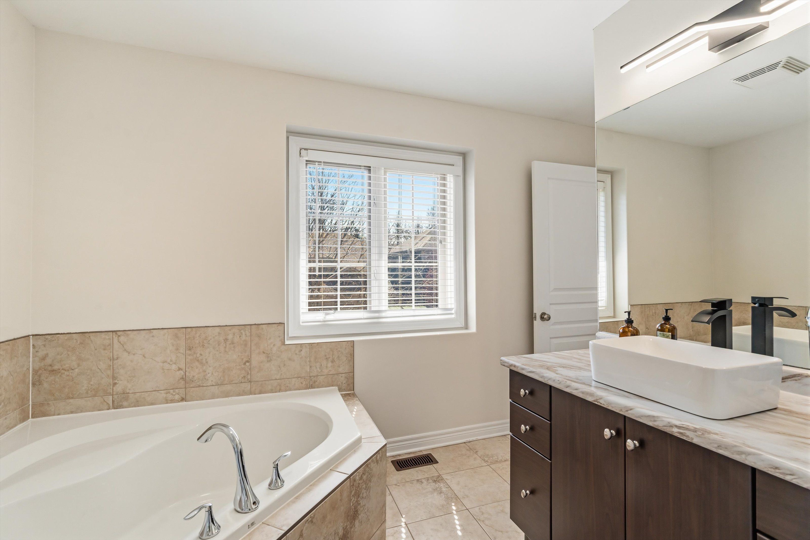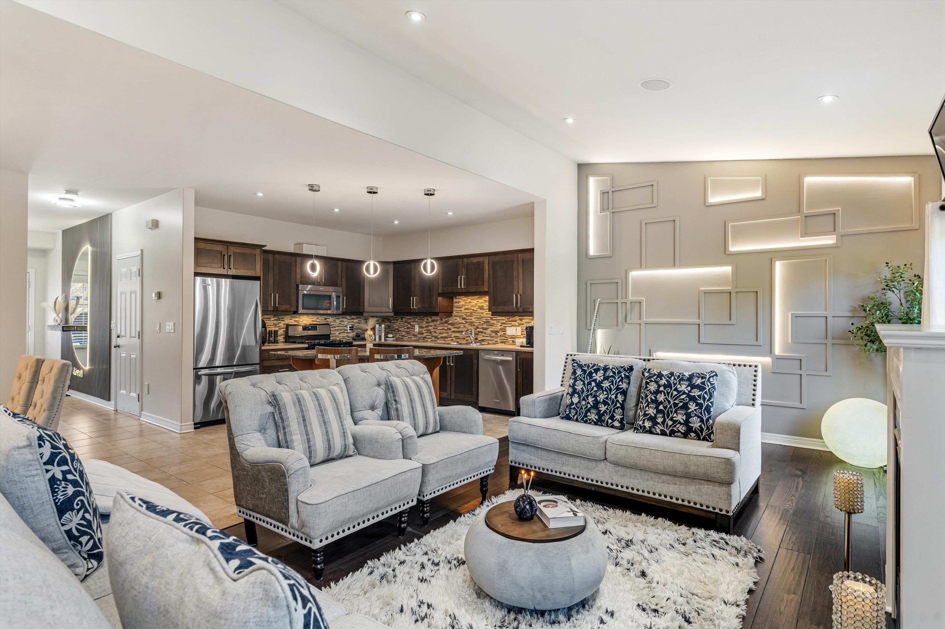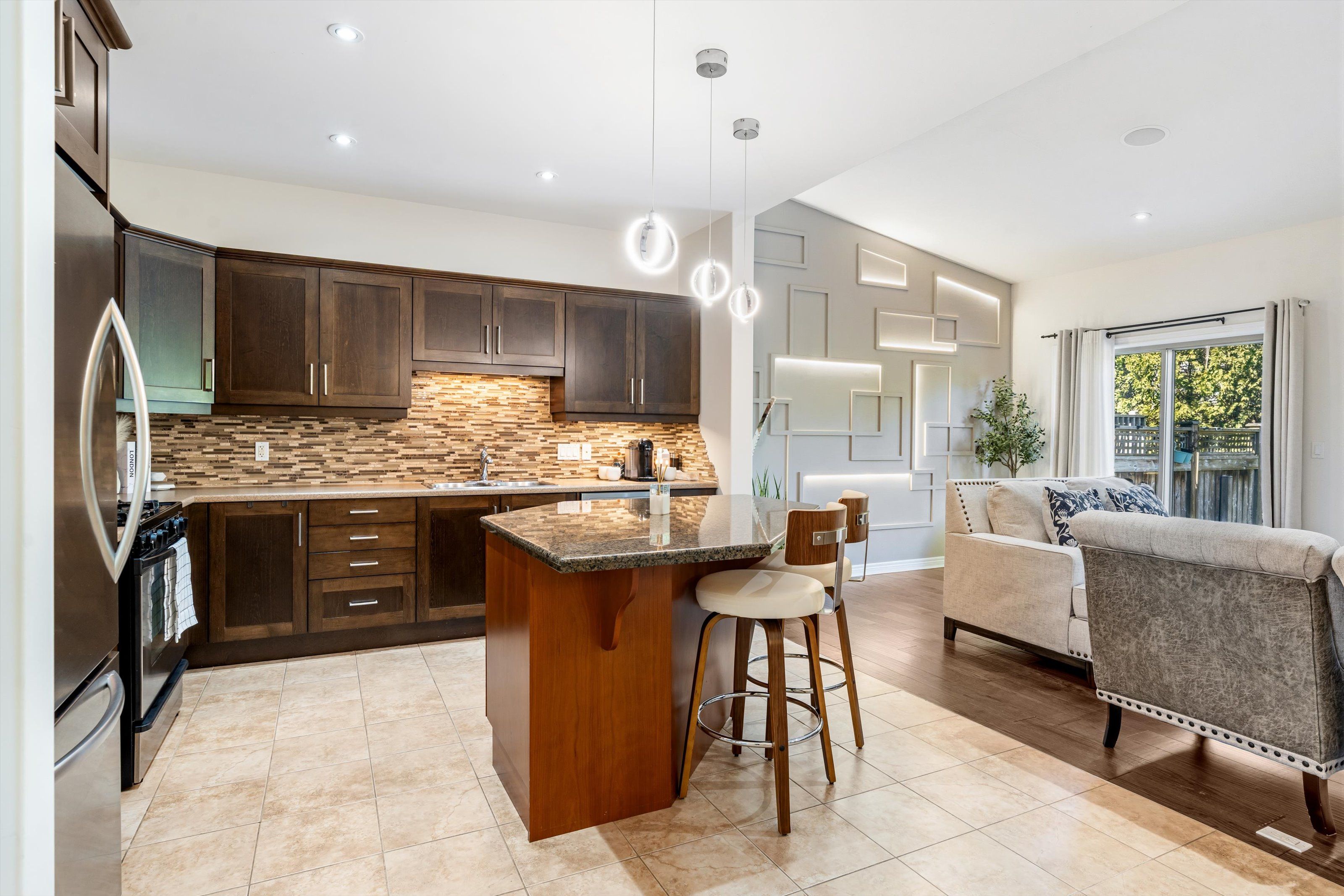 Welcome to victory garden in the heart of fonthill. This home is ideally located within walking distance to restaurants, shopping, the library, and the farmer's market, making it easy to enjoy everything the area has to offer. The neighbourhood is well cared for, and it shows as soon as you arrive. Inside, the home has been thoughtfully laid out and well-maintained. You're greeted by a spacious foyer with a convenient main floor powder room. The kitchen offers plenty of storage, a stylish backsplash, under-cabinet lighting, and a large island, all open to the dining area and great room. The great room spans the full width of the home and features pot lights, built-in speakers, and a gas fireplace, creating a comfortable space for everyday living. Upstairs, you'll find three bedrooms, two full bathrooms, and the added convenience of second-floor laundry. The primary bedroom includes a walk-in closet and a private ensuite with a soaker tub. Recent updates include: luxury vinyl plank flooring on second level (2024), illuminated accent walls (2024), and a new garage door (2019). Out back, enjoy a private deck and a tree-lined yard. As part of condo living, lawn maintenance is handled for you, making it easy to enjoy the space without the extra work. This is more than a home, it's a lifestyle you won't want to miss.