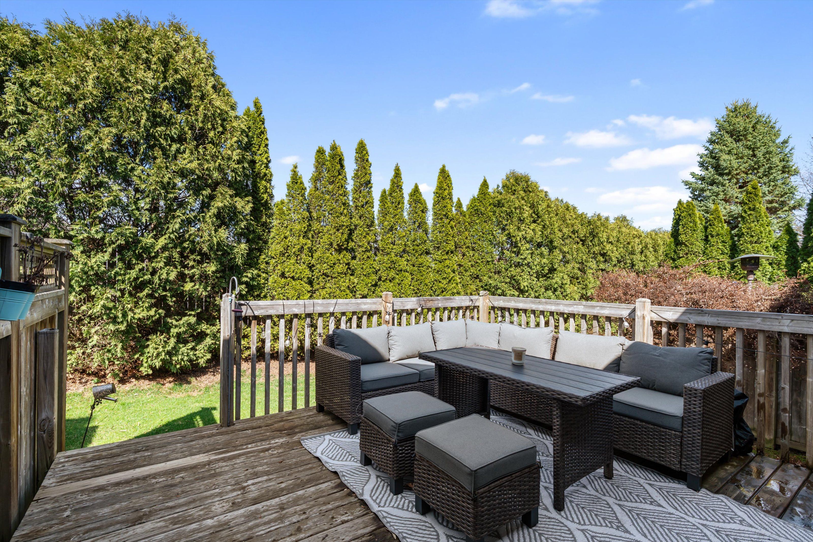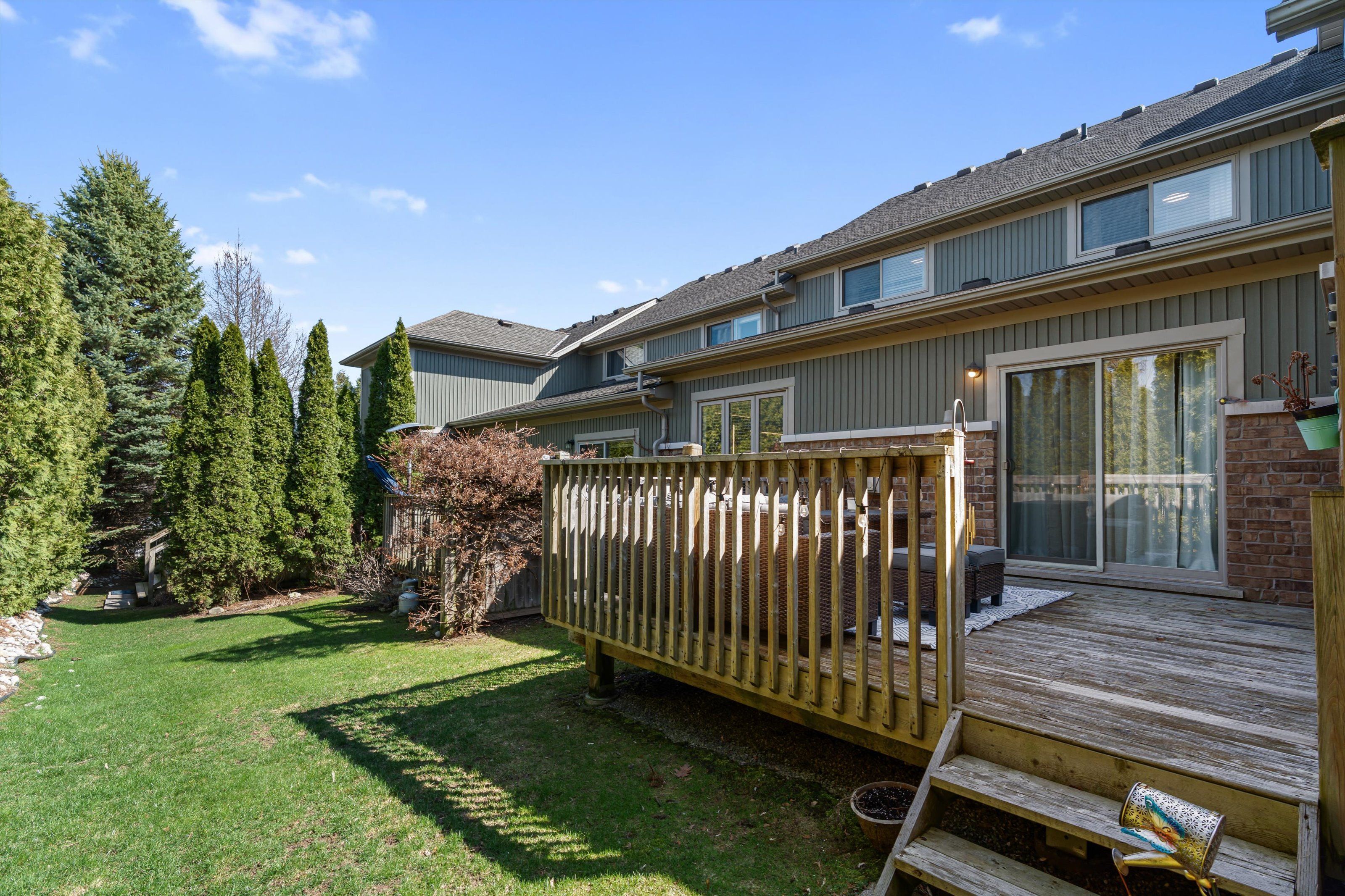 • Private deck and tree-lined yard, with lawn care handled for easy living.
